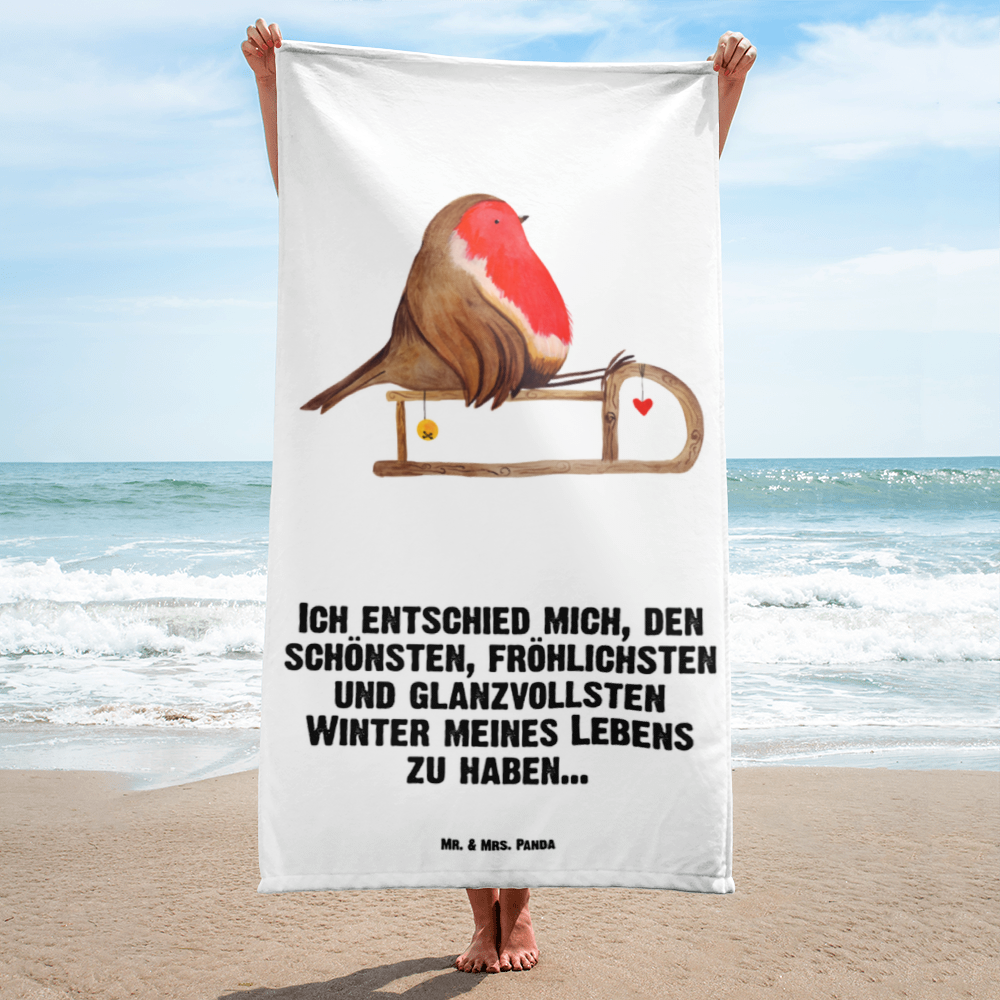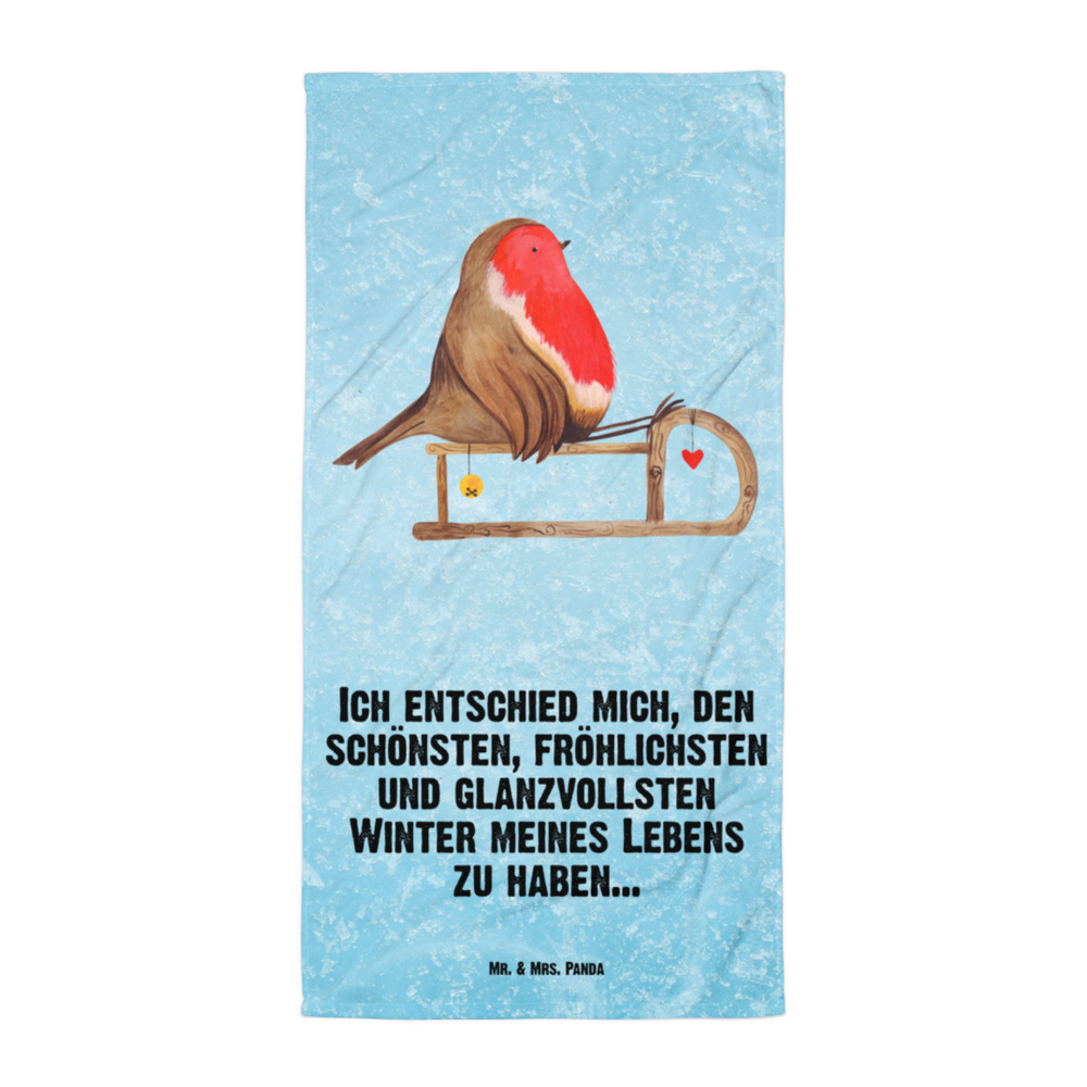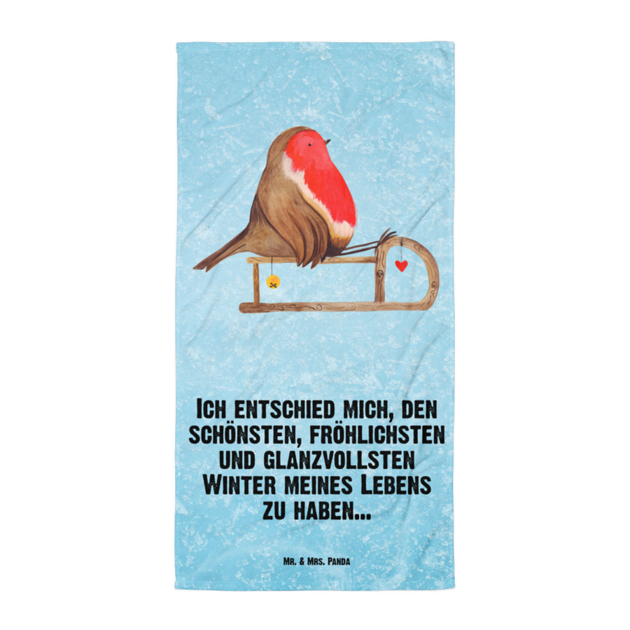 XL Badehandtuch Rotkehlchen Schlitten - mit Spruch - Eisblau