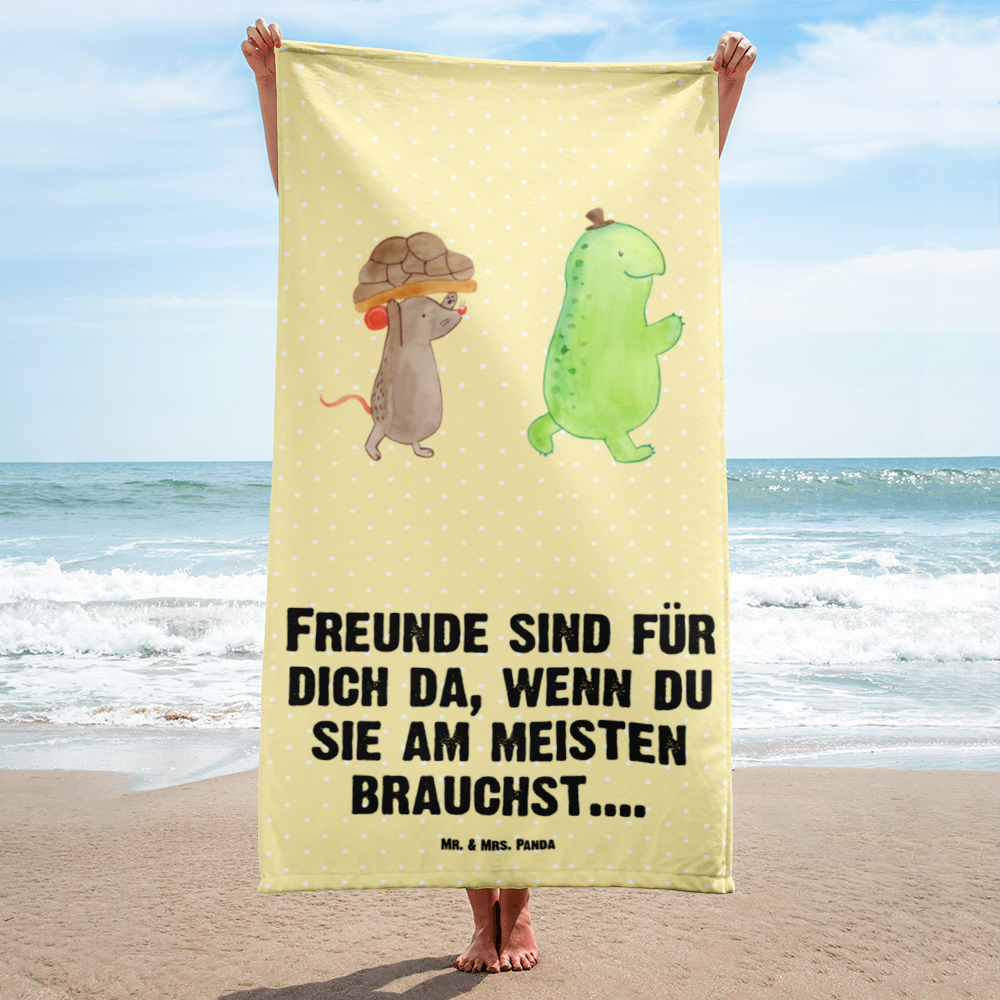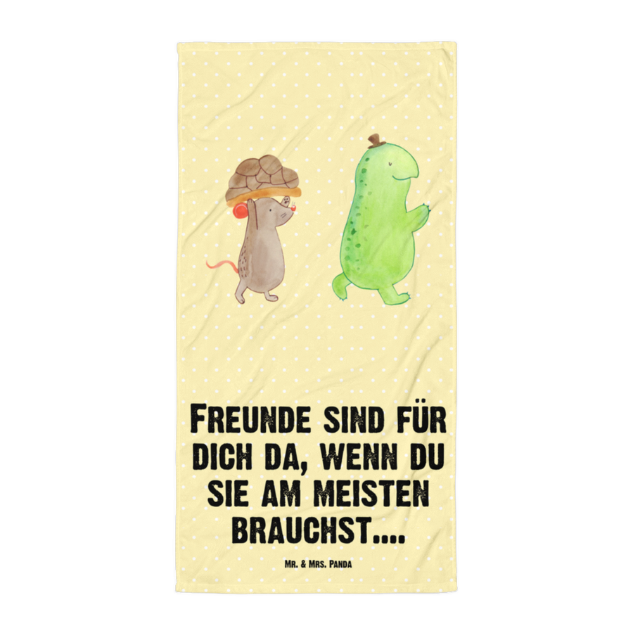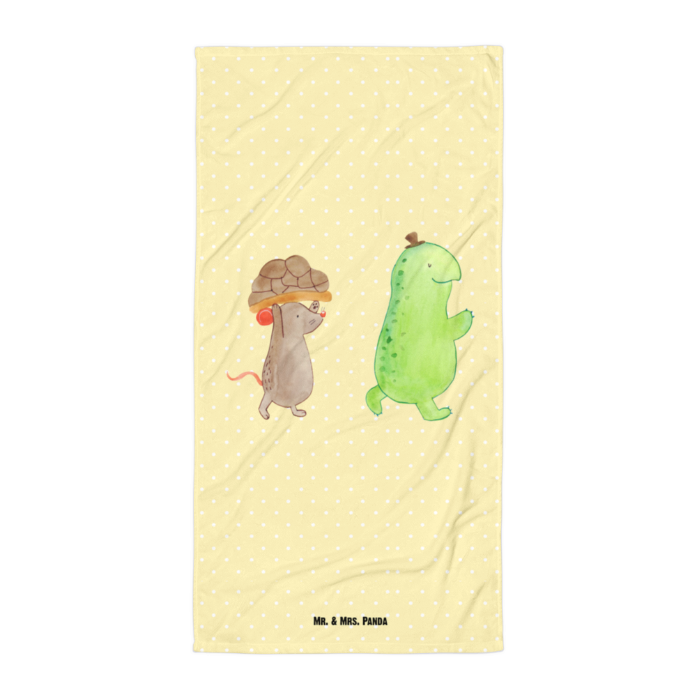 XL Badehandtuch Schildkröte & Maus - mit Spruch - Gelb Pastell