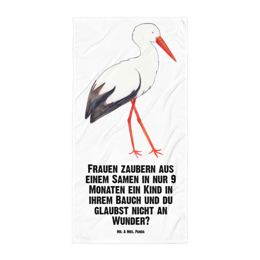 XL Badehandtuch Storch - mit Spruch - Weiß