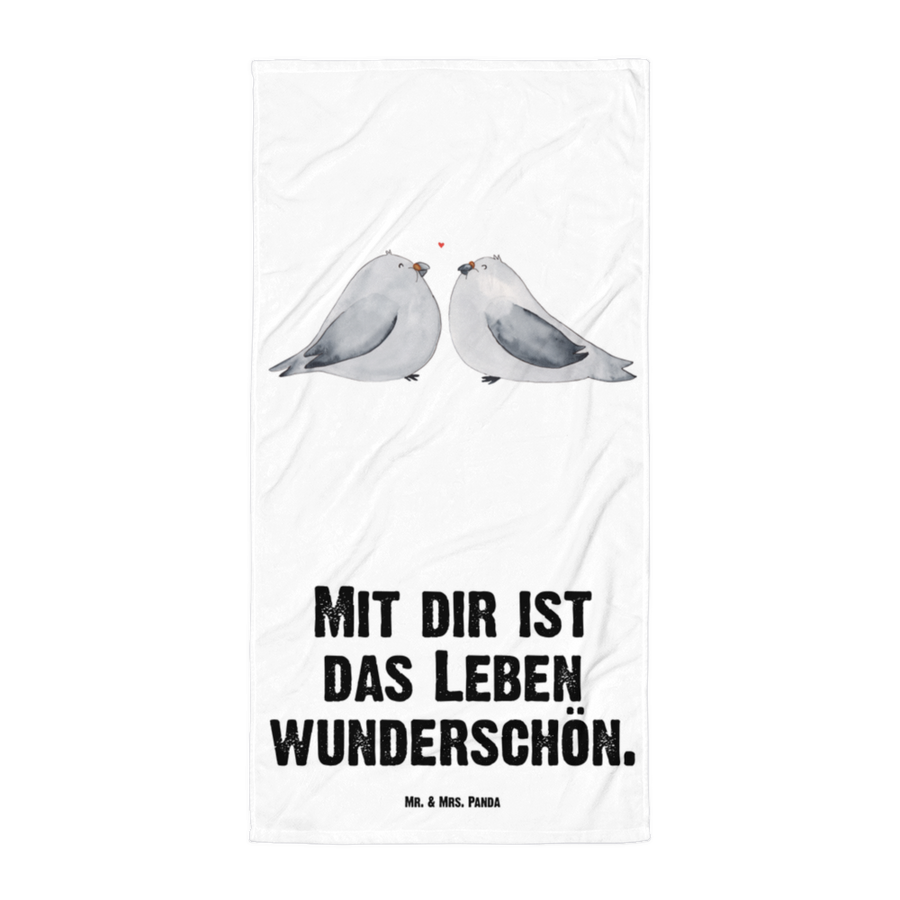 XL Badehandtuch Turteltauben Liebe - mit Spruch - Weiß