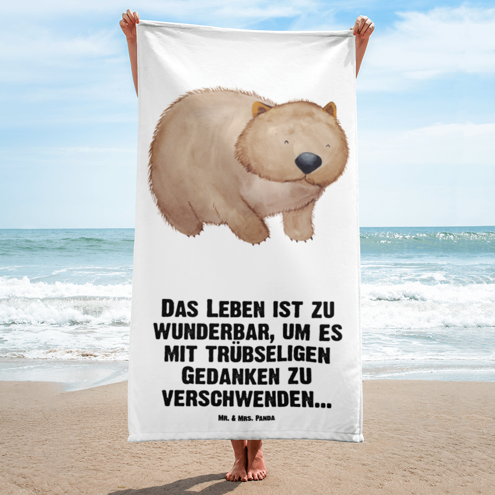 XL Badehandtuch Wombat Handtuch, Badetuch, Duschtuch, Strandtuch, Saunatuch, Tiermotive, Gute Laune, lustige Sprüche, Tiere, Wombat, Das Leben ist schön, Motivation, Spruch, Australien