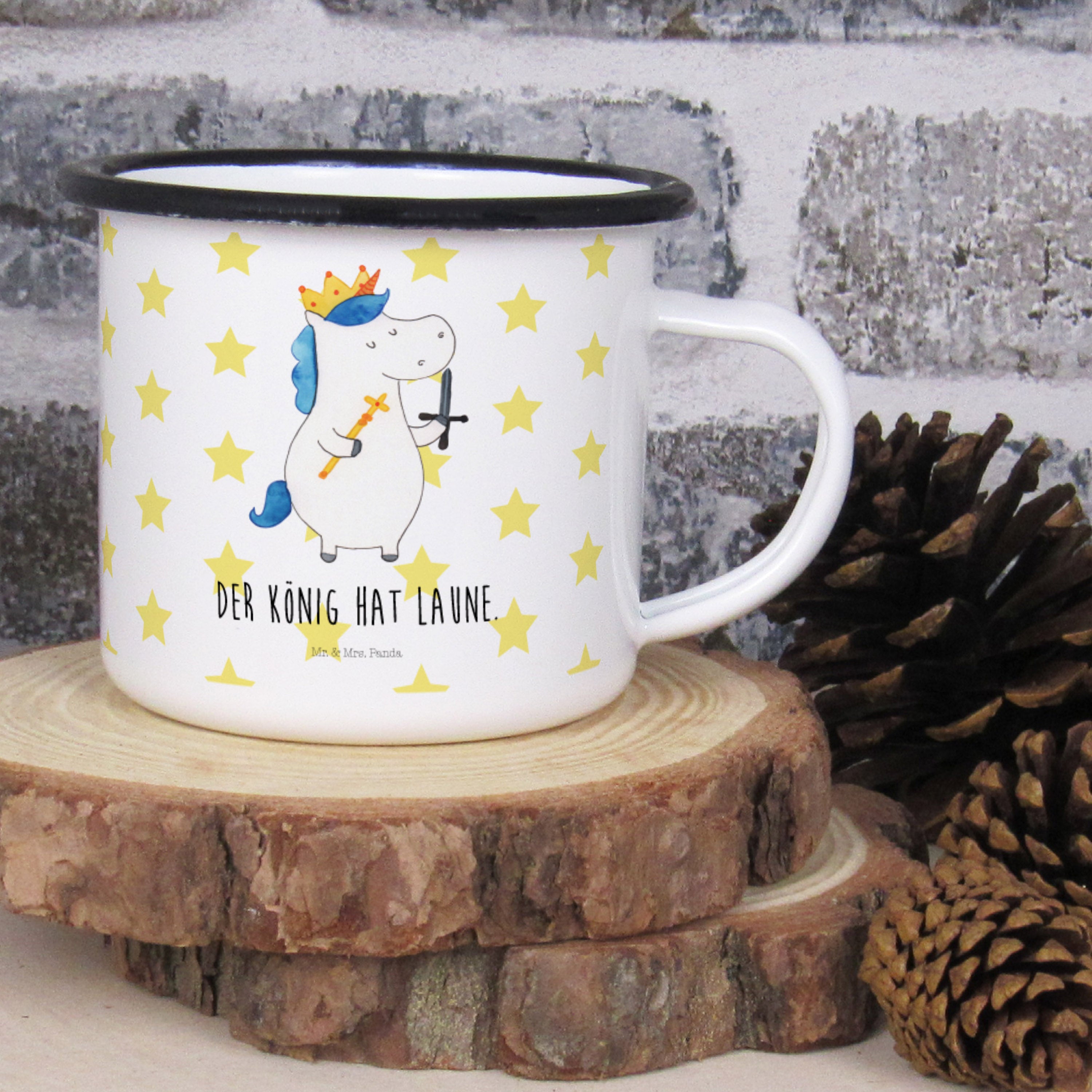 XL Emaille Tasse Einhorn König mit Schwert - mit Spruch