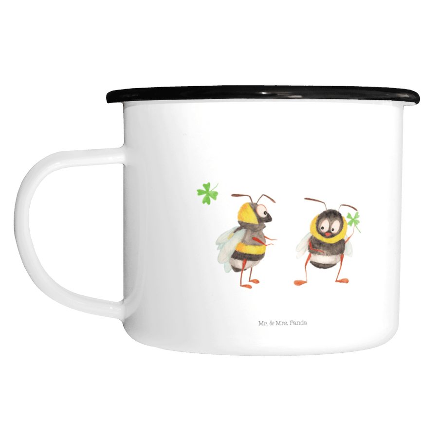 XL Emaille Tasse Hummeln mit Kleeblatt - ohne Spruch - Weiß