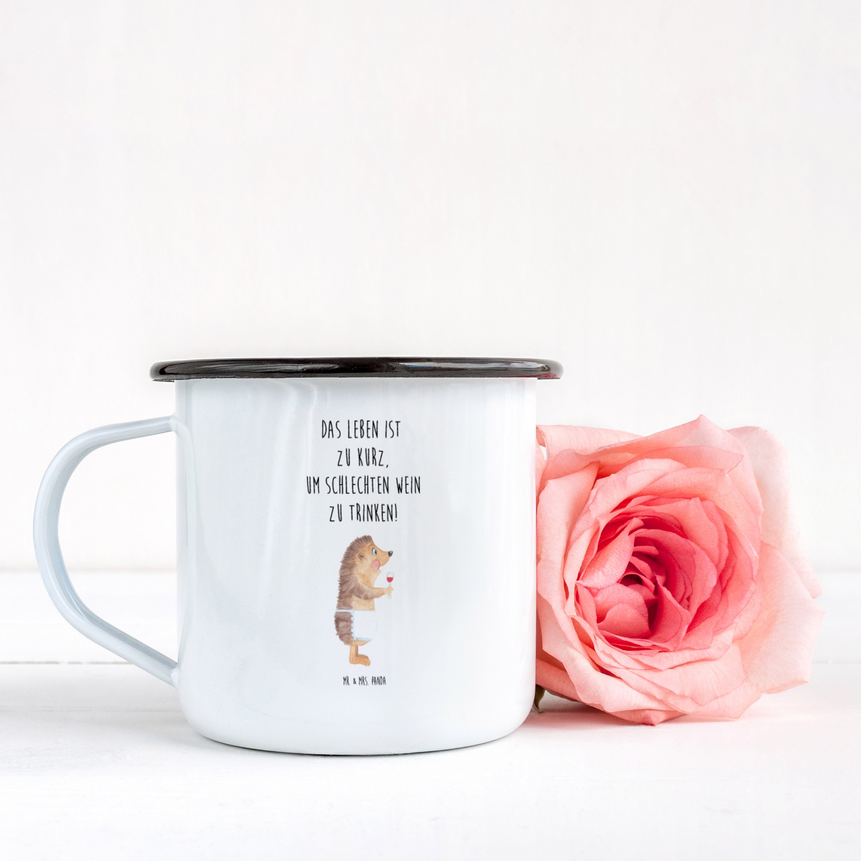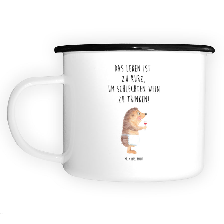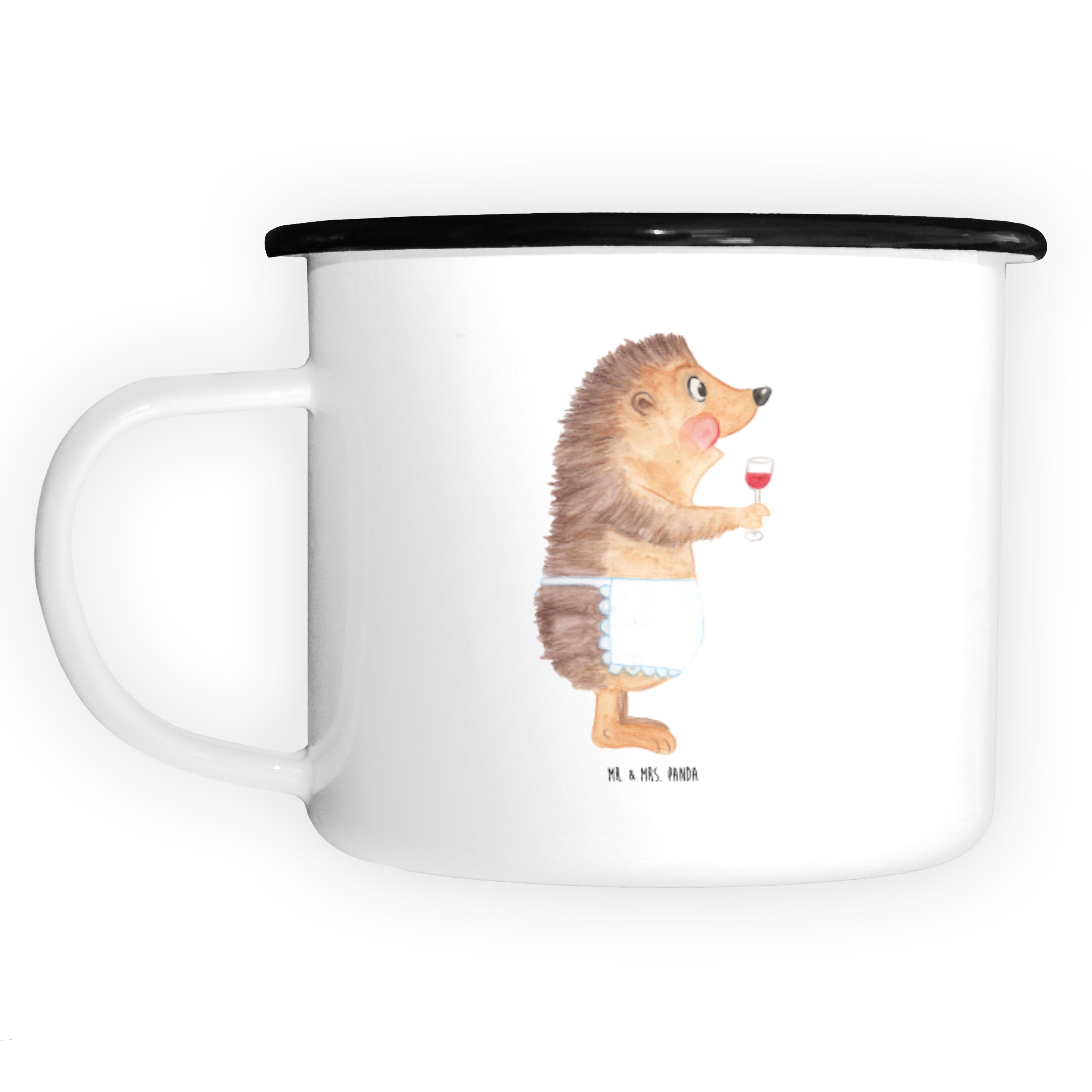 XL Emaille Tasse Igel mit Wein - mit Spruch - Weiß