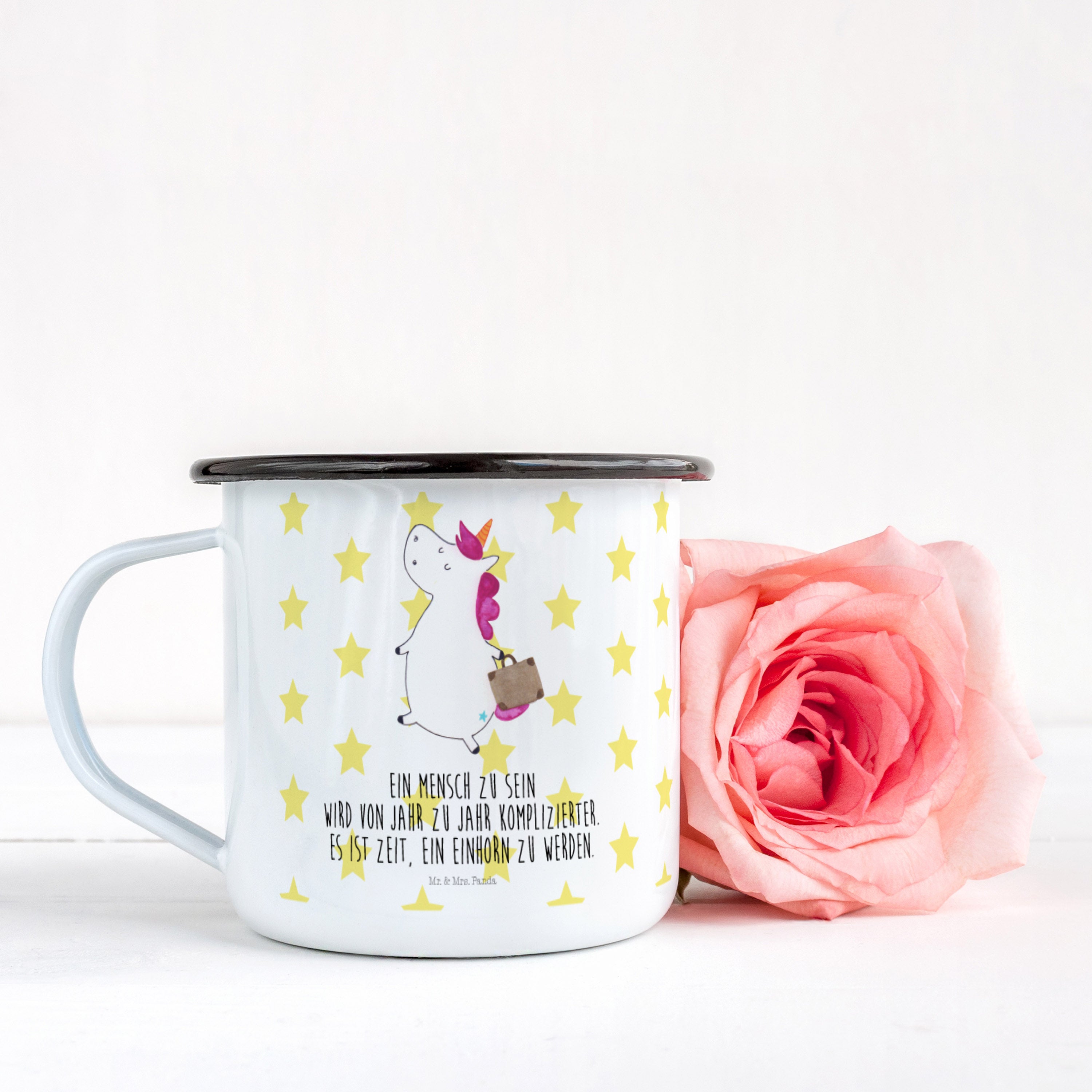 XL Emaille Tasse Einhorn Koffer - mit Spruch