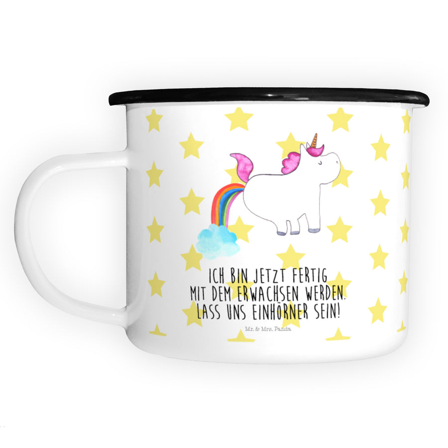 XL Emaille Tasse Einhorn Pupsend - mit Spruch