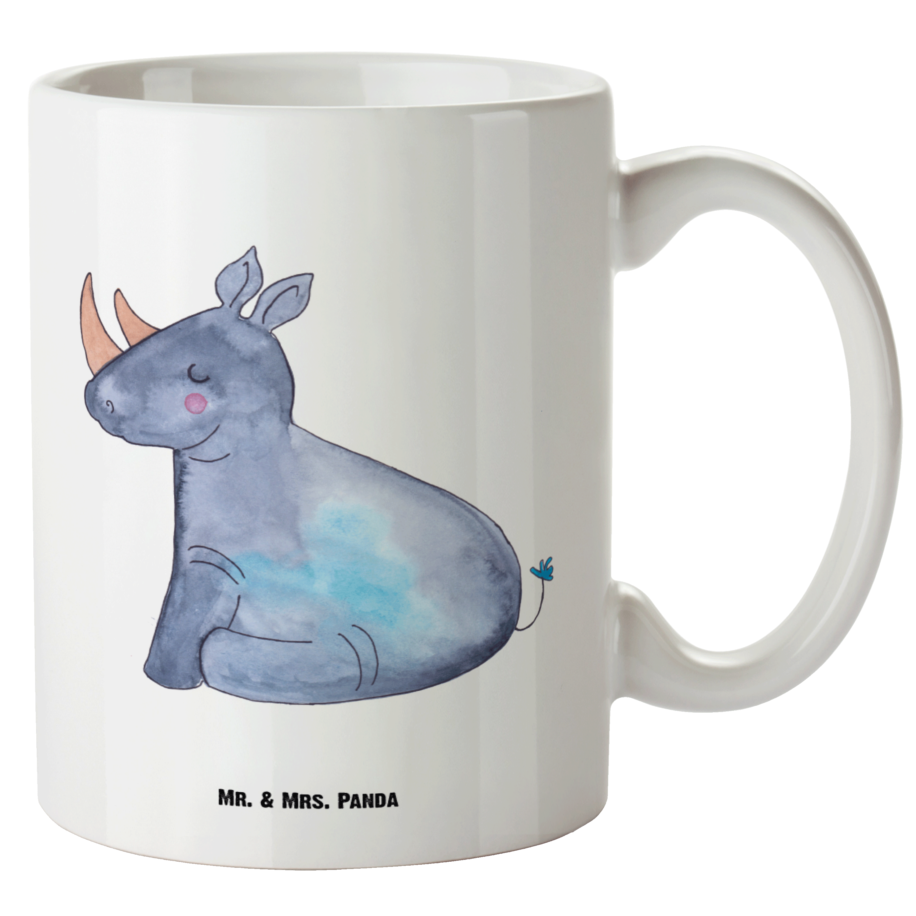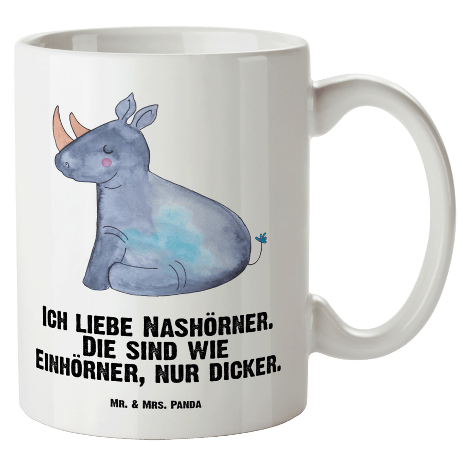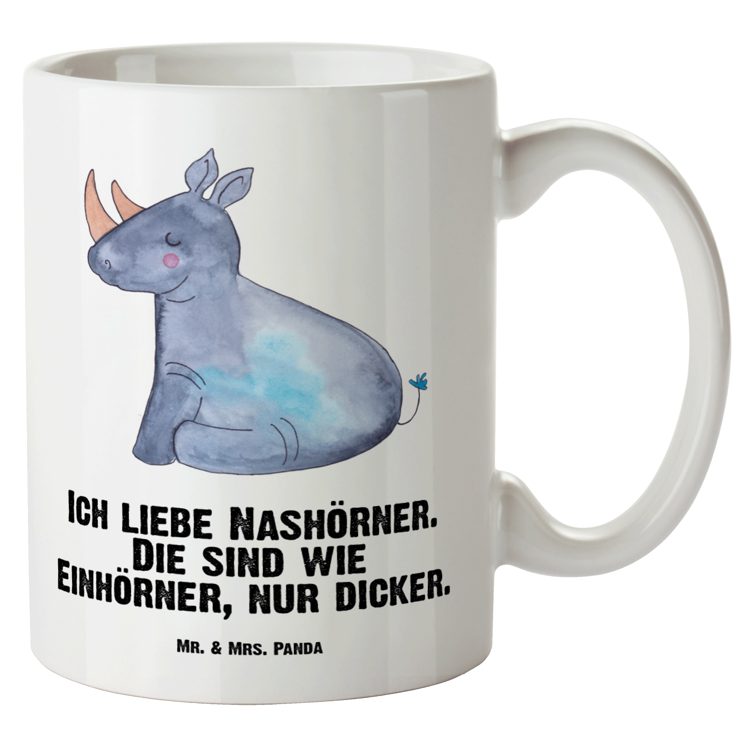 Das glückliche Nashorn zeigt: Einhörner sind gar nicht so selten. Sie sind eben nur ein bisschen dicker. Das perfekte Motiv, um ein Schmunzeln zu erzwingen.