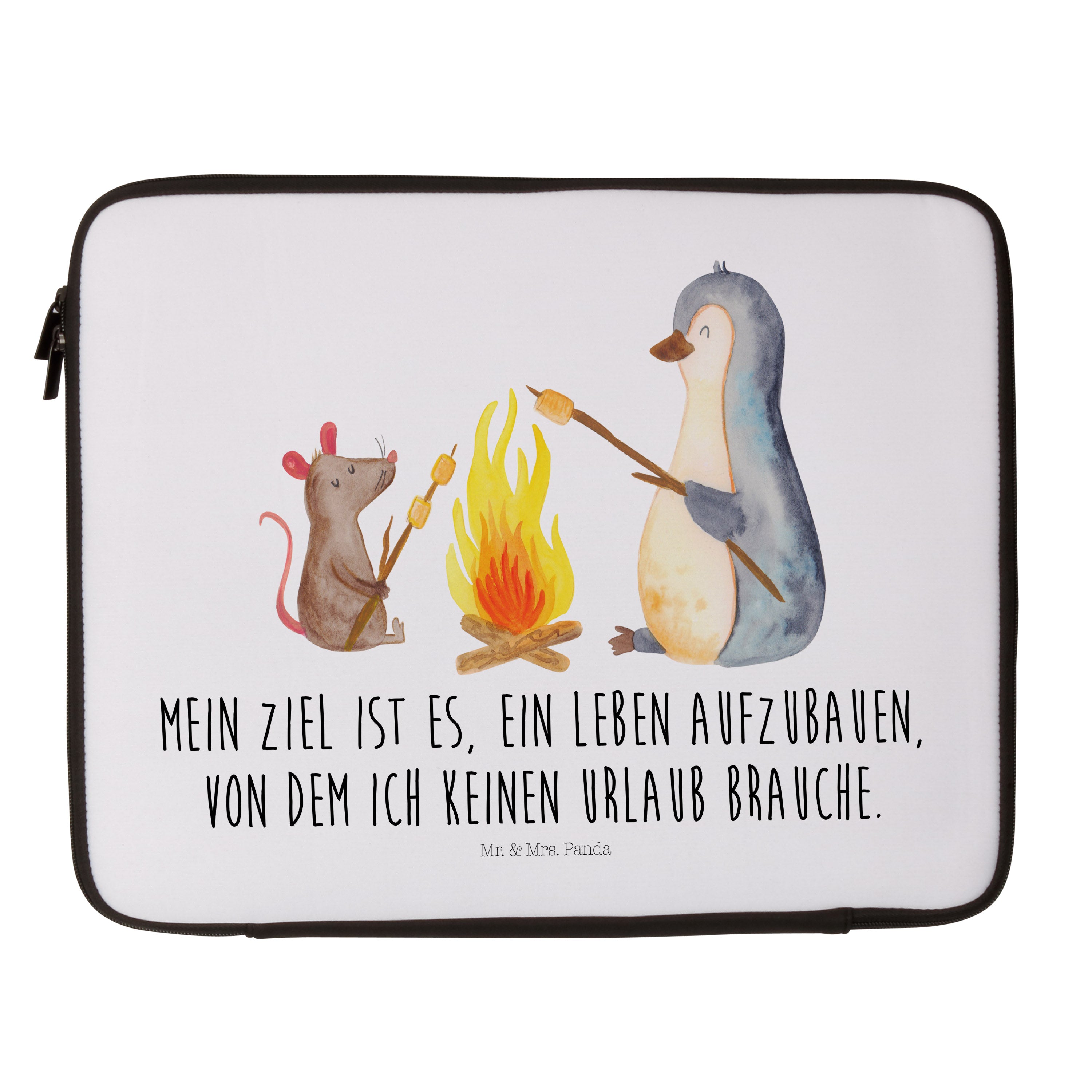 20 x 28 Notebook Tasche Pinguin Lagerfeuer - mit Spruch - Eisblau