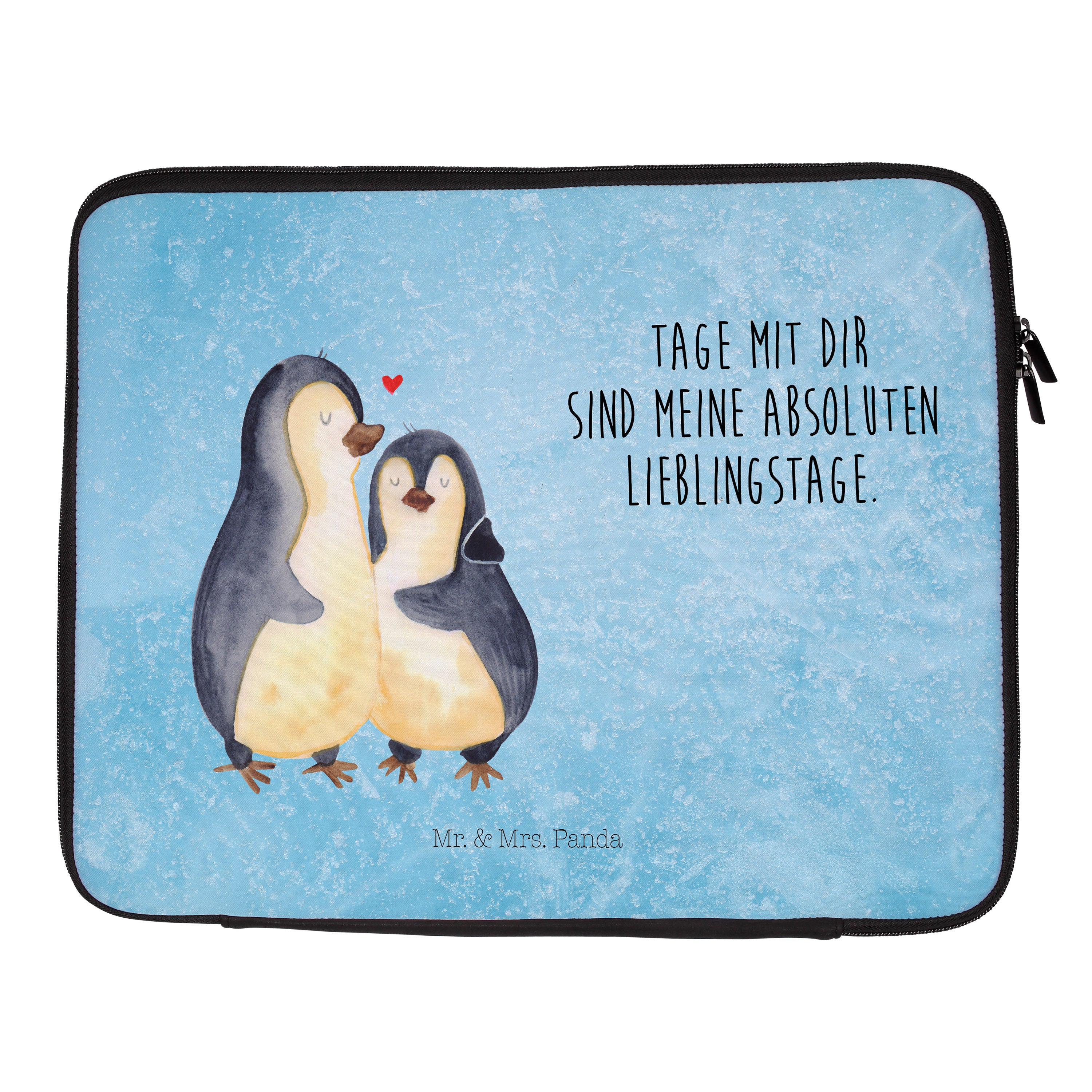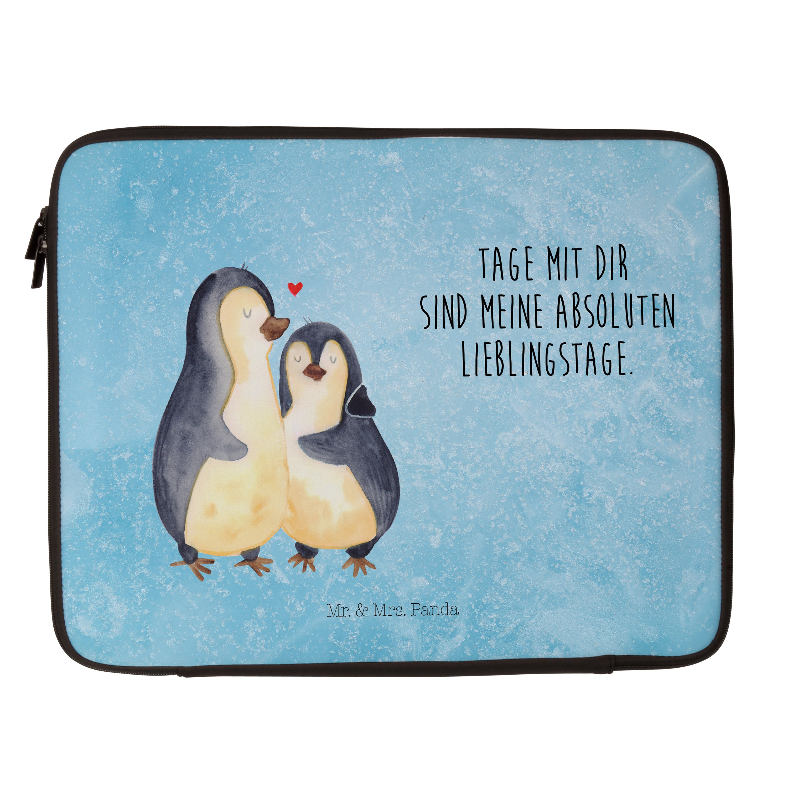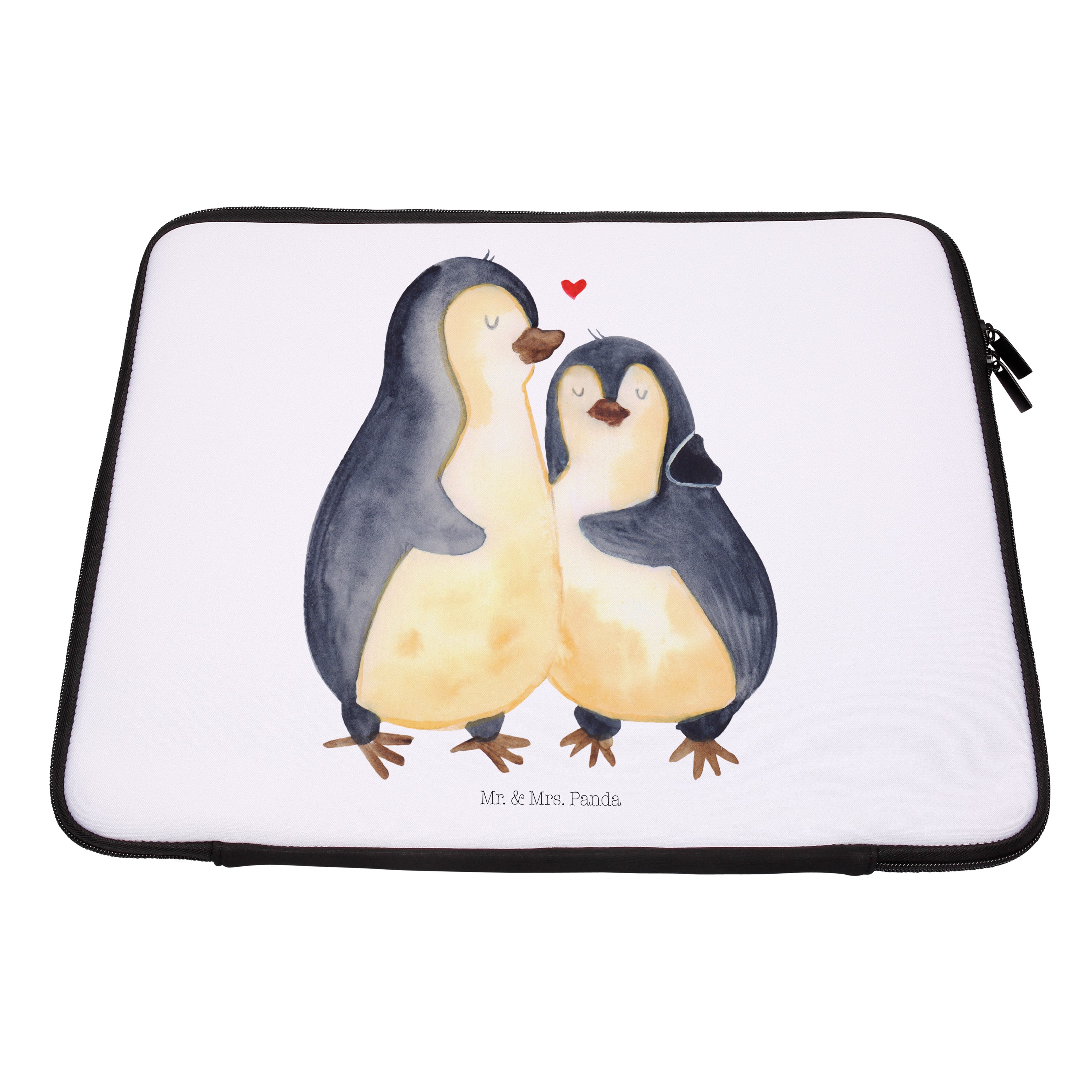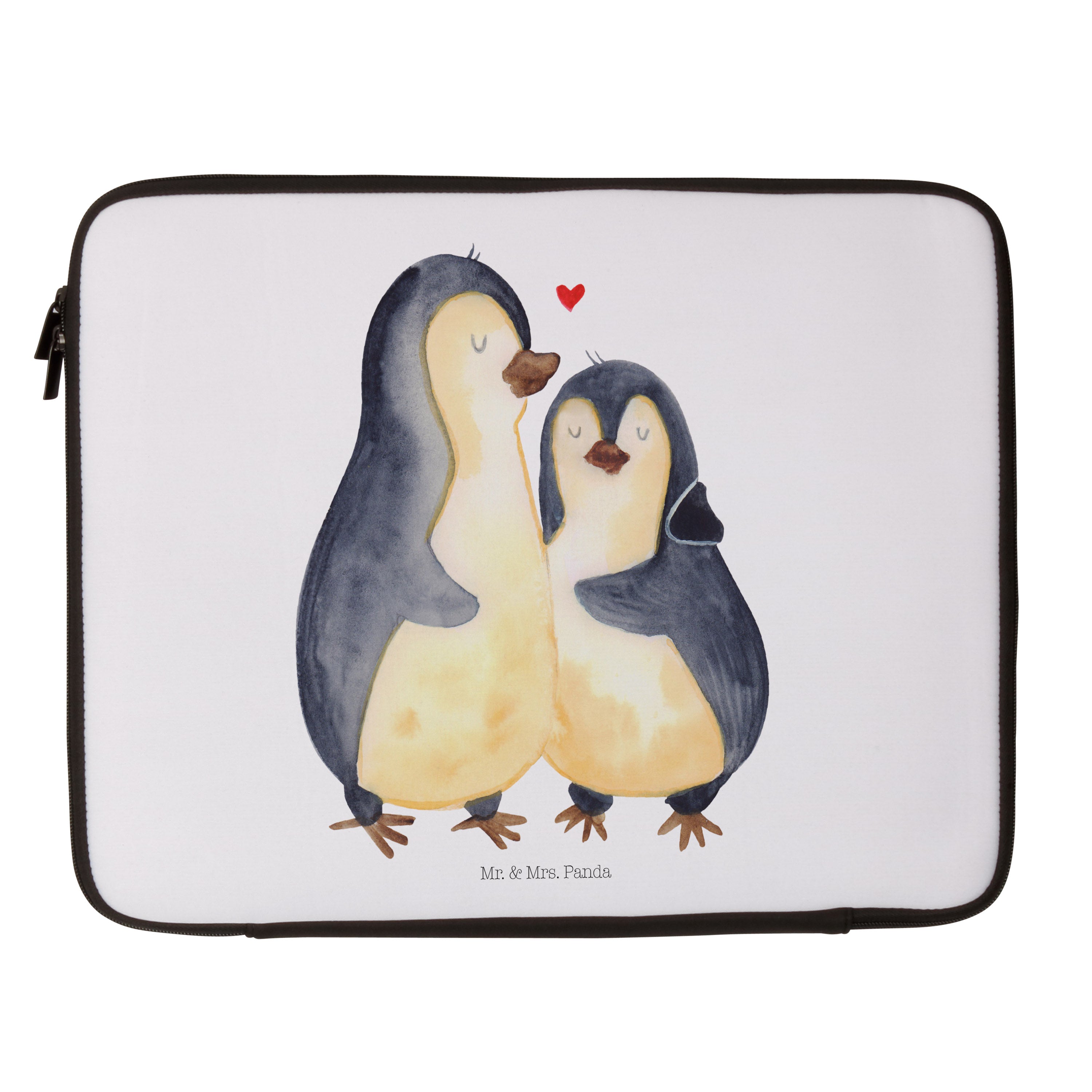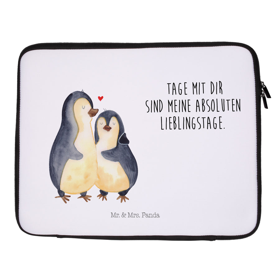 20 x 28 Notebook Tasche Pinguin umarmend - mit Spruch - Weiß