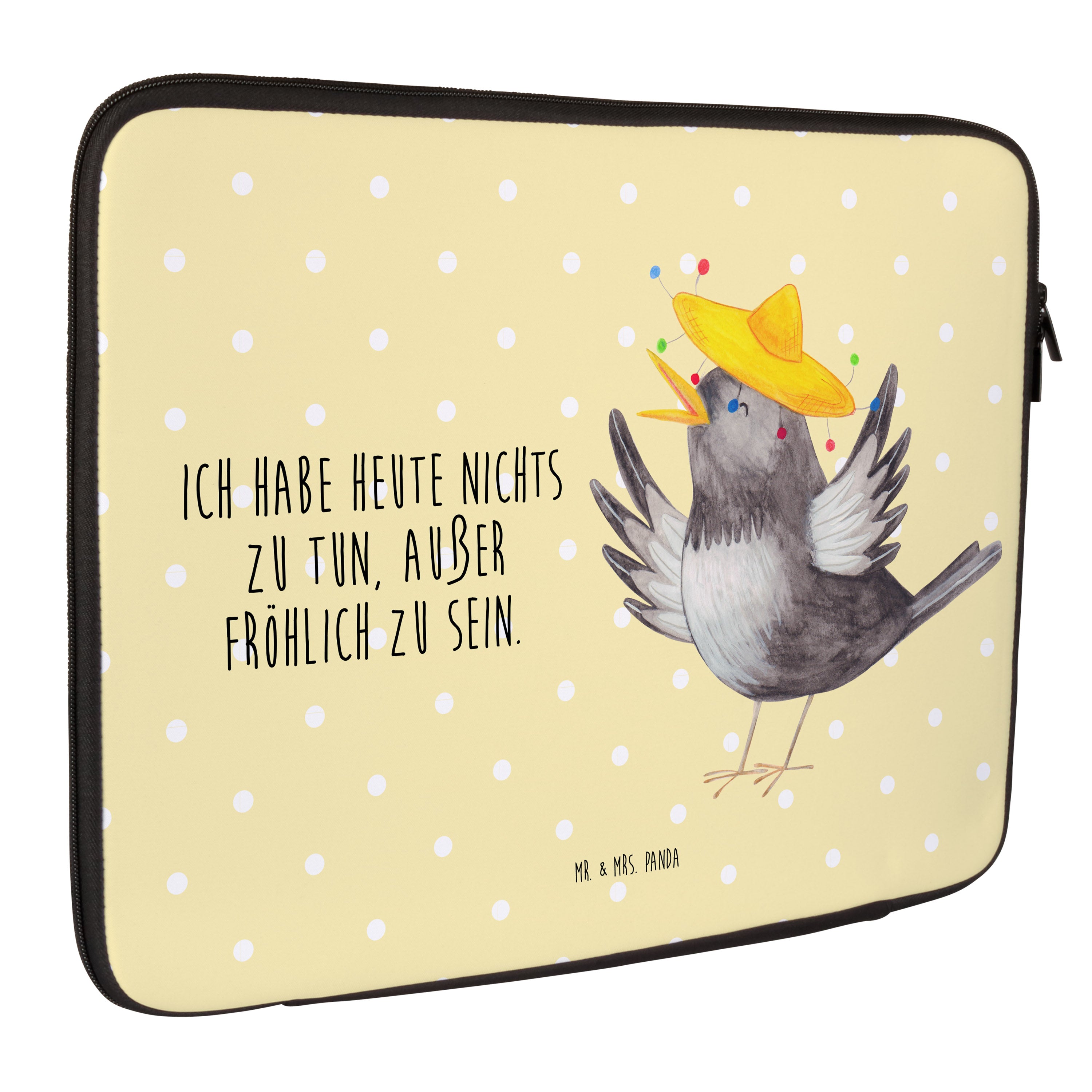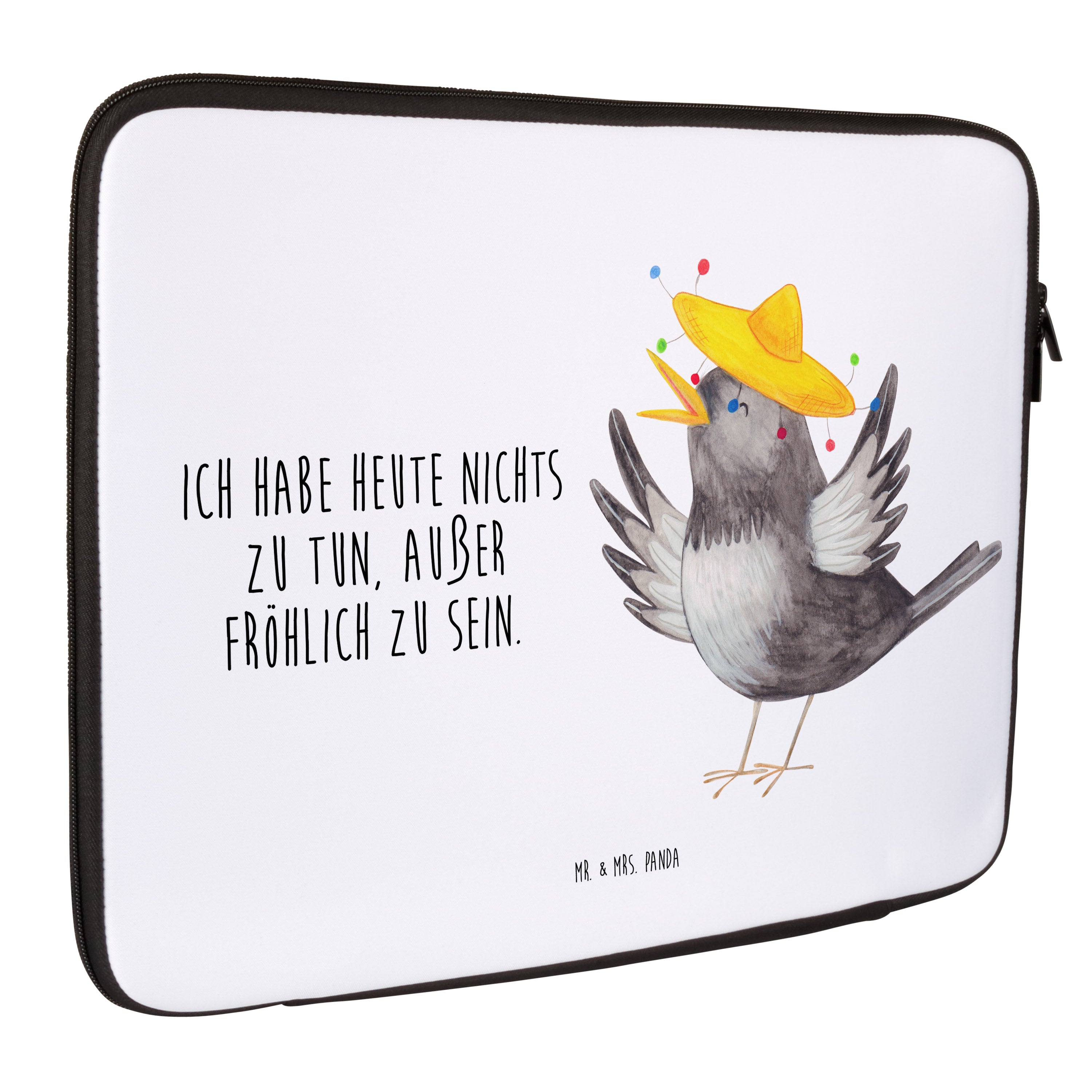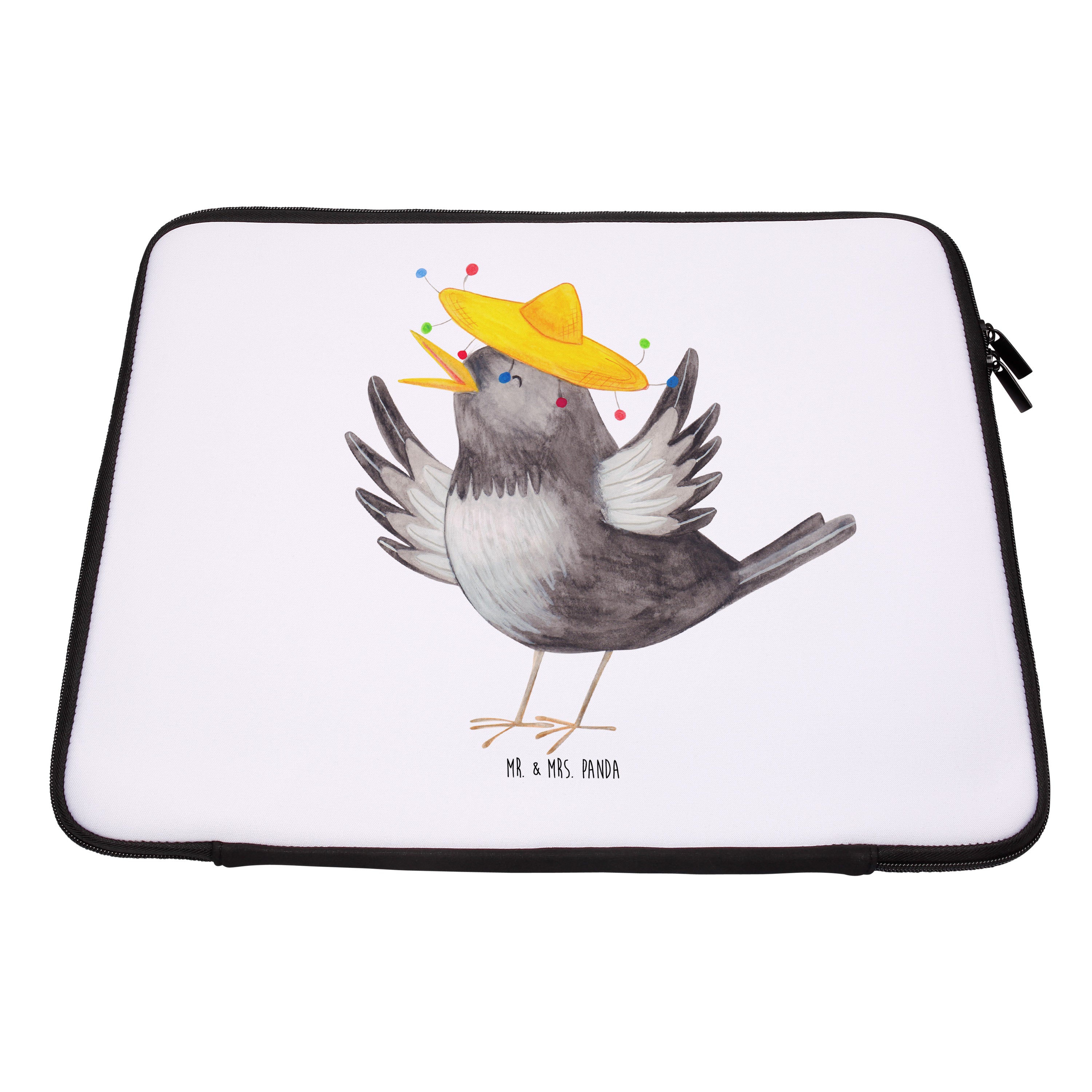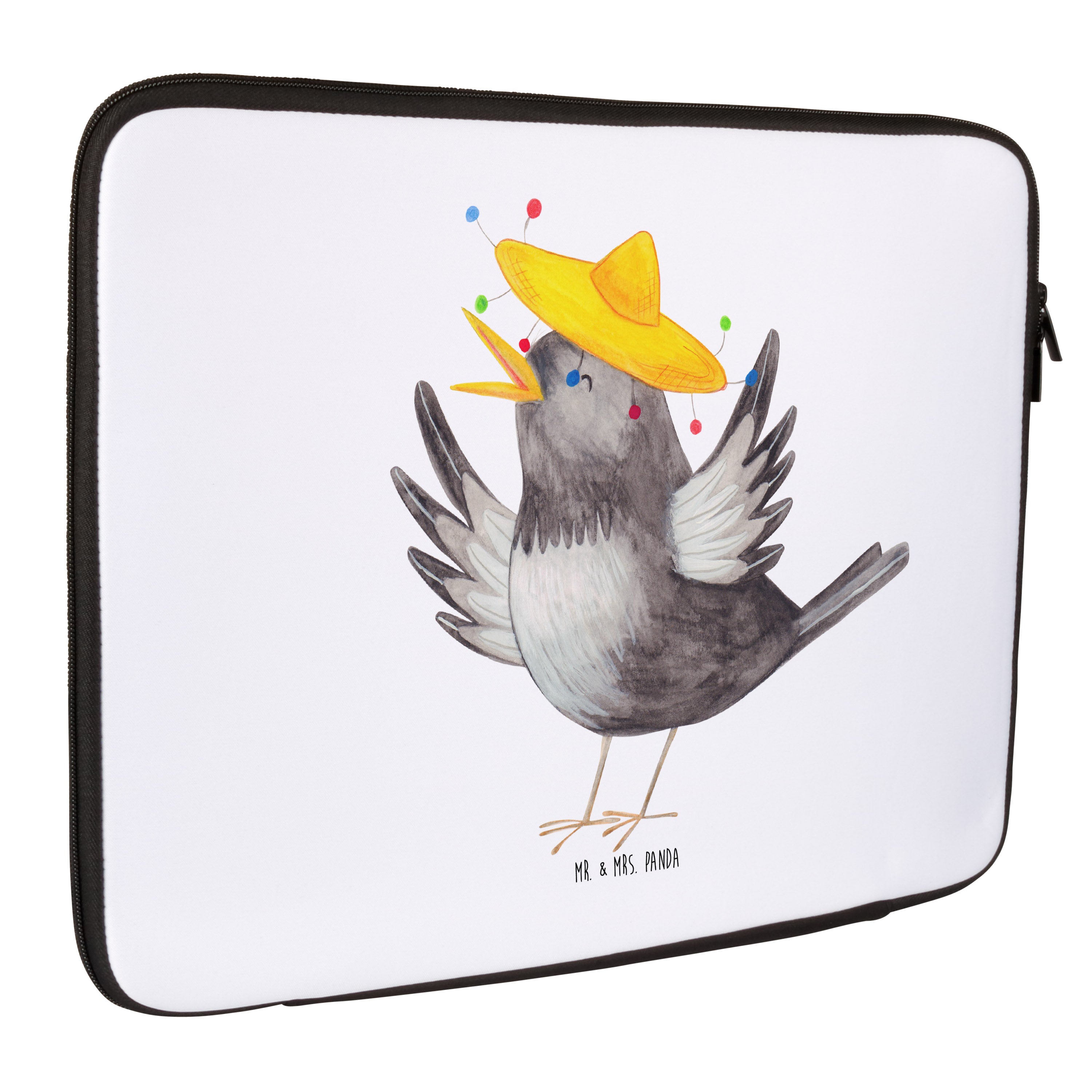 20 x 28 Notebook Tasche Rabe mit Sombrero - mit Spruch - Weiß