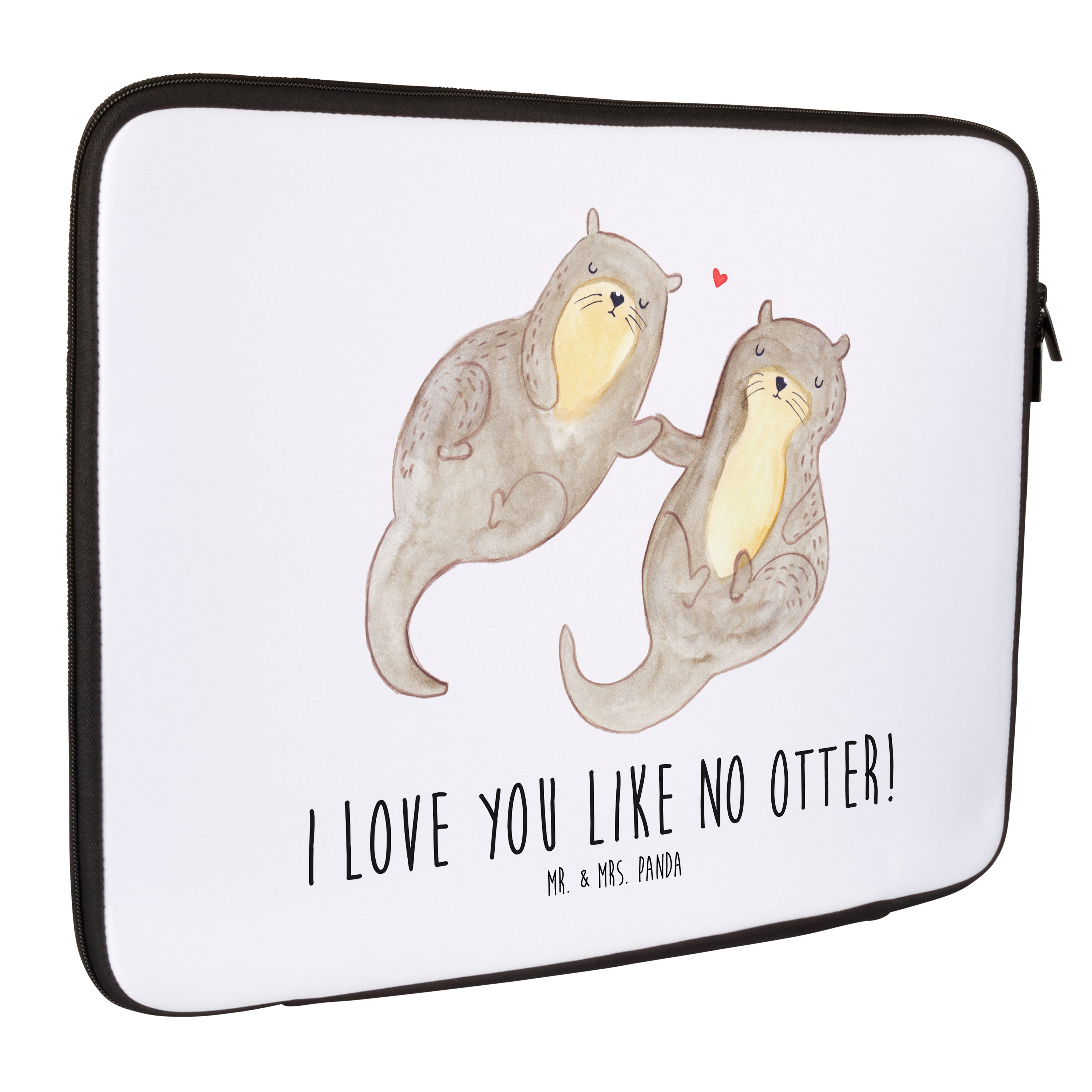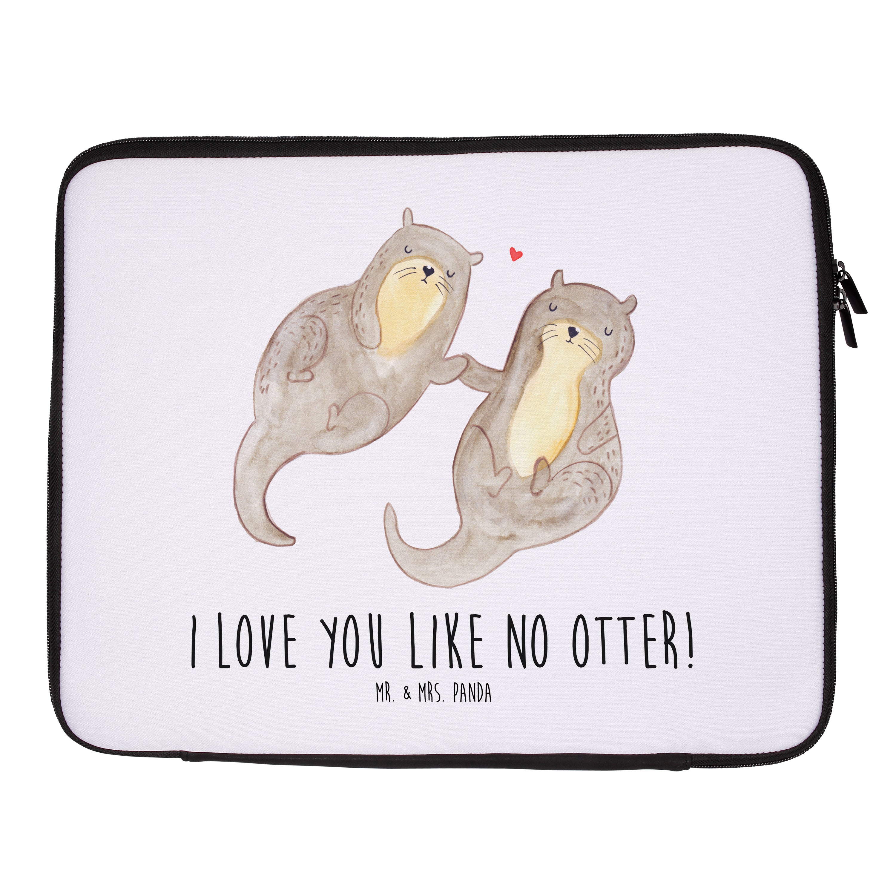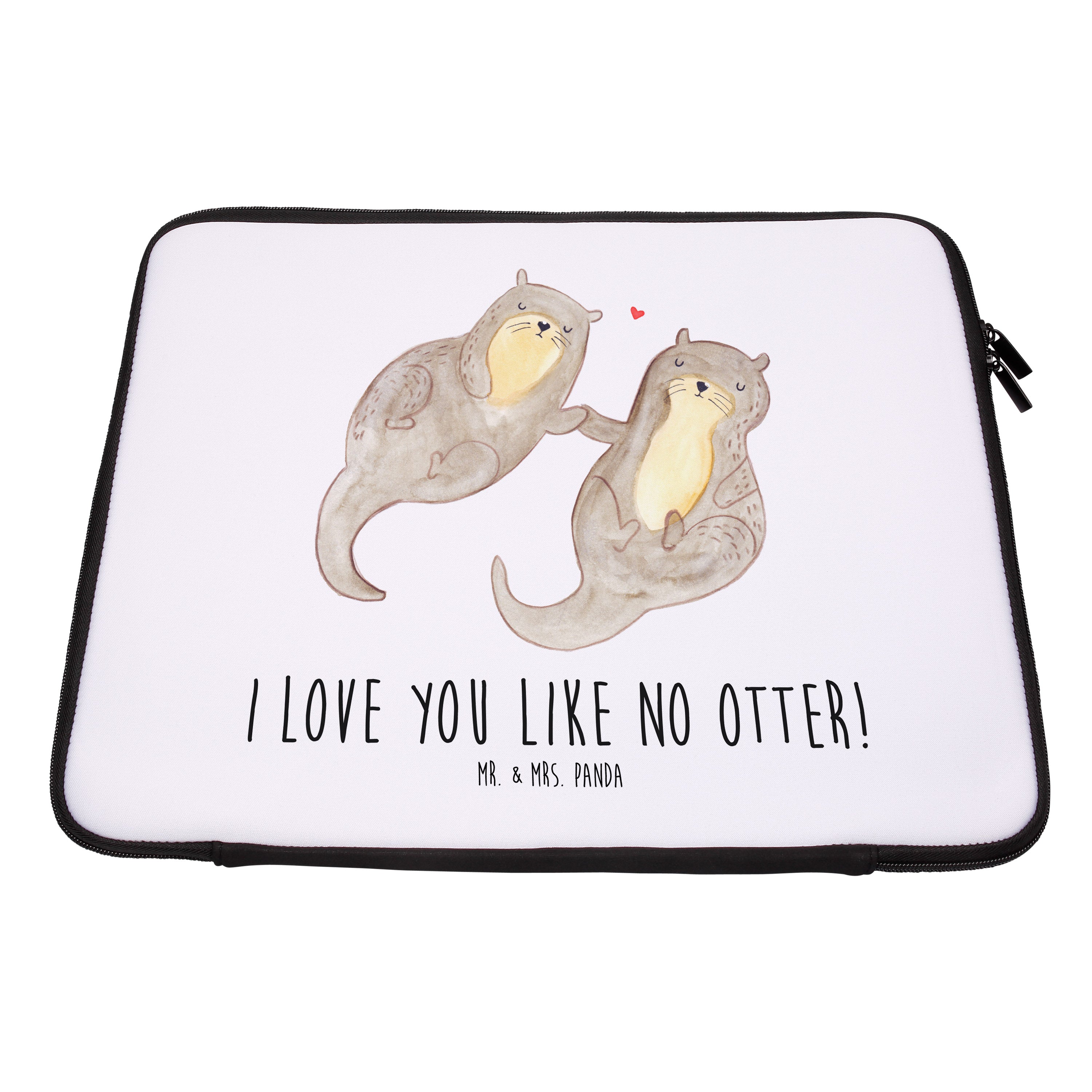 27 x 36 Notebook Tasche Otter händchenhaltend - mit Spruch - Weiß