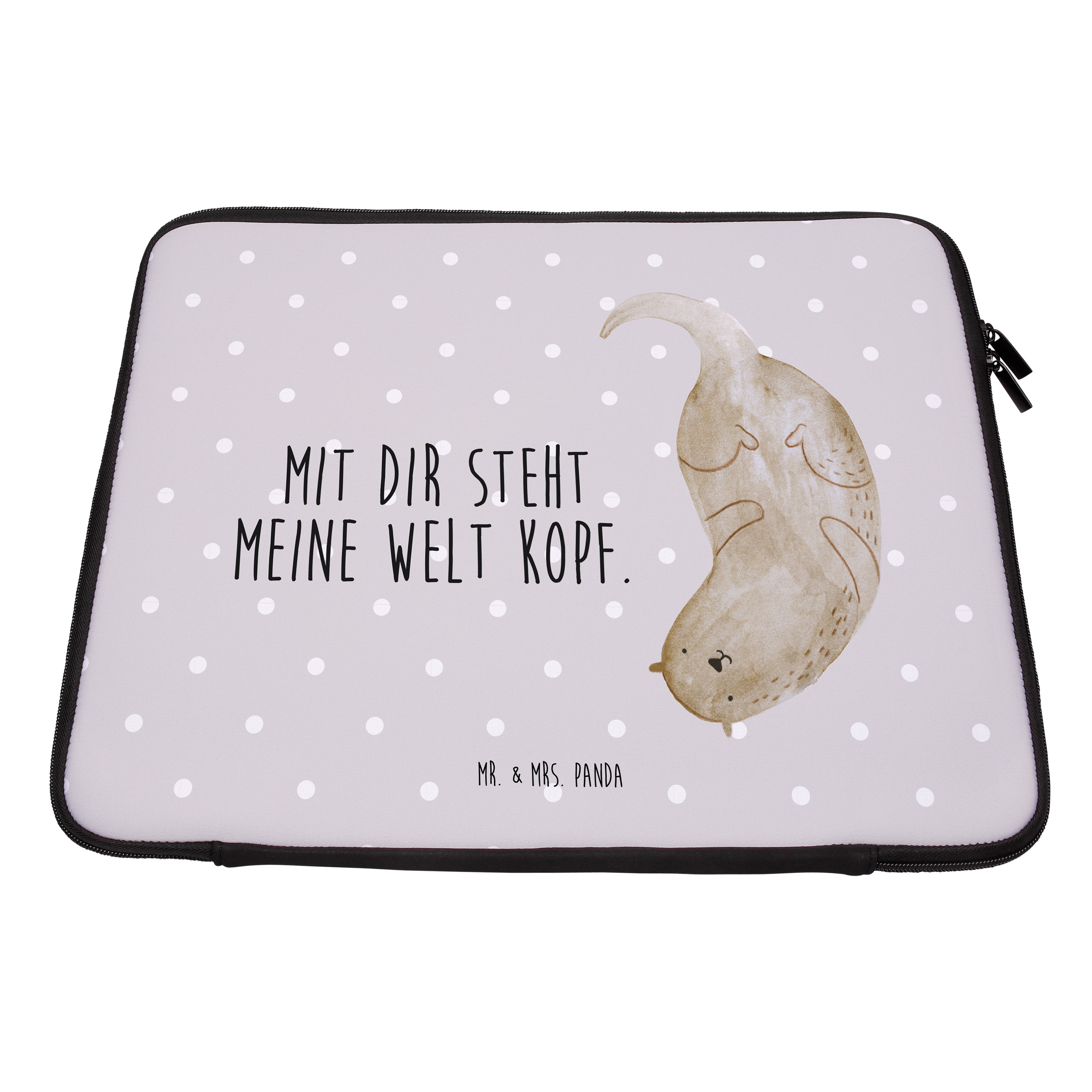 27 x 36 Notebook Tasche Otter kopfüber - mit Spruch - Grau Pastell