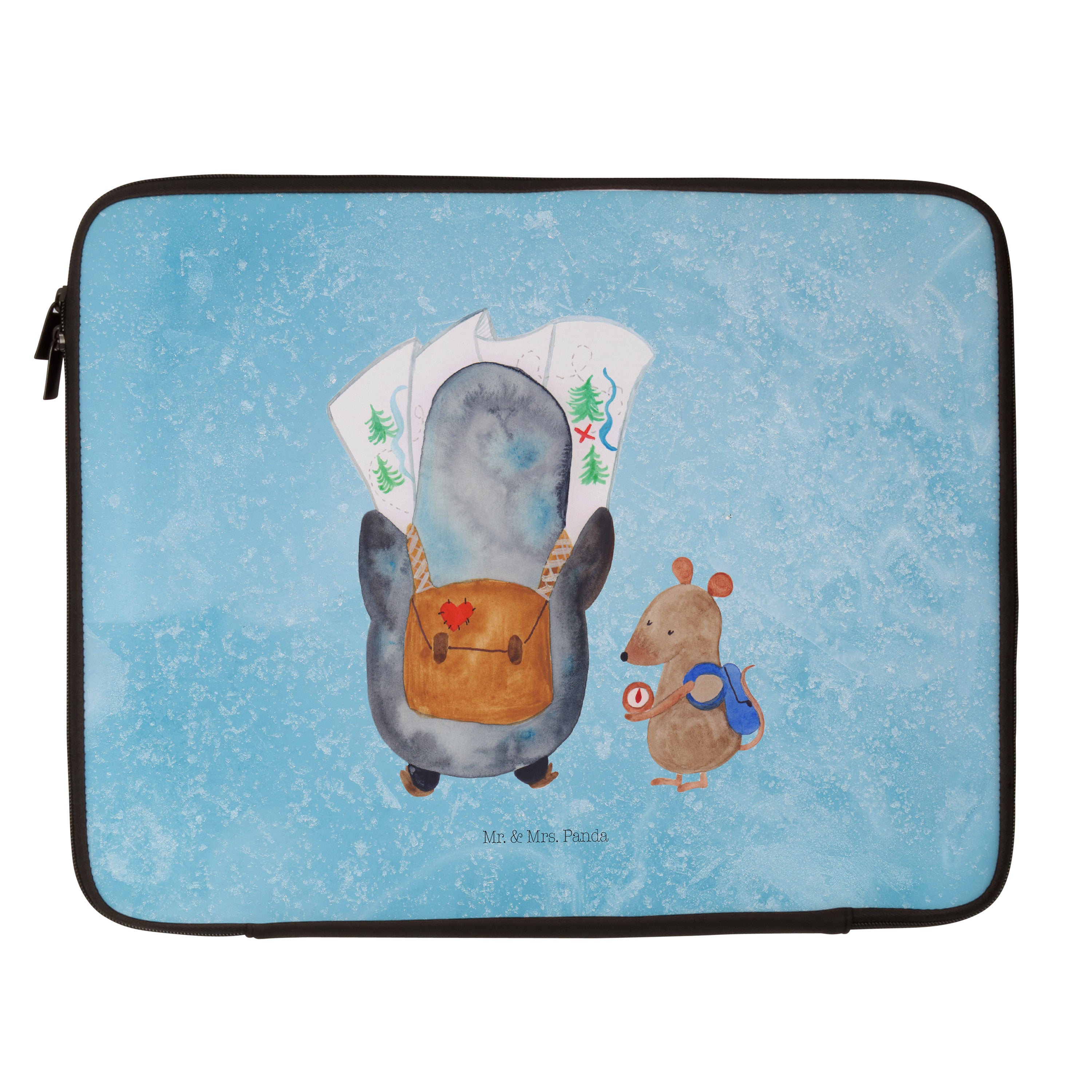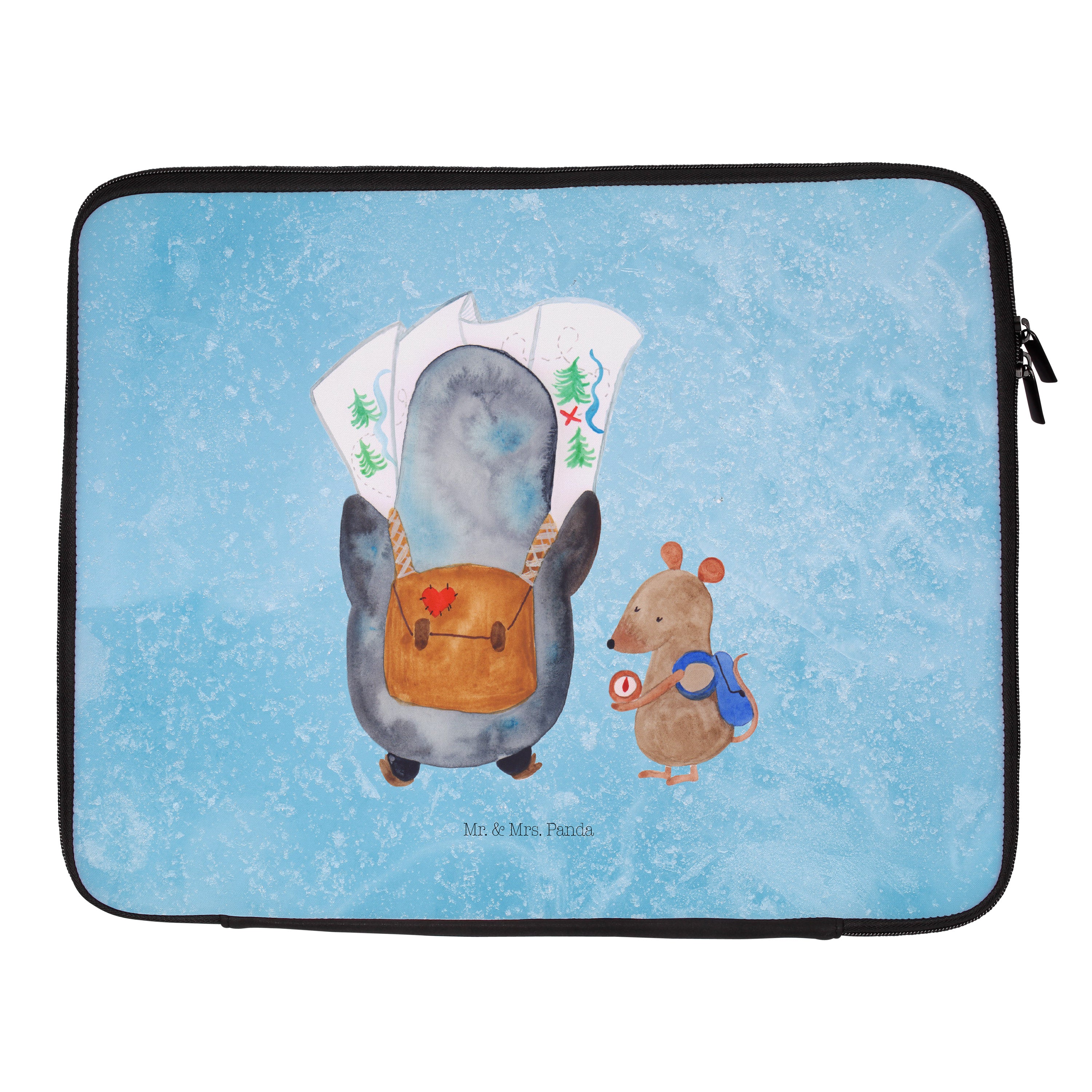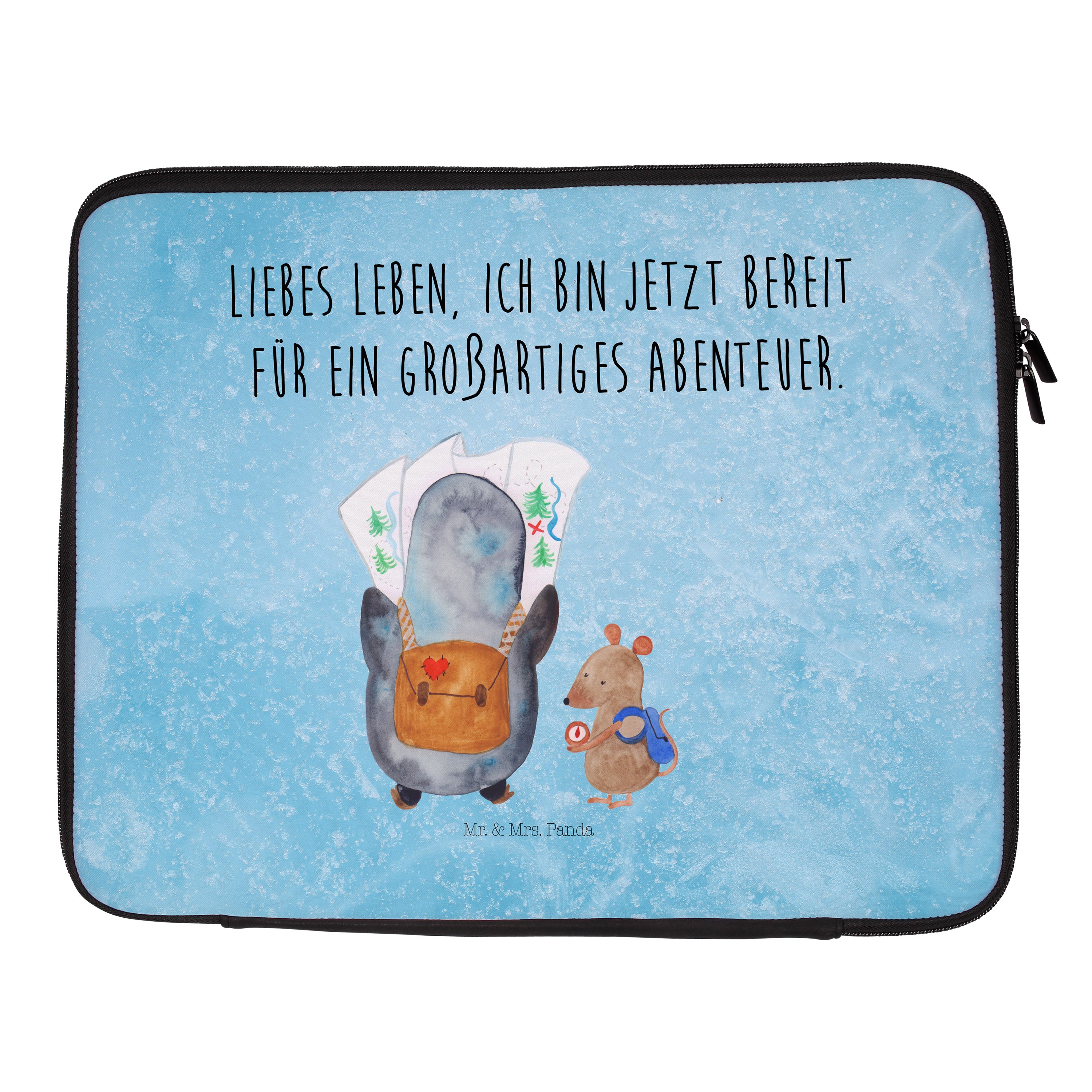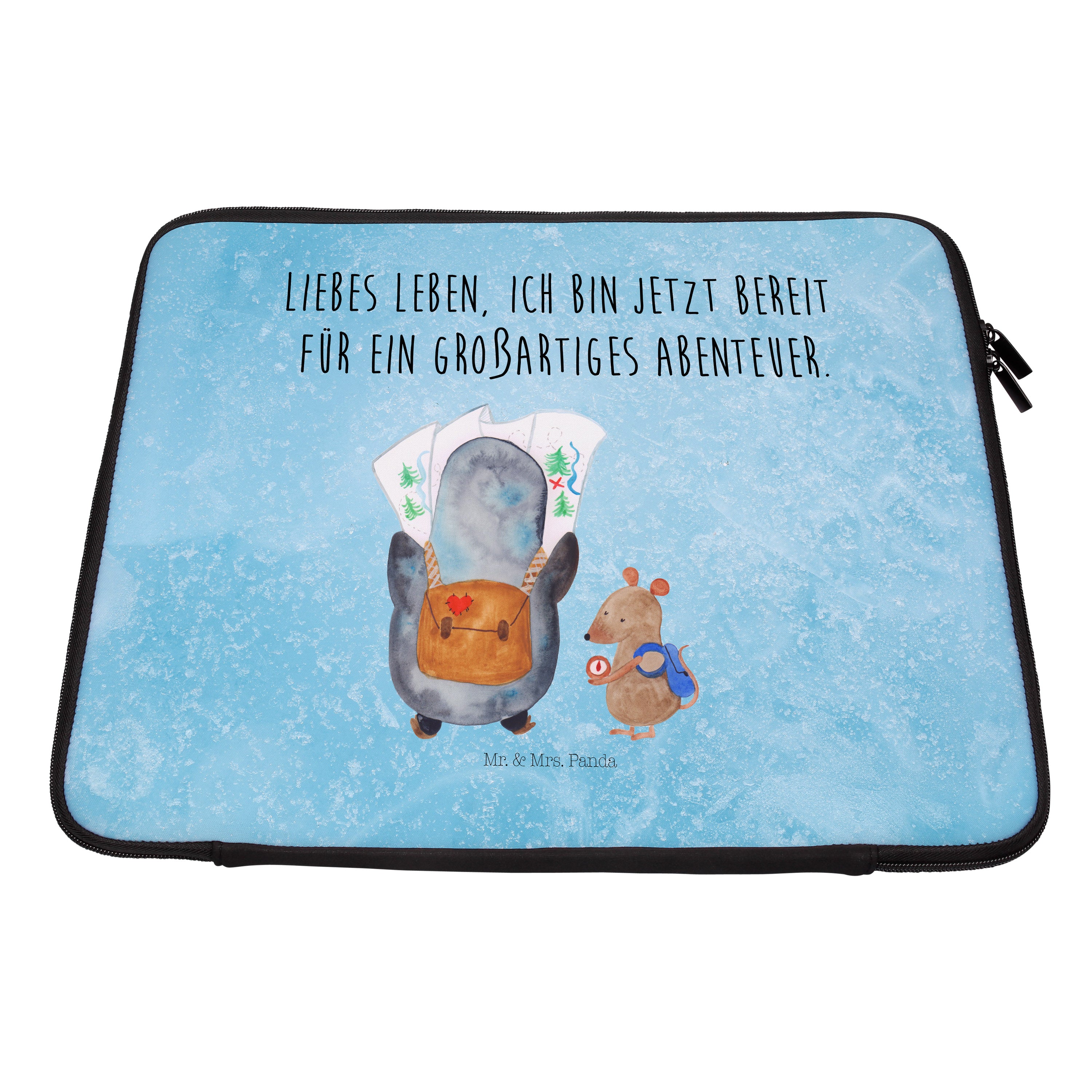 27 x 36 Notebook Tasche Pinguin & Maus Wanderer - mit Spruch - Eisblau