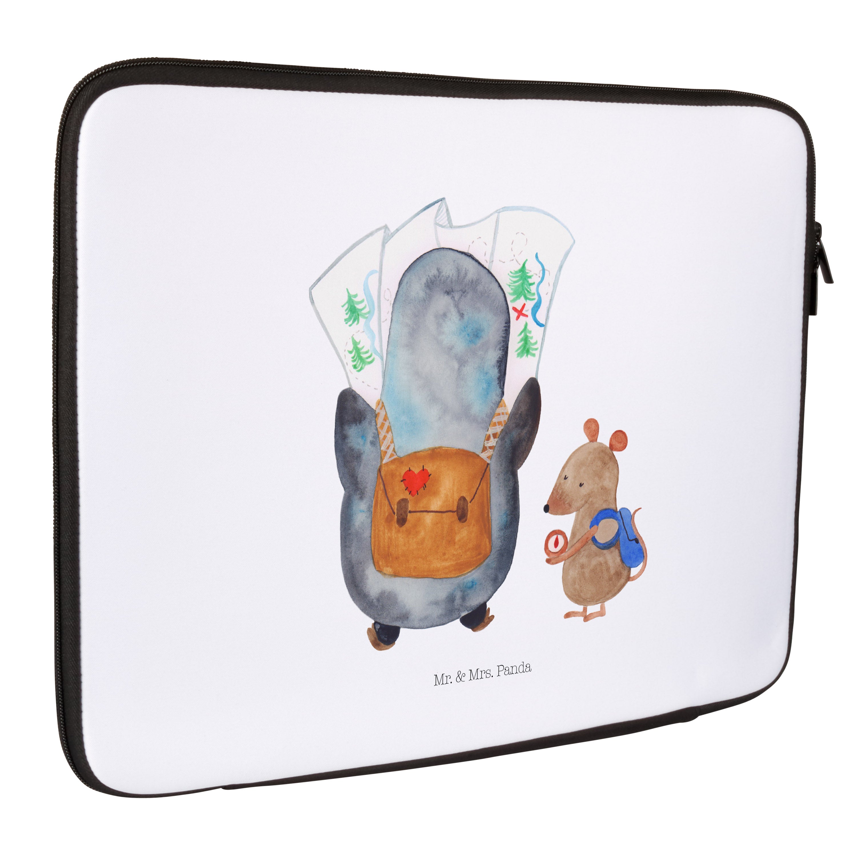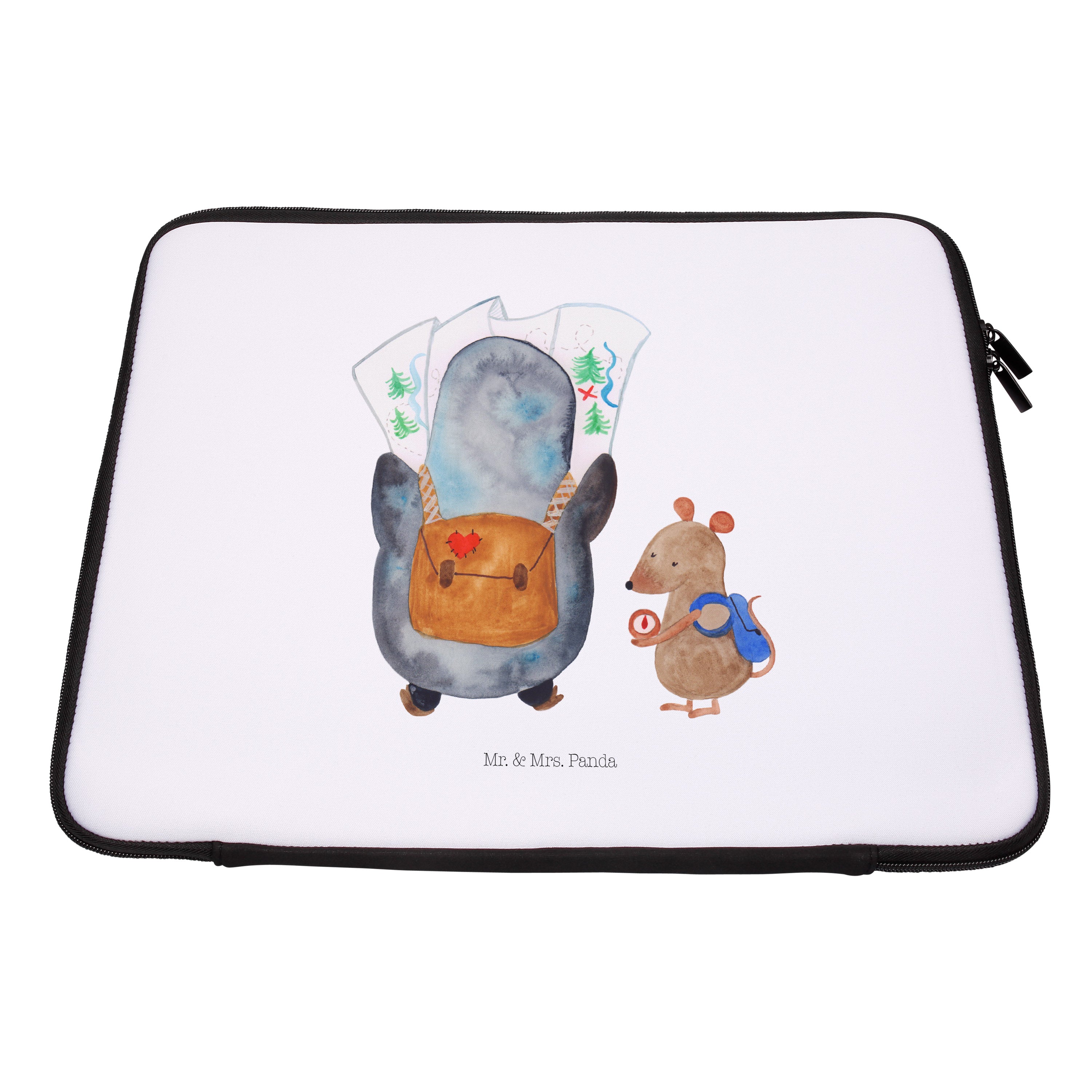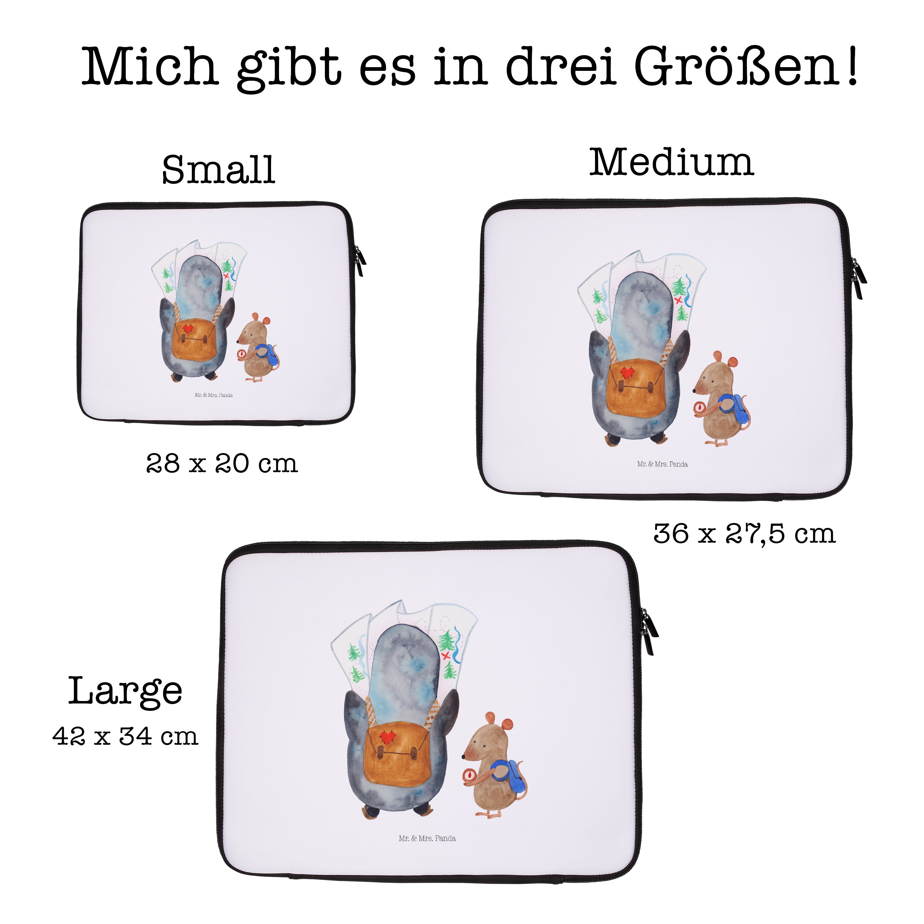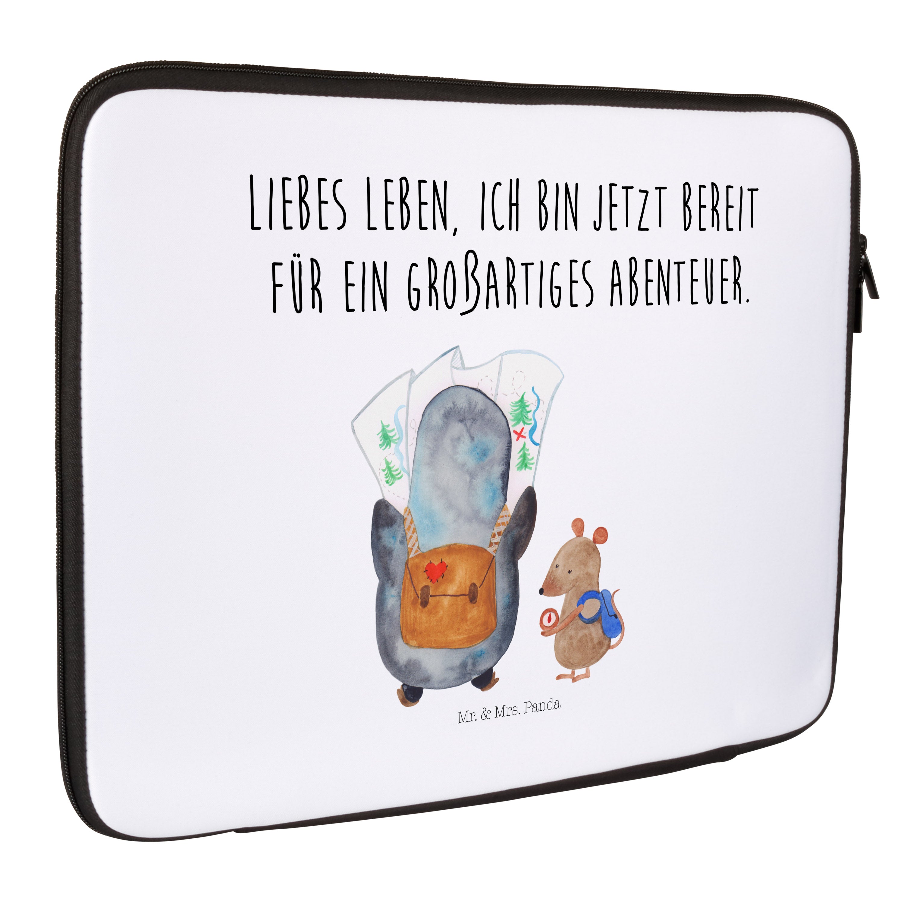 27 x 36 Notebook Tasche Pinguin & Maus Wanderer - mit Spruch - Eisblau