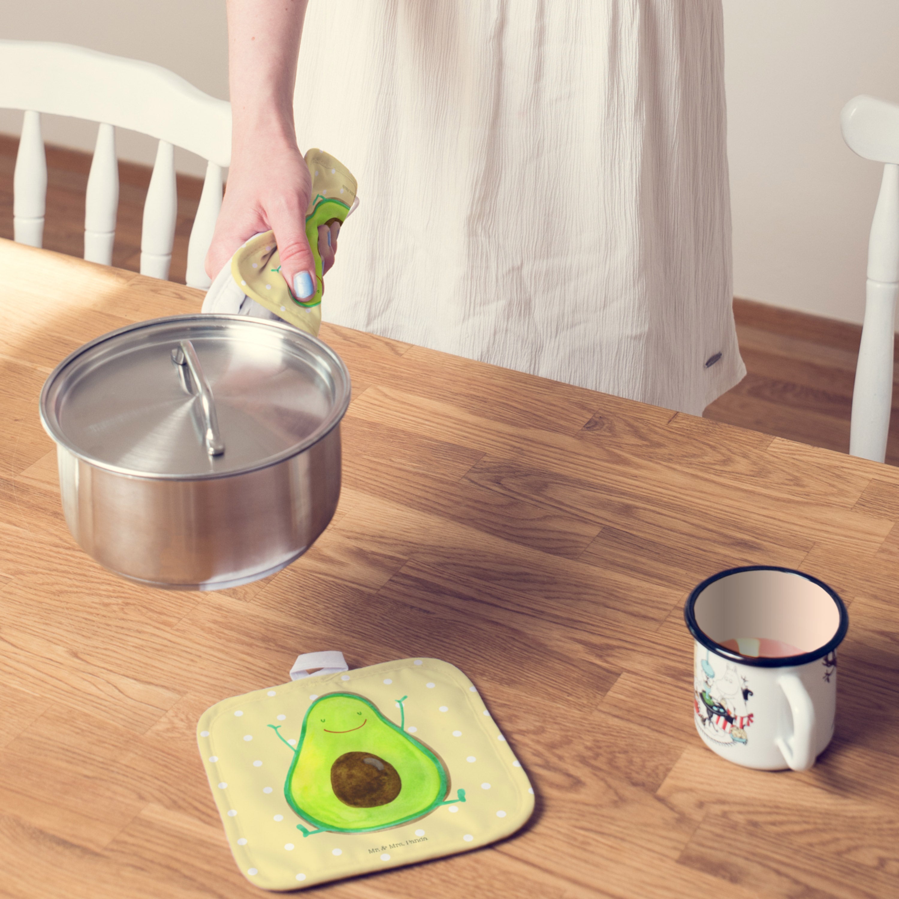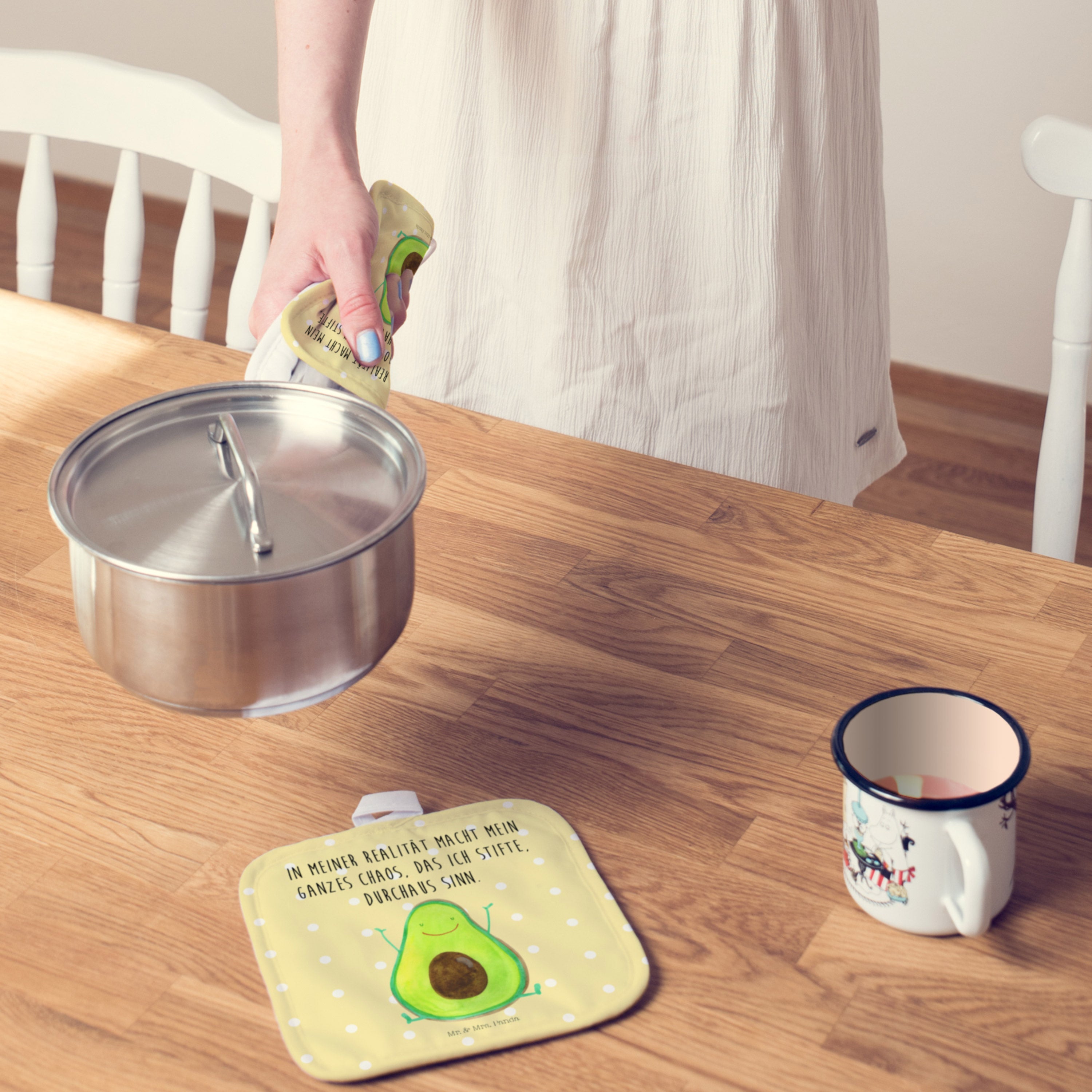 2er Set Topflappen Avocado Happy - mit Spruch - Gelb Pastell