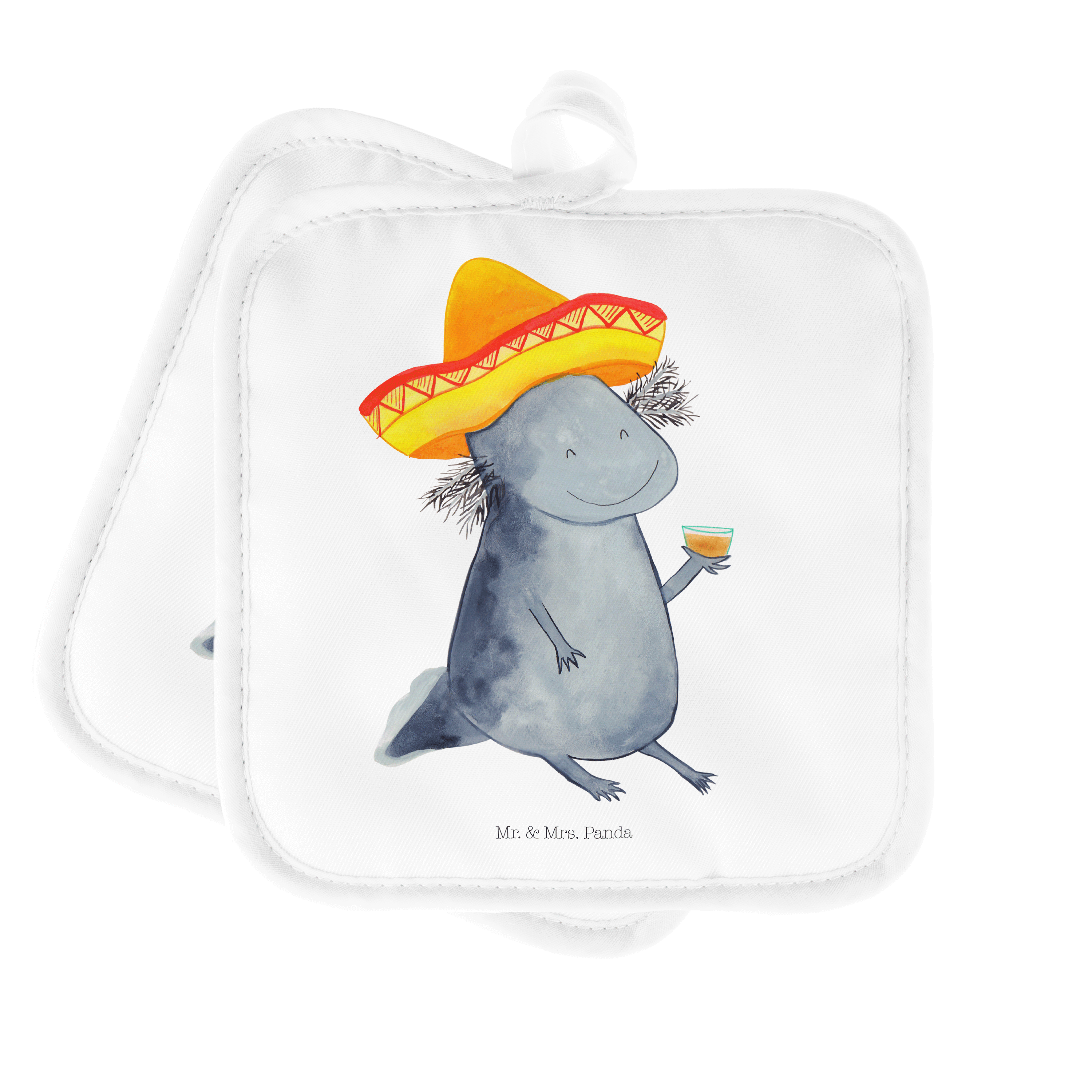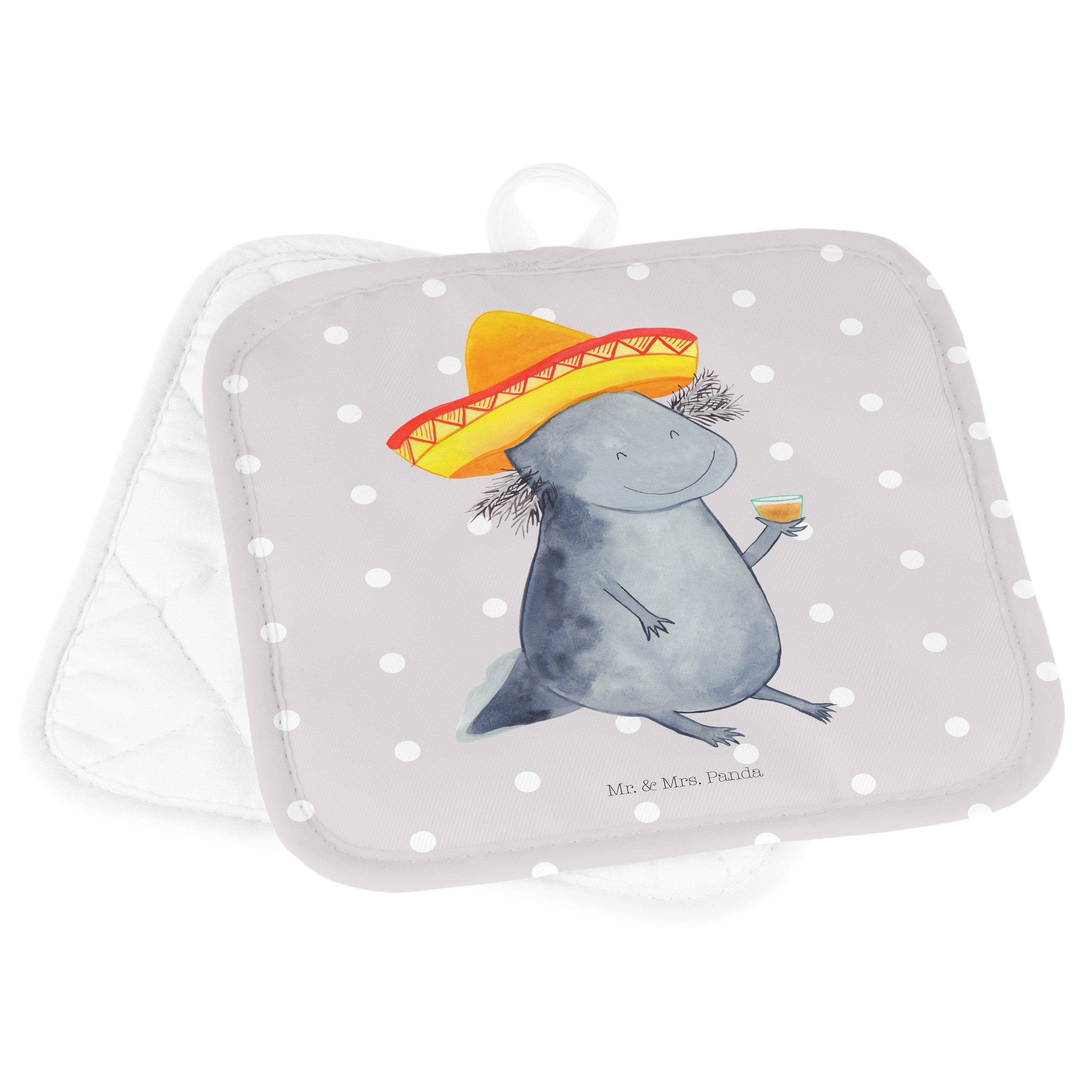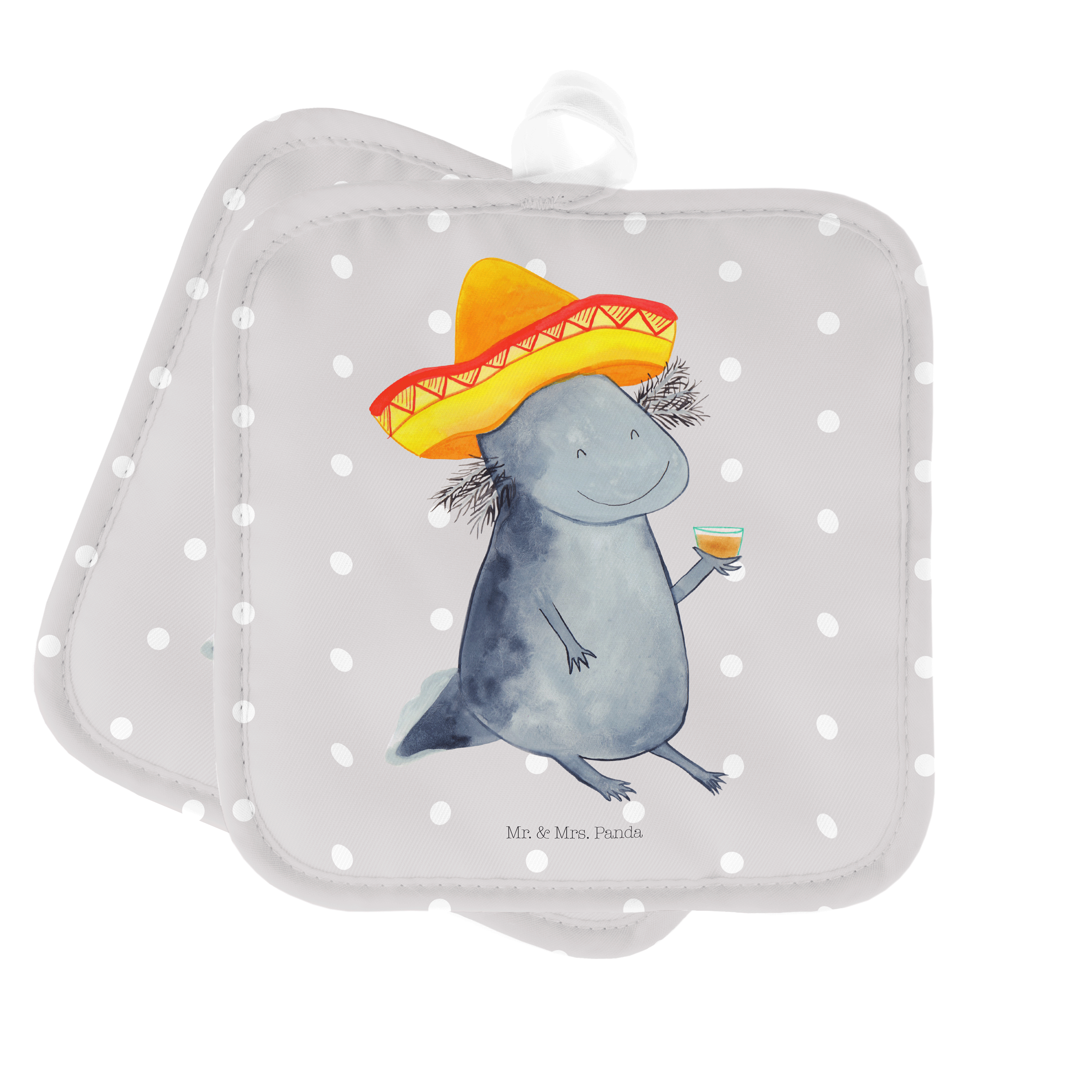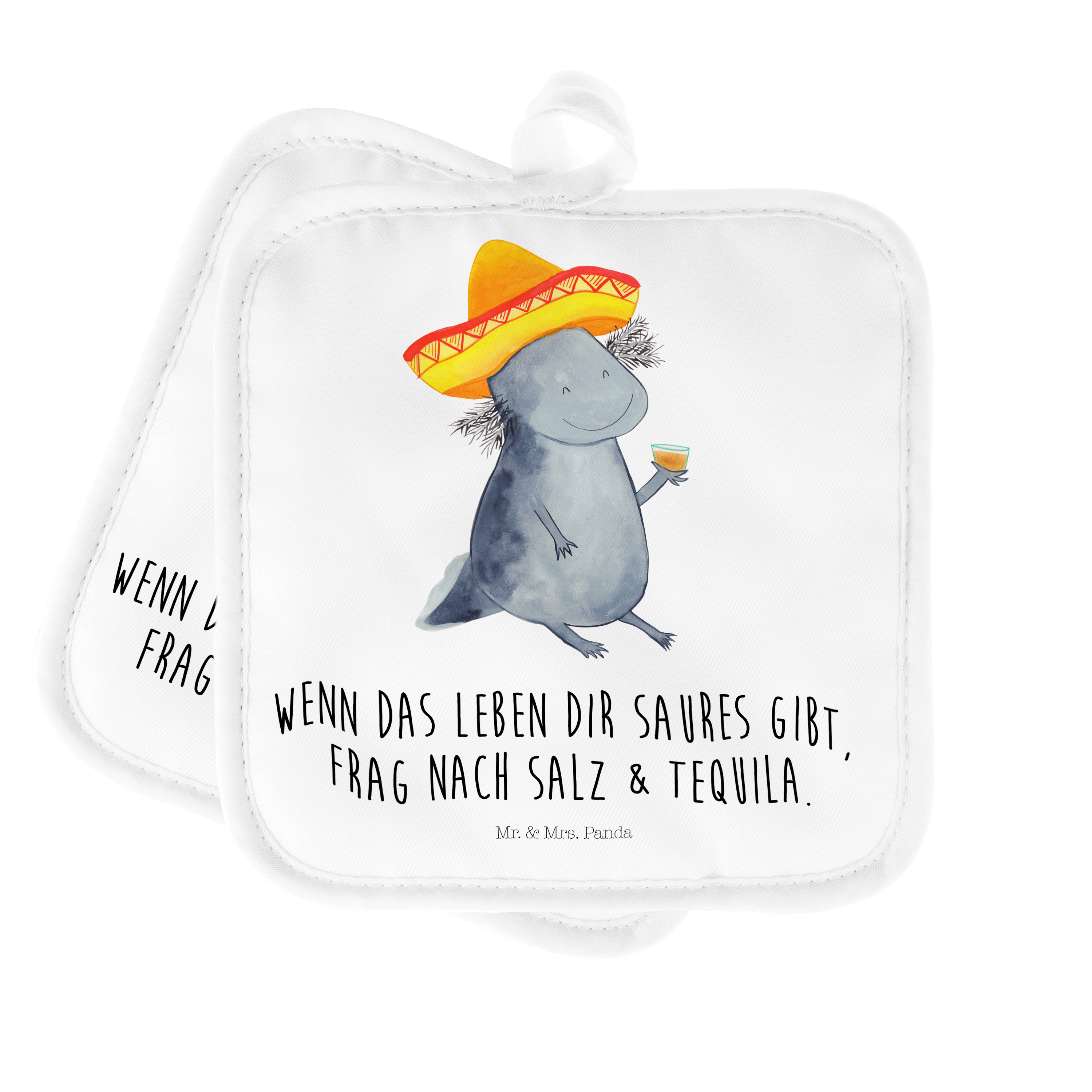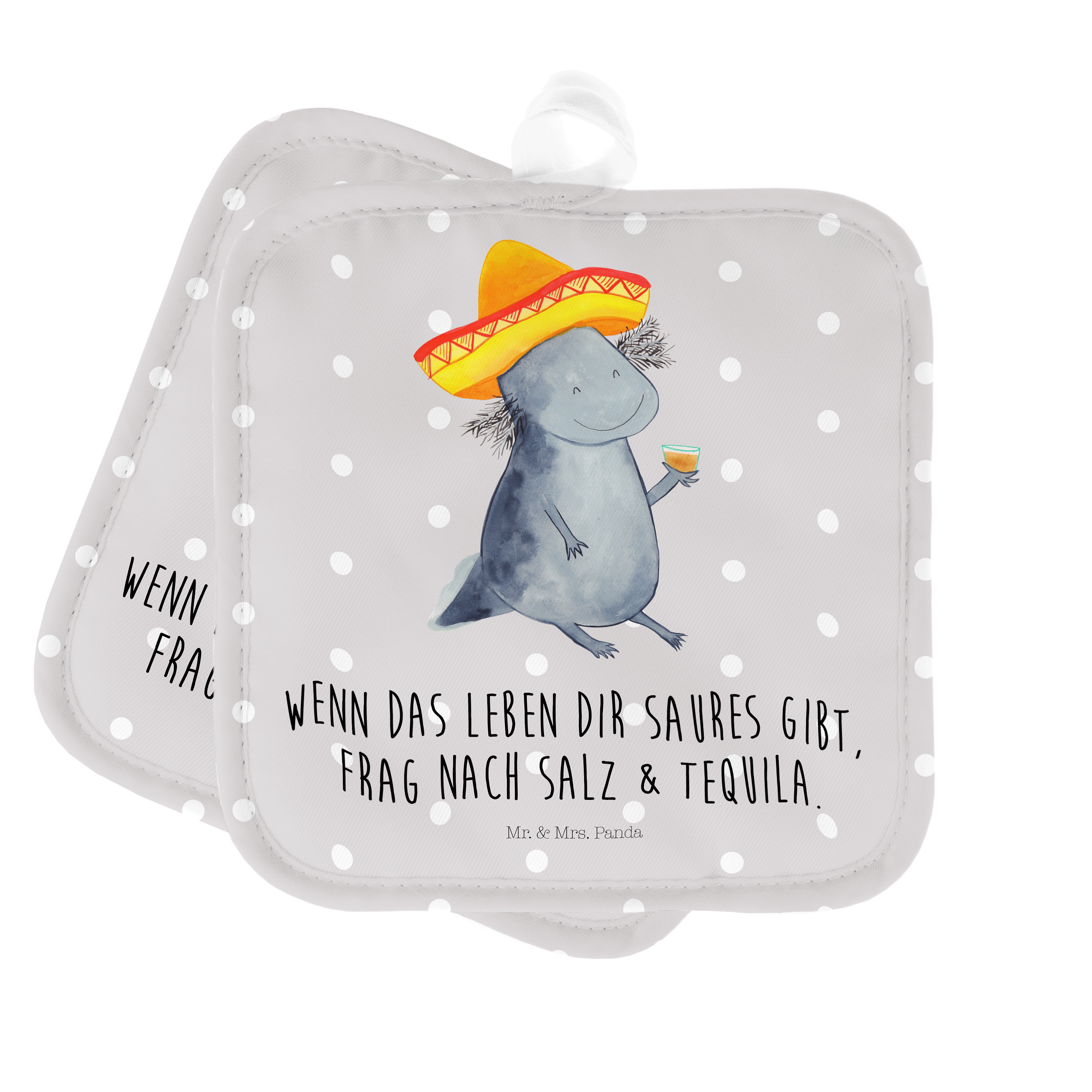 2er Set Topflappen Axolotl Tequila - mit Spruch - Grau Pastell