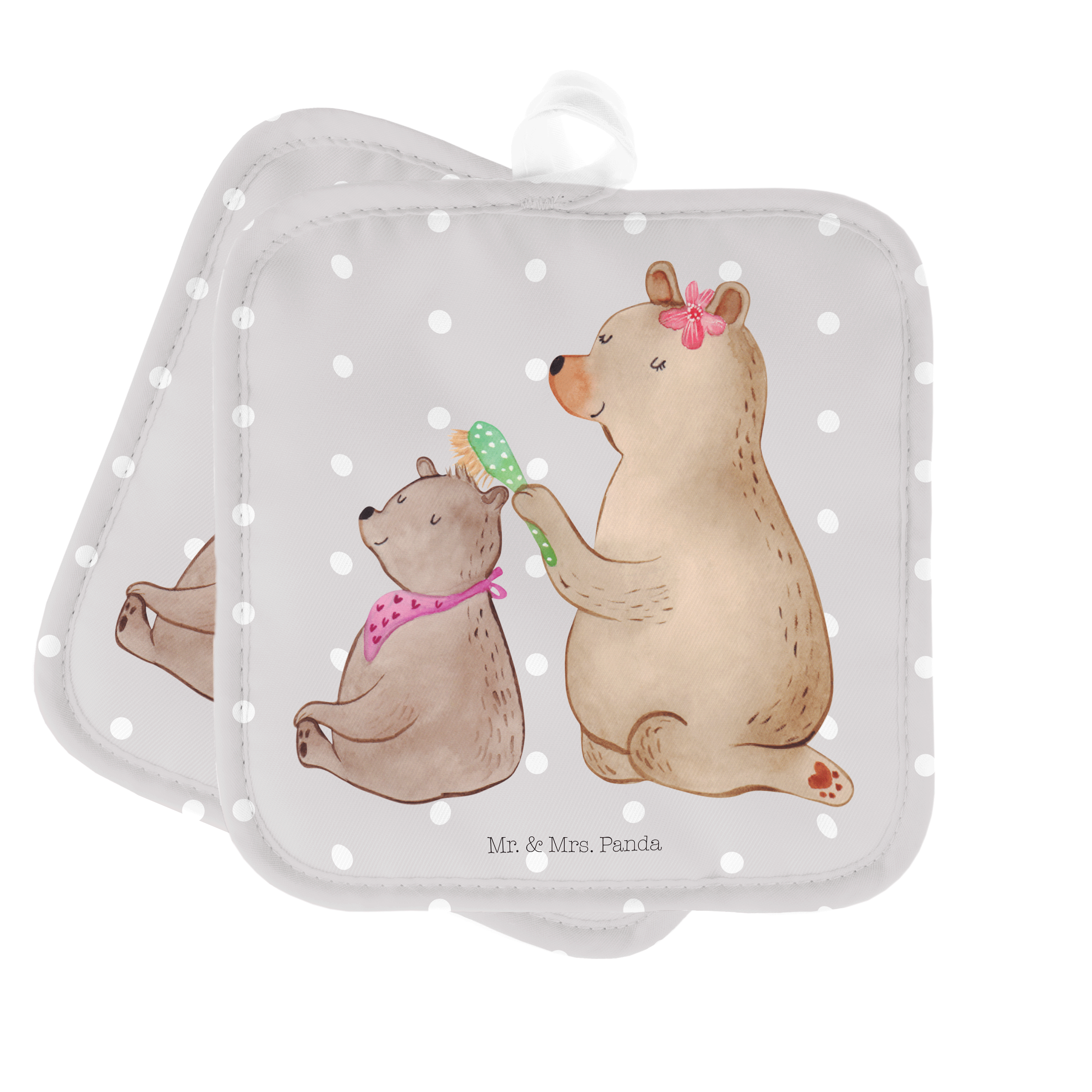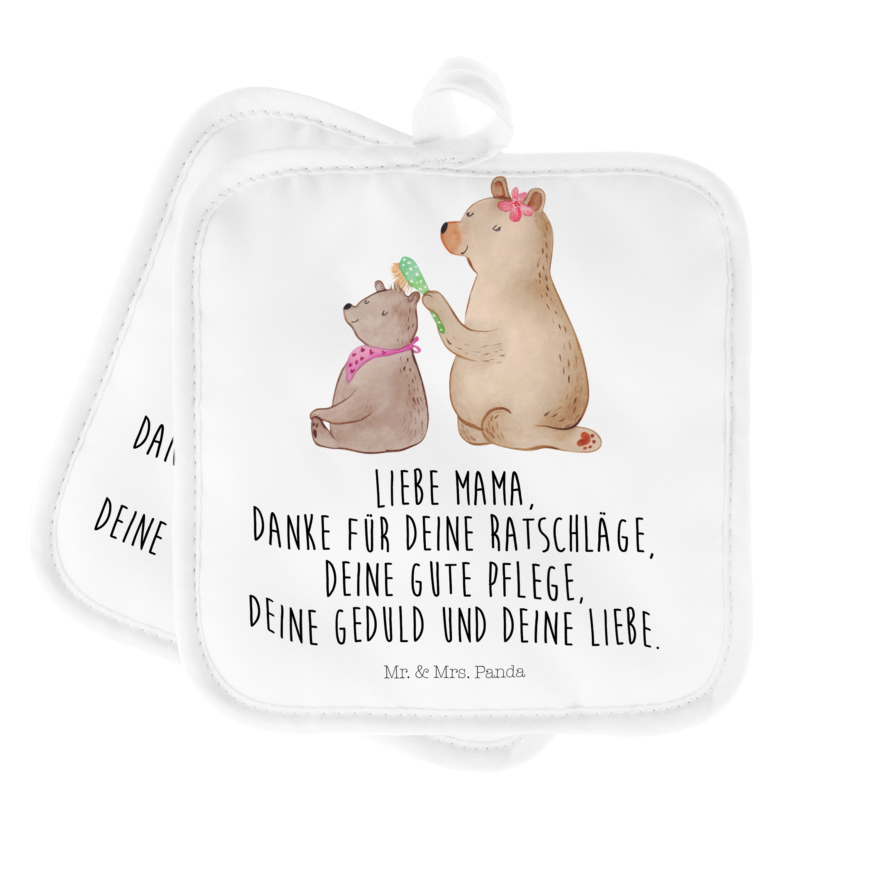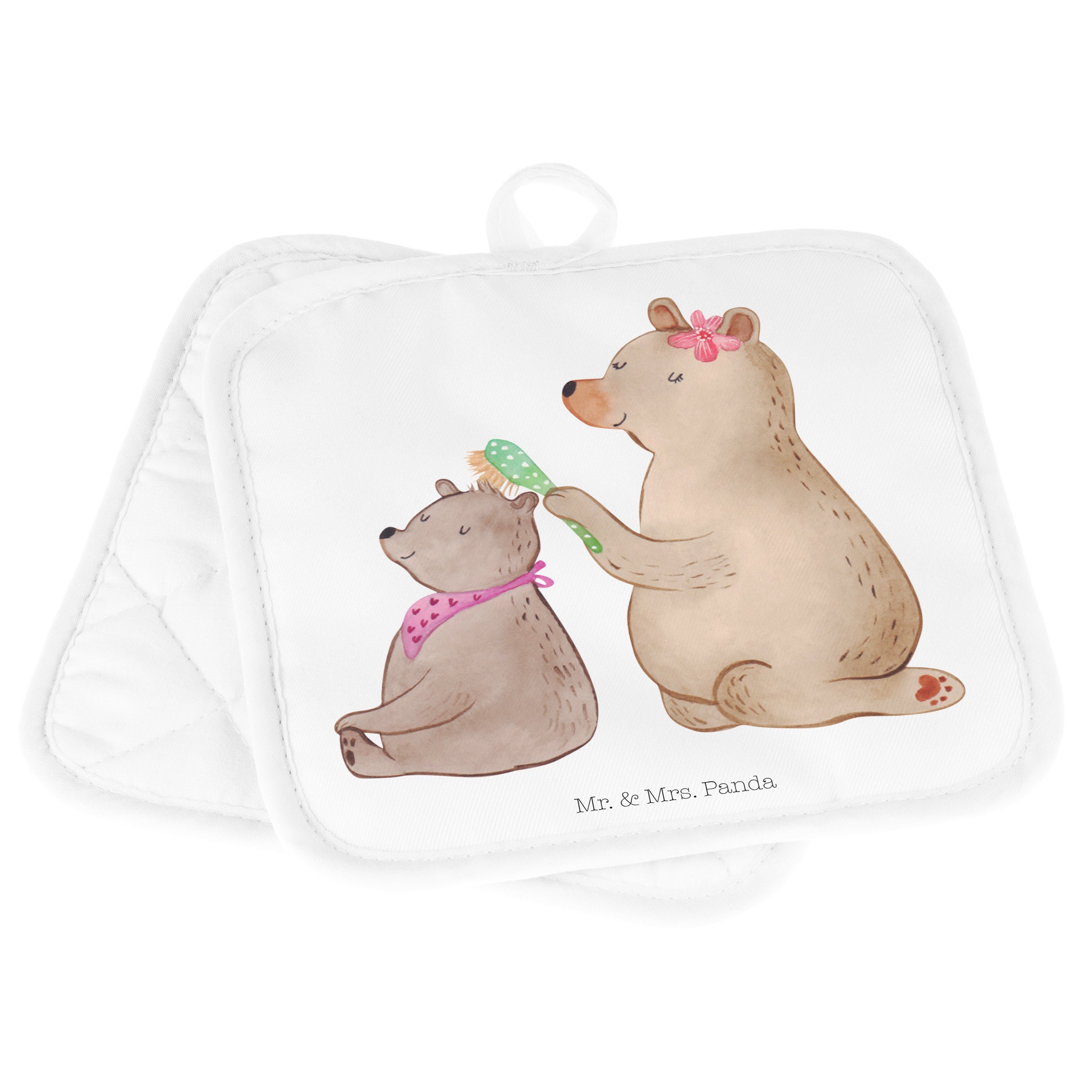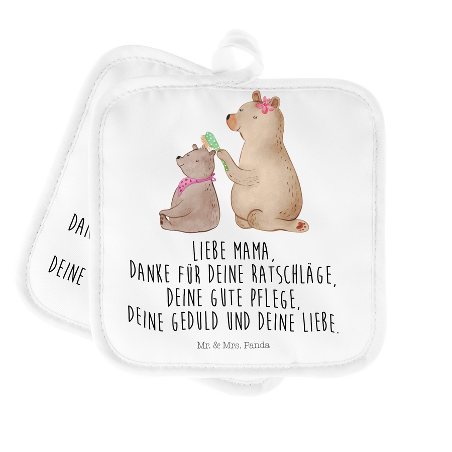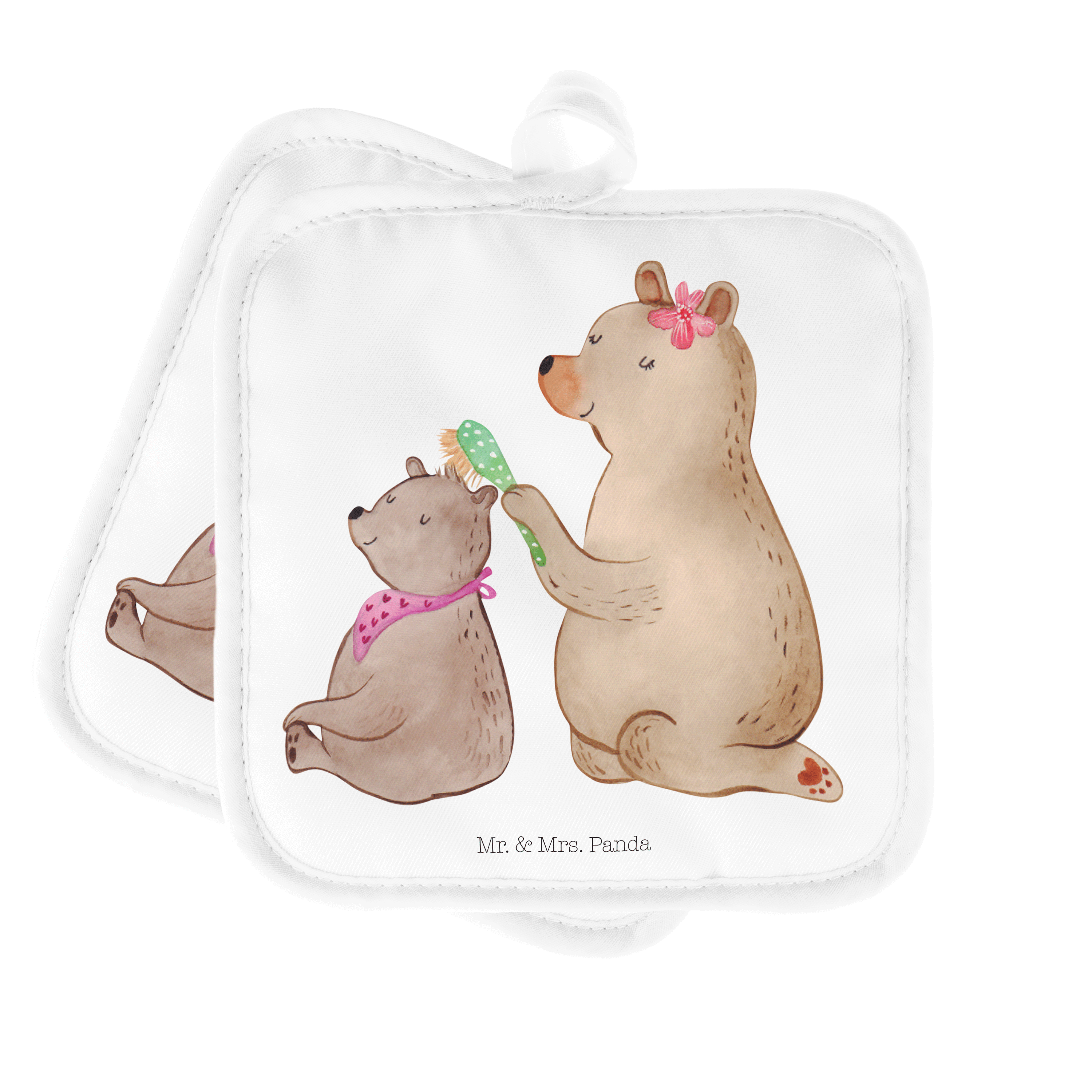 2er Set Topflappen Bär mit Kind - mit Spruch - Weiß
