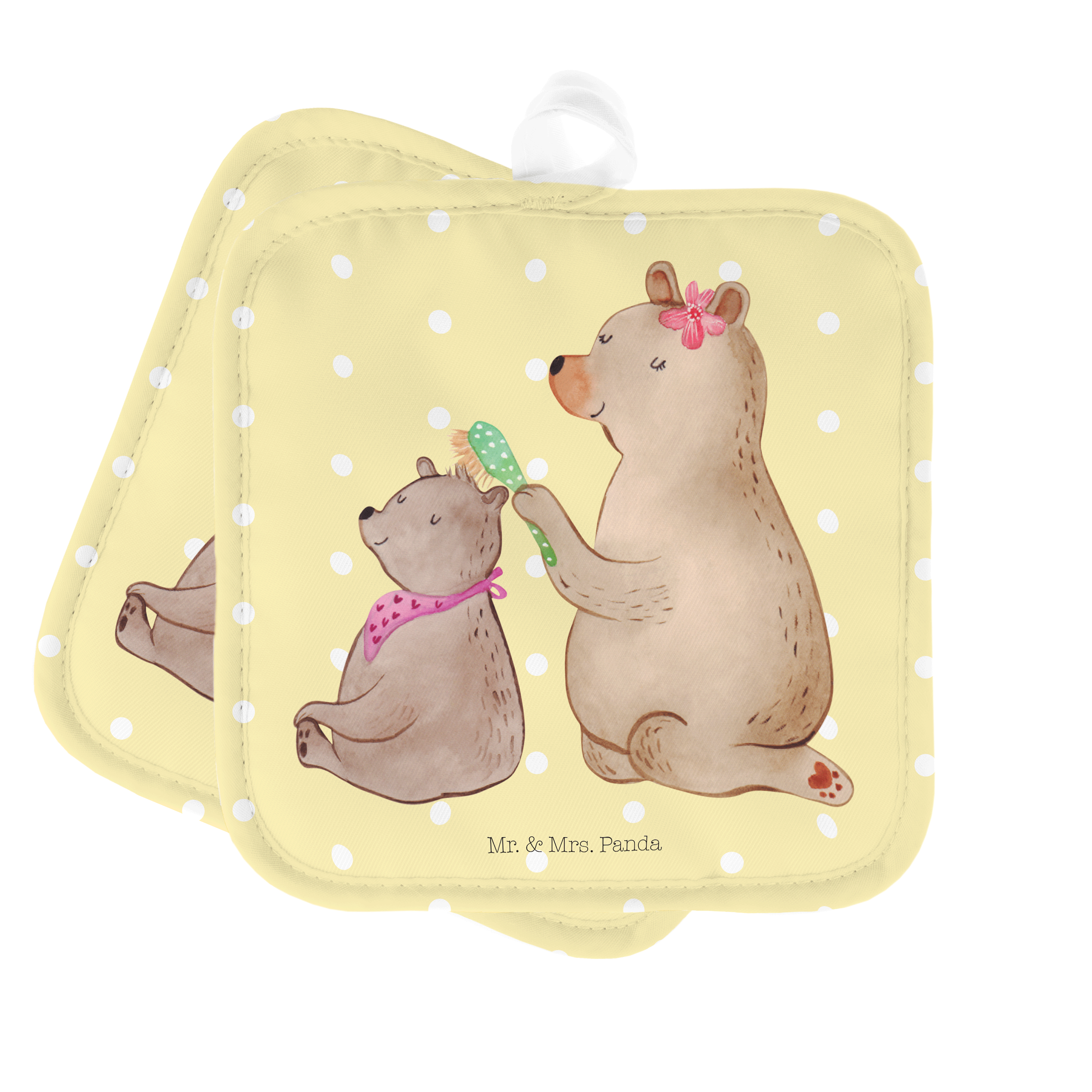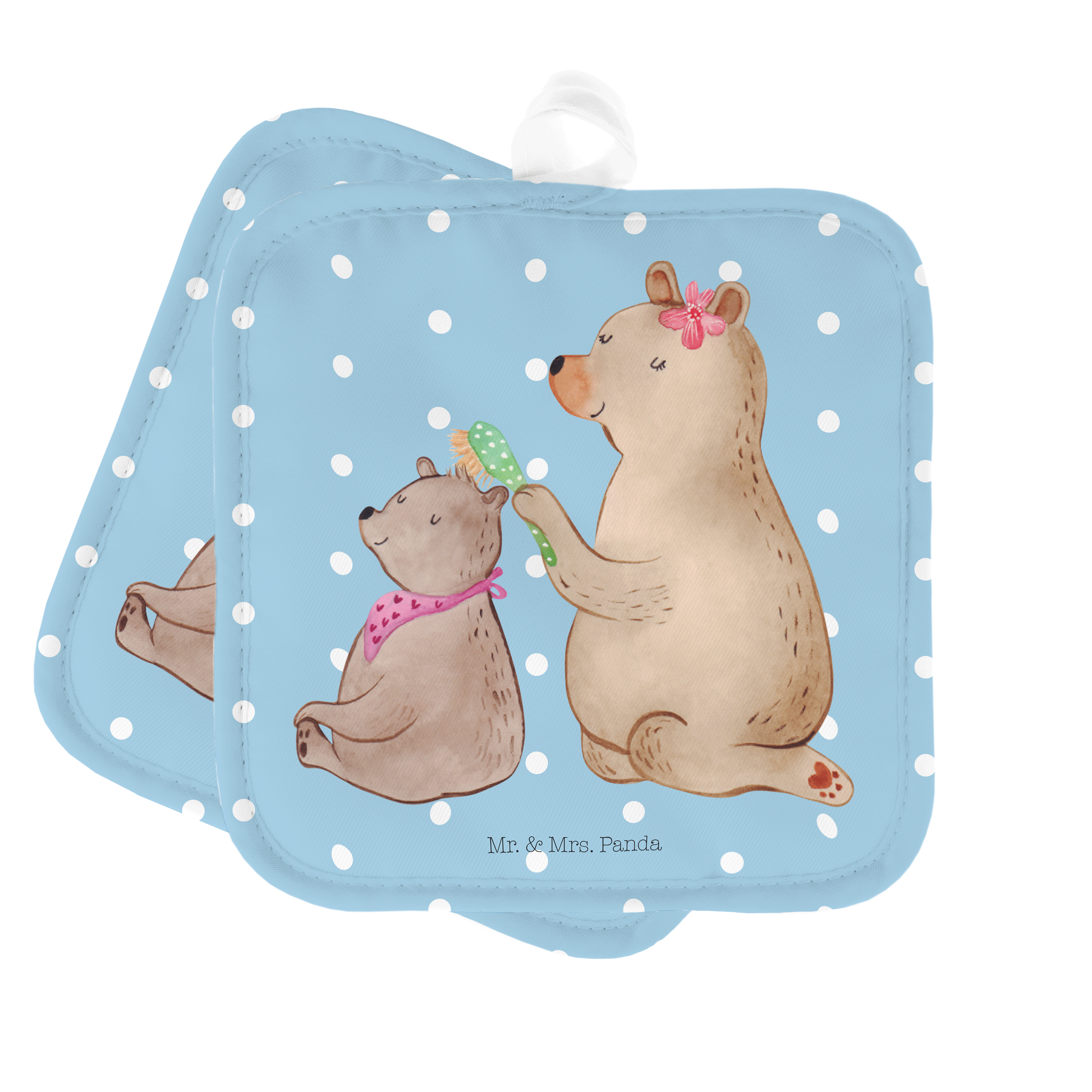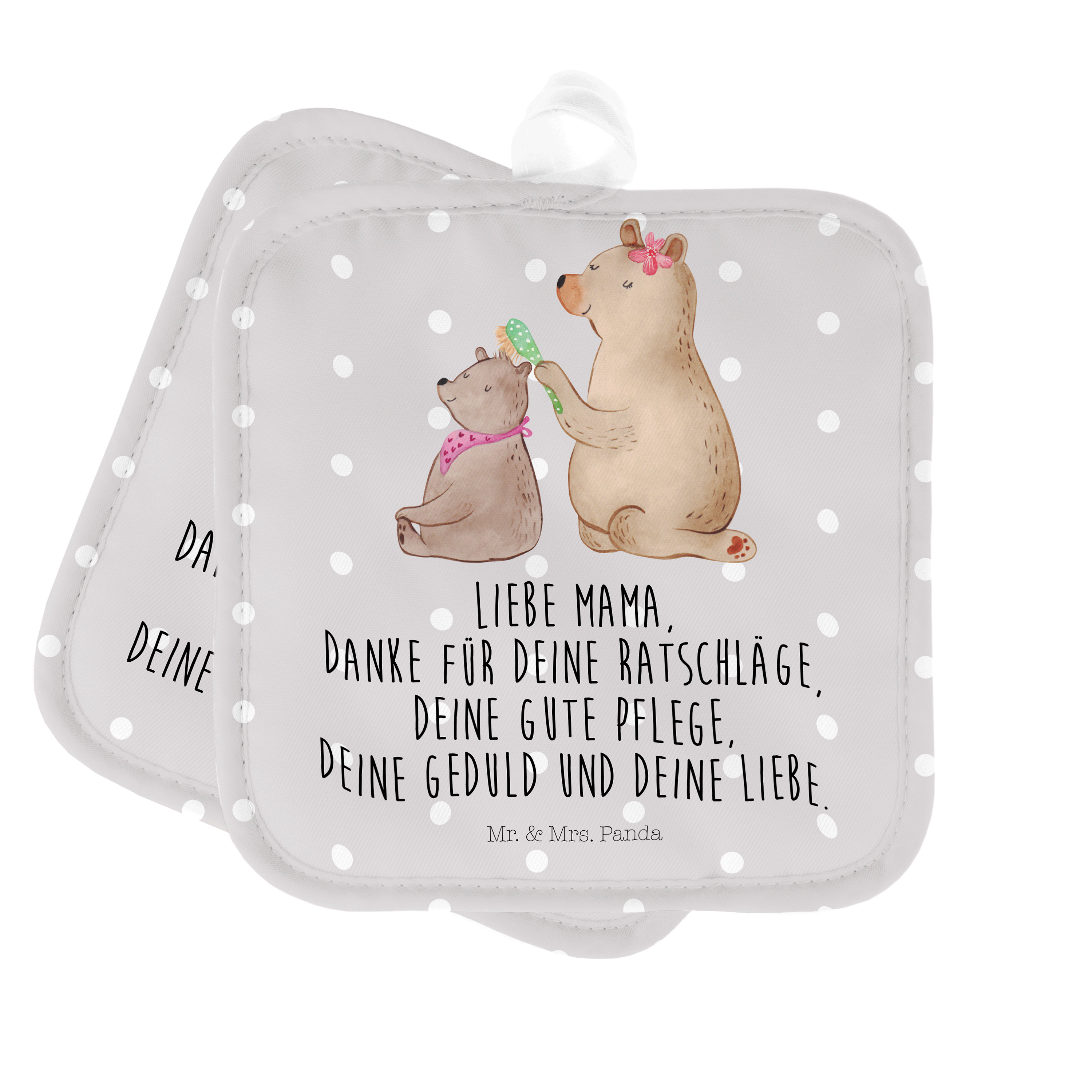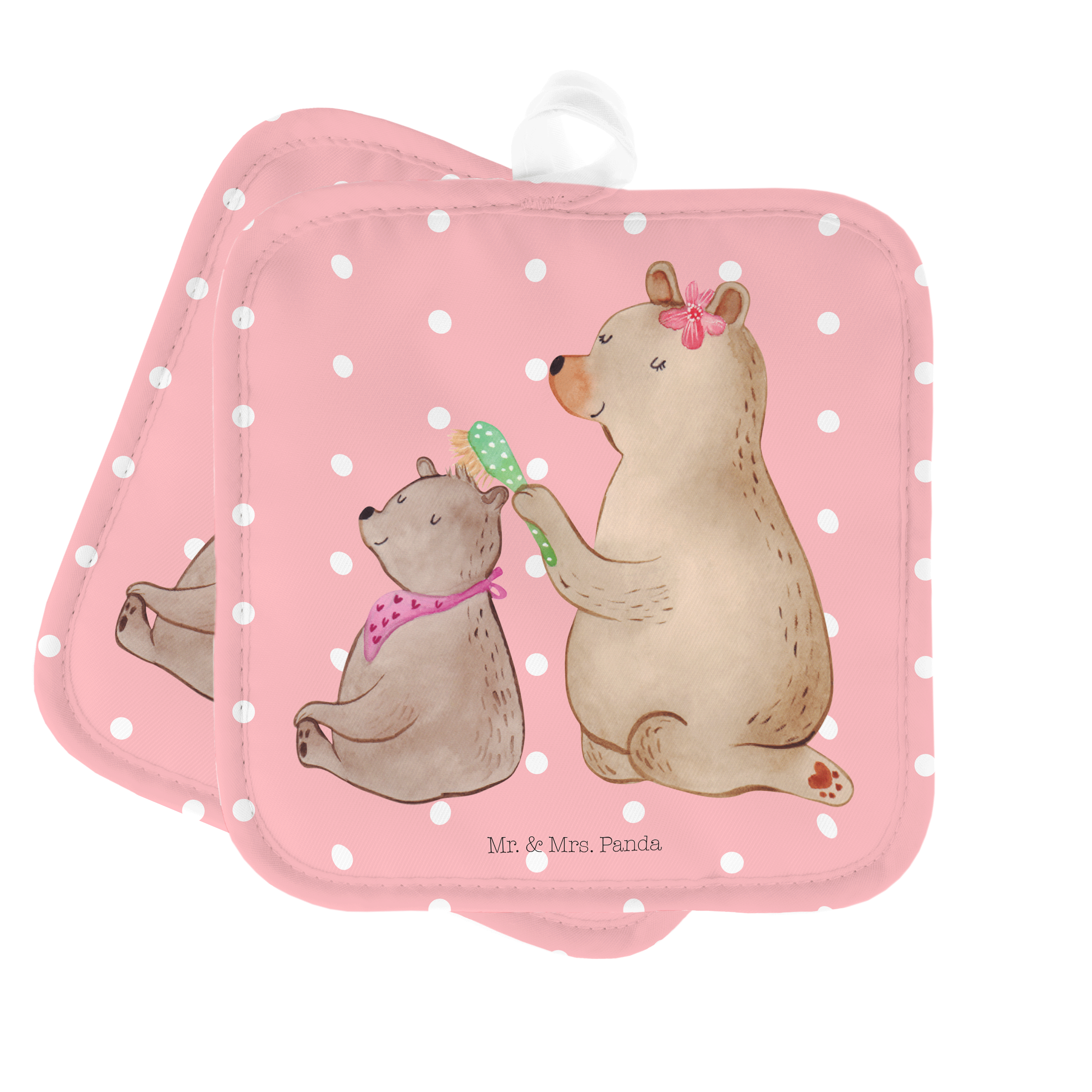 2er Set Topflappen Bär mit Kind - mit Spruch - Weiß