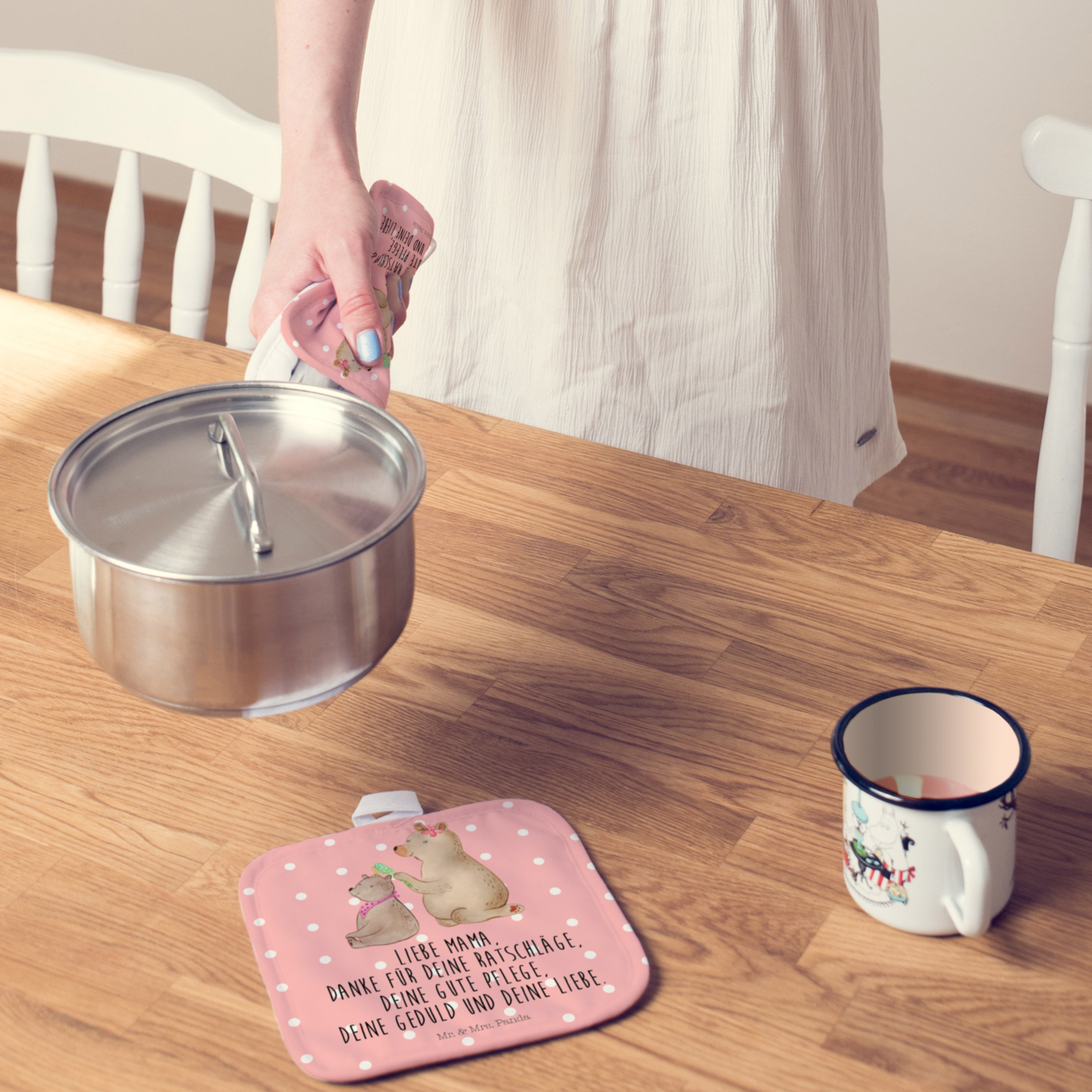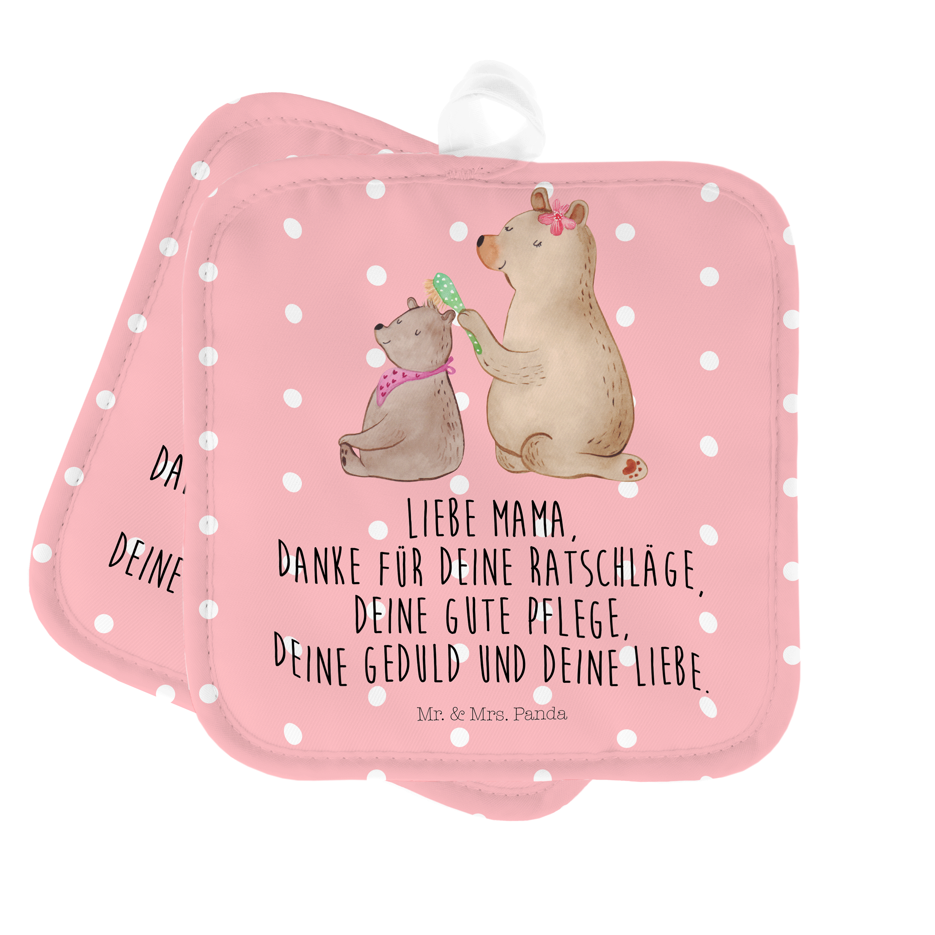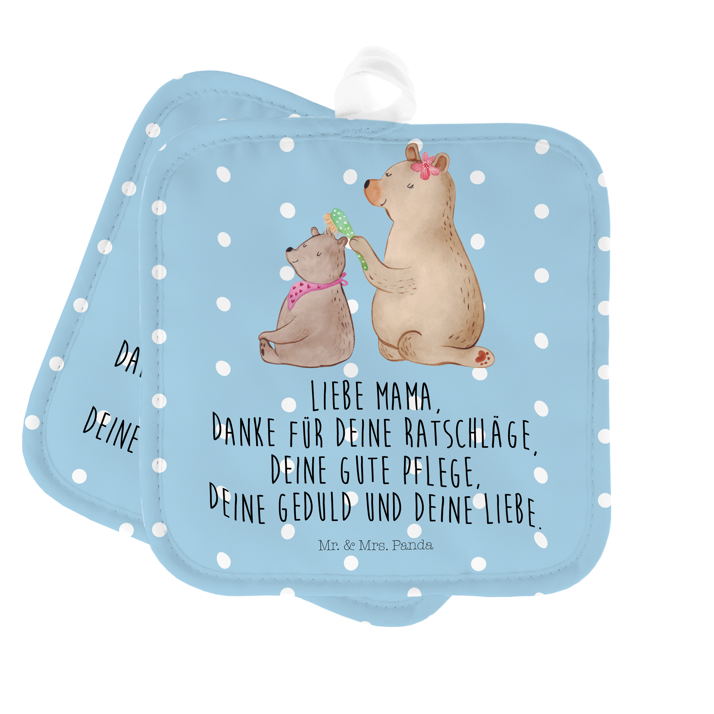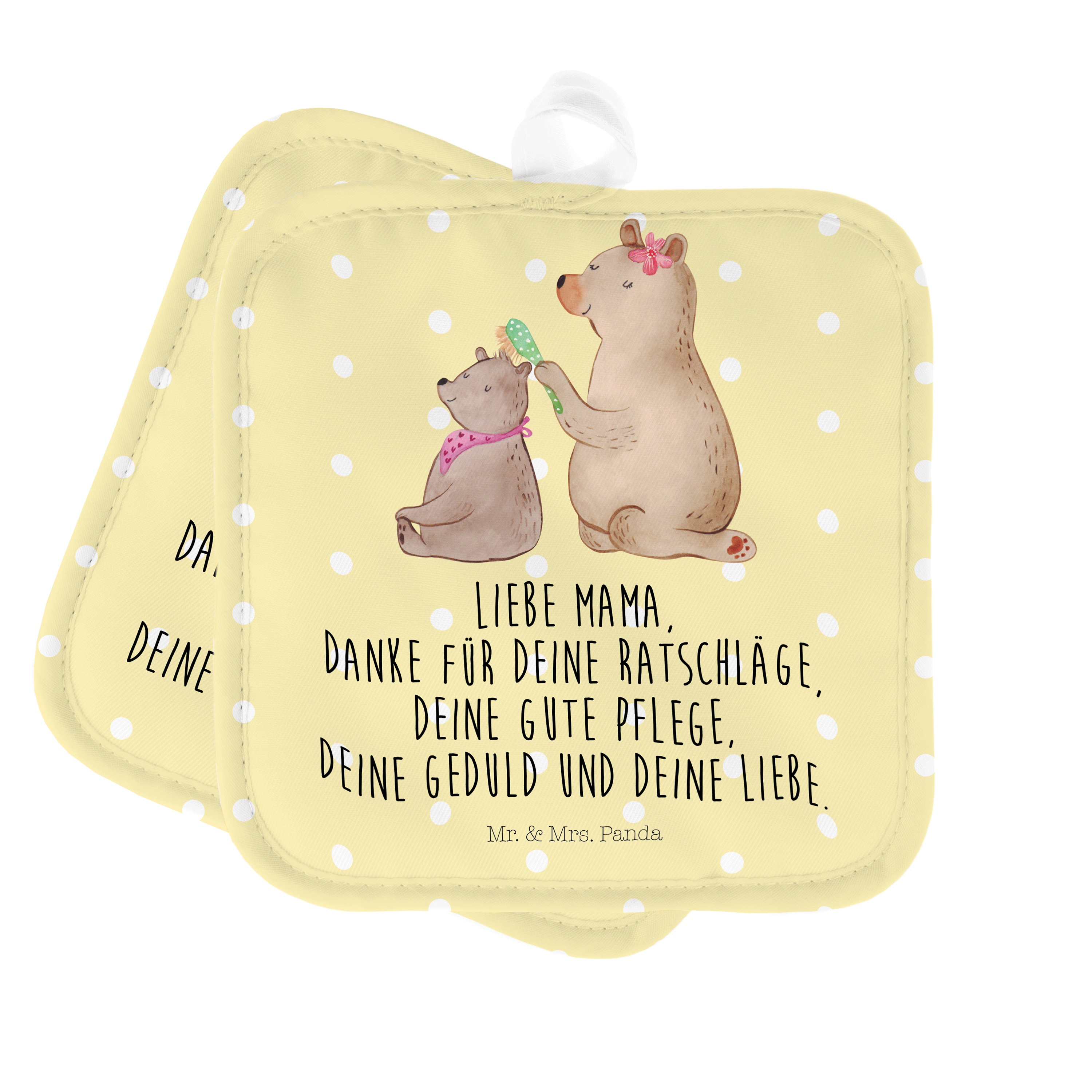 2er Set Topflappen Bär mit Kind - mit Spruch - Weiß