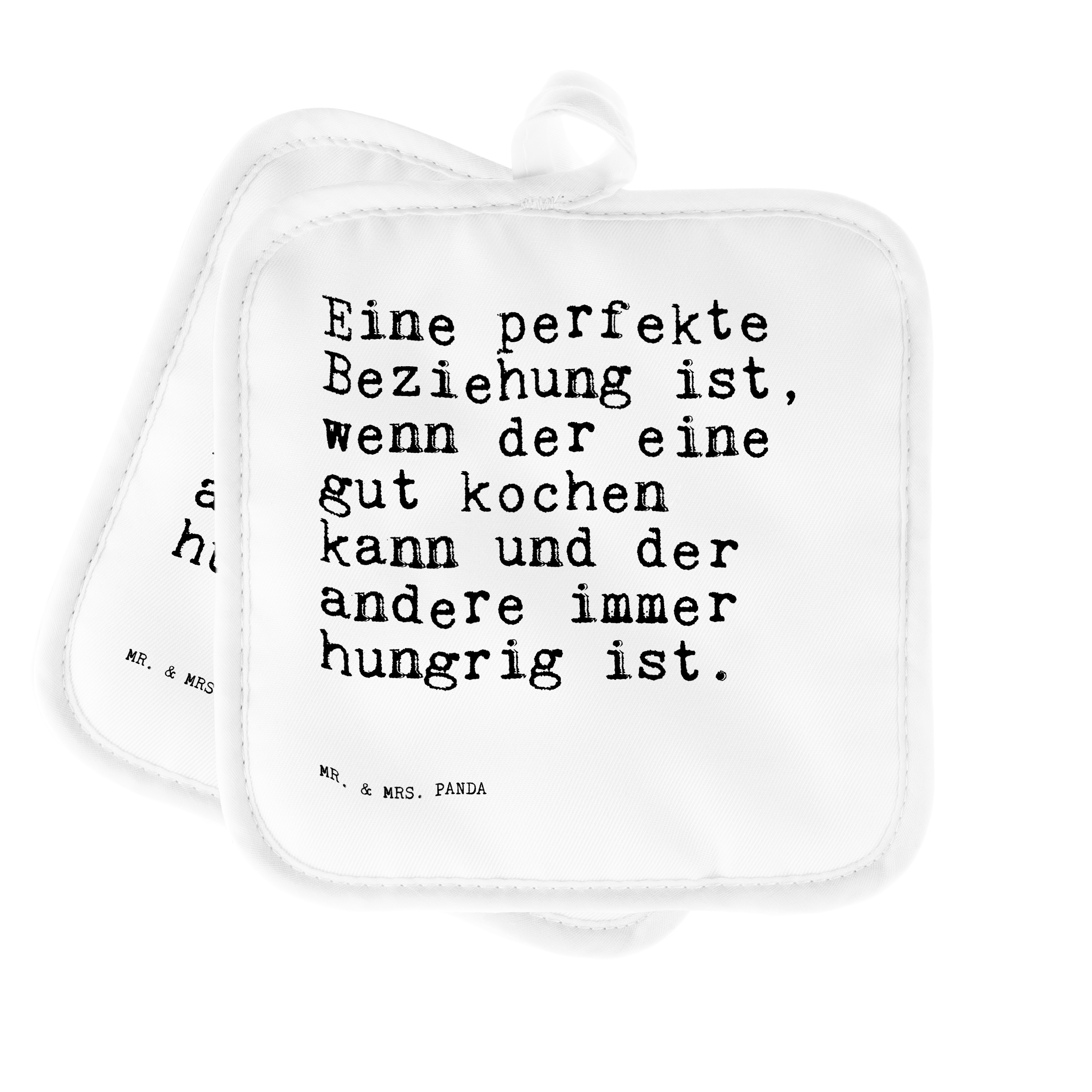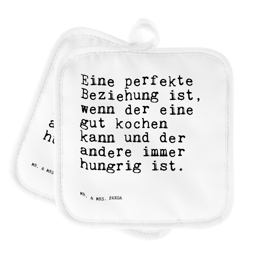 2er Set Topflappen Sprüche und Zitate Eine perfekte Beziehung ist, wenn der eine gut kochen kann und der andere immer hungrig ist.