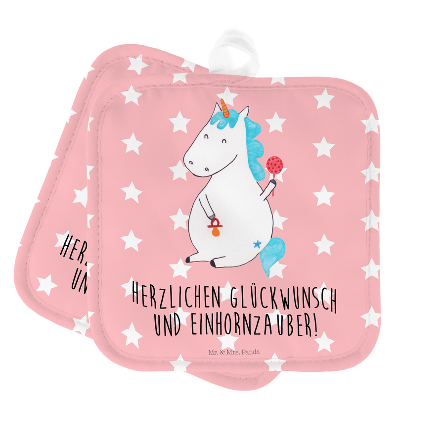 2er Set Topflappen Einhorn Baby - mit Spruch - Rot Pastell
