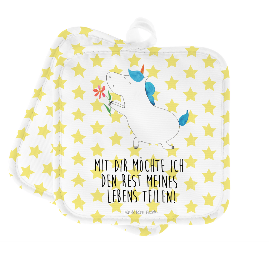 2er Set Topflappen Einhorn Blume - mit Spruch - Weiß