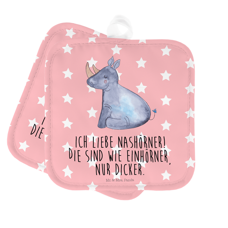 2er Set Topflappen Einhorn Nashorn - mit Spruch - Rot Pastell