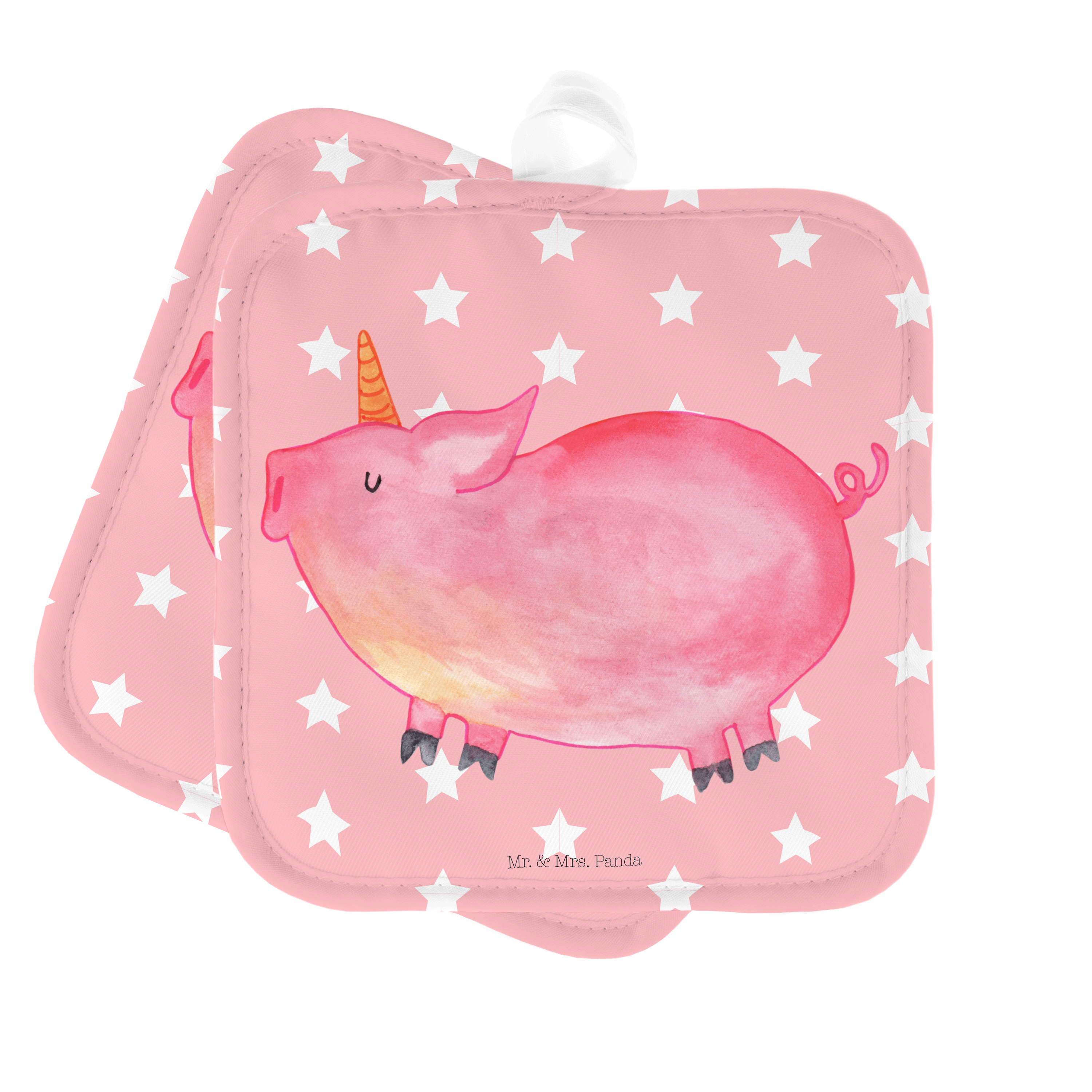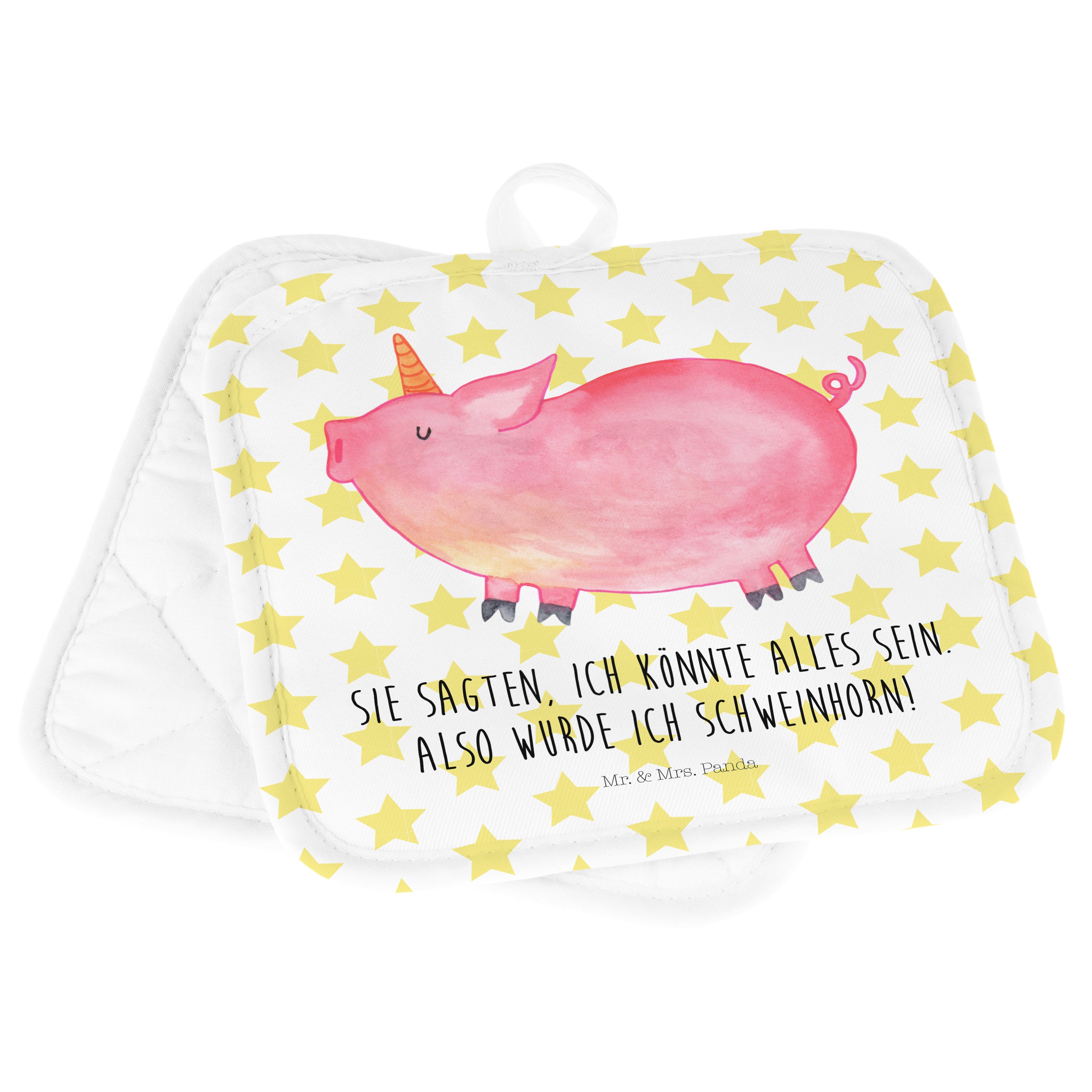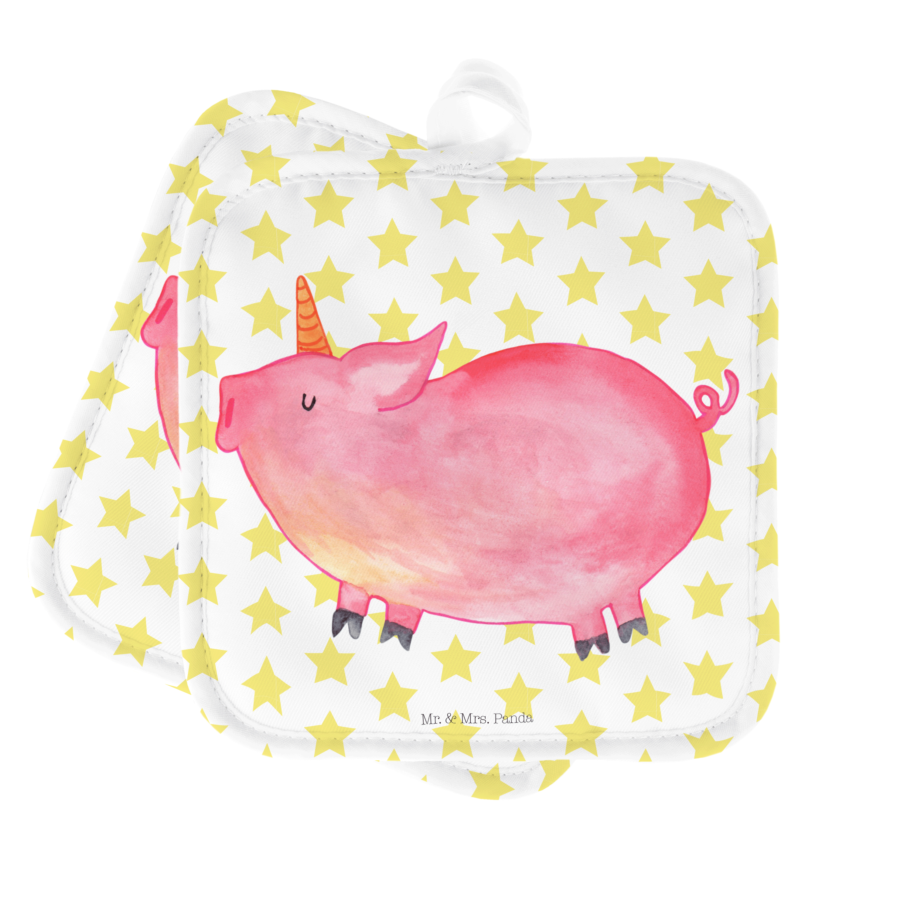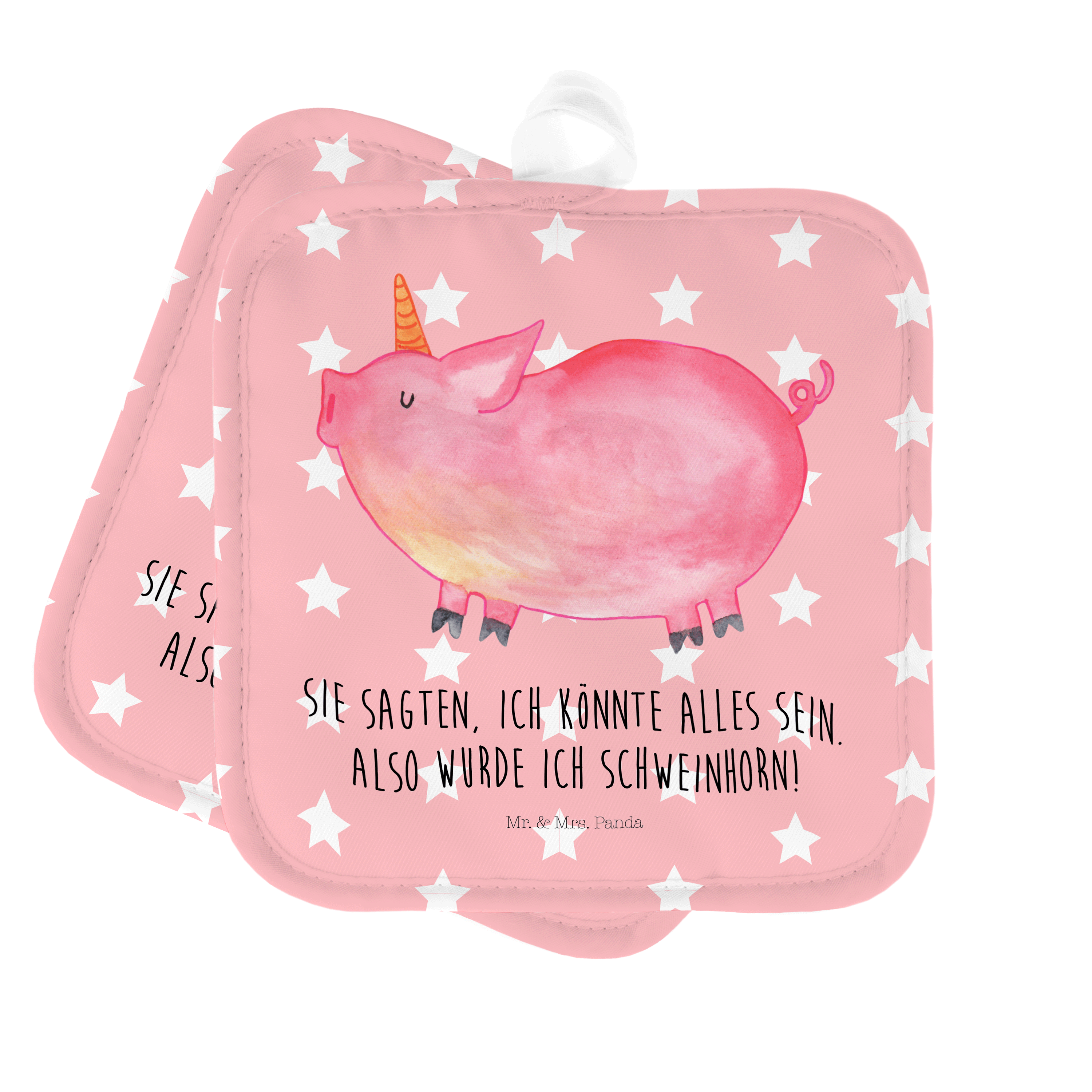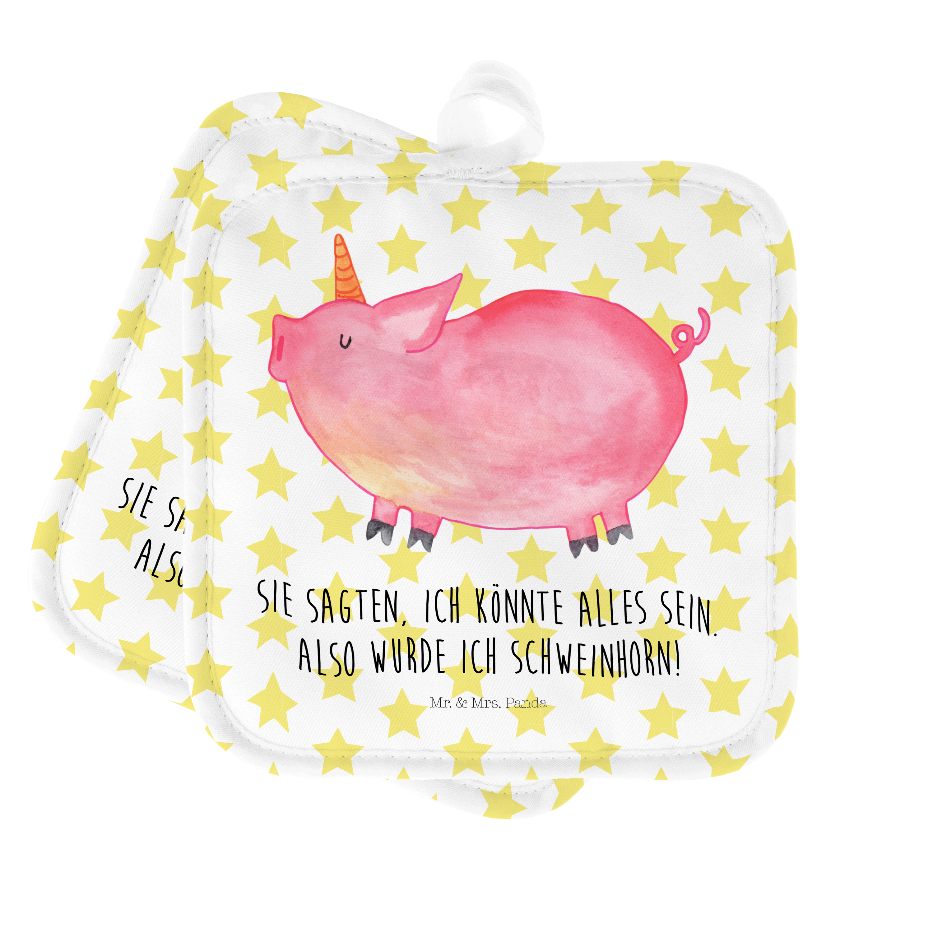 2er Set Topflappen Einhorn Schweinhorn - mit Spruch - Weiß