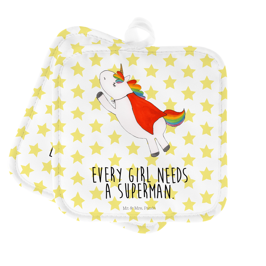 2er Set Topflappen Einhorn Super - mit Spruch - Weiß