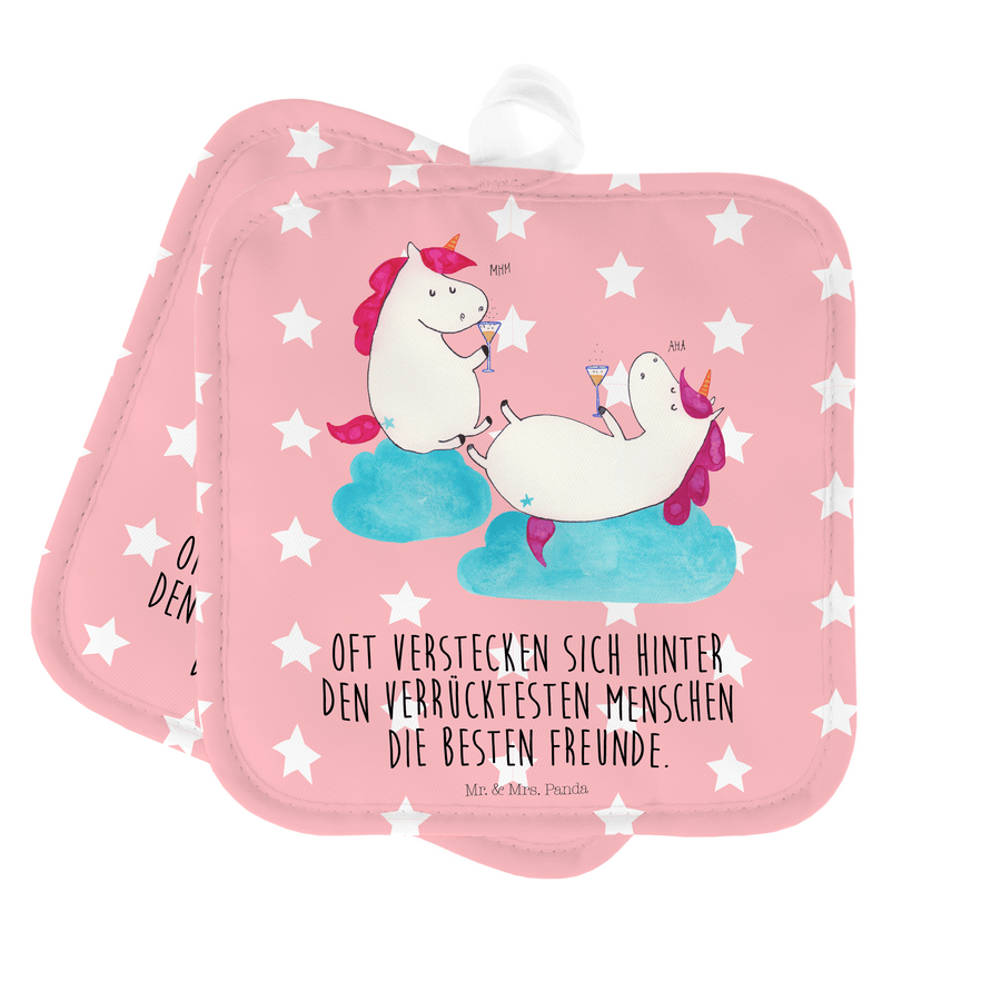 2er Set Topflappen Einhörner Sekt - mit Spruch - Rot Pastell