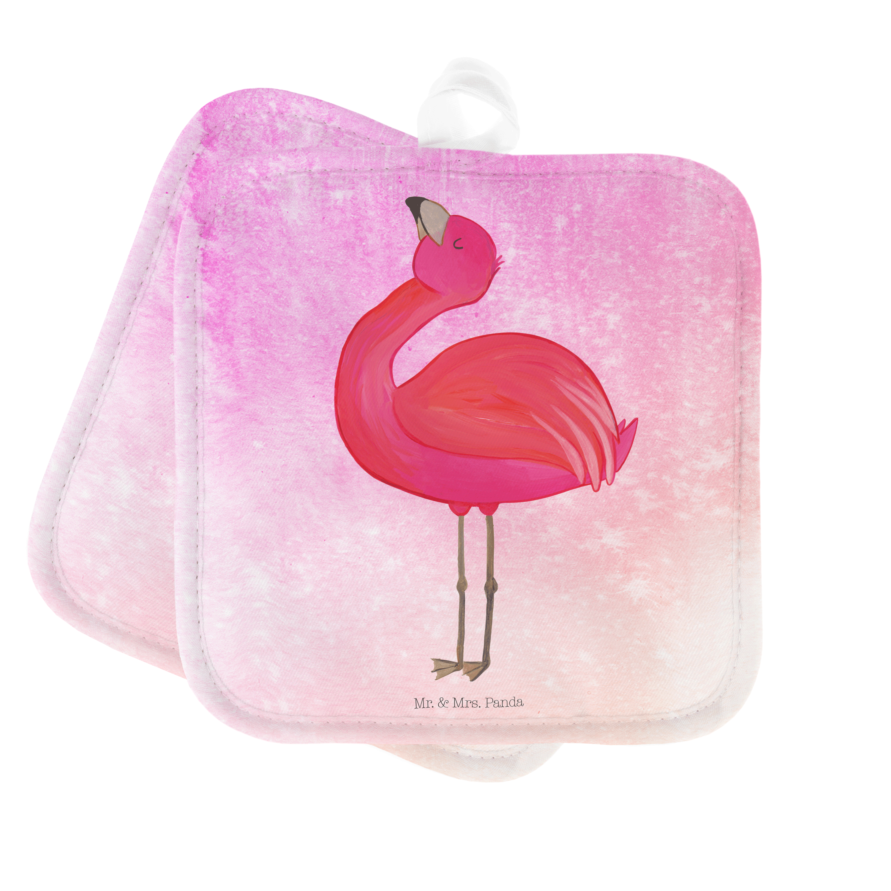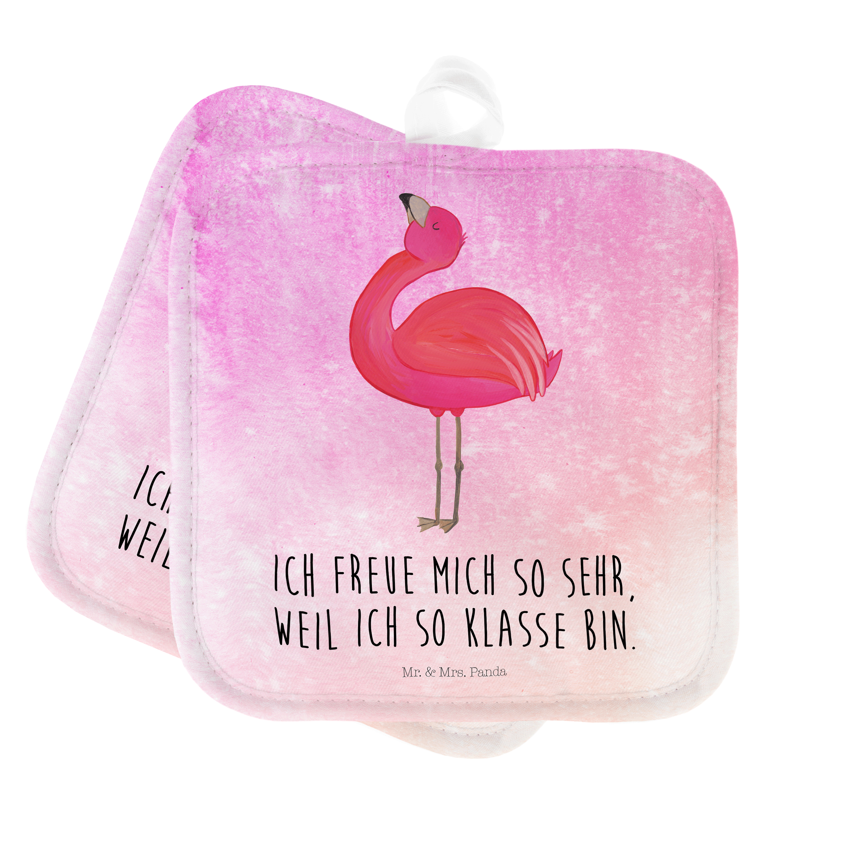 2er Set Topflappen Flamingo stolz - mit Spruch - Aquarell Pink