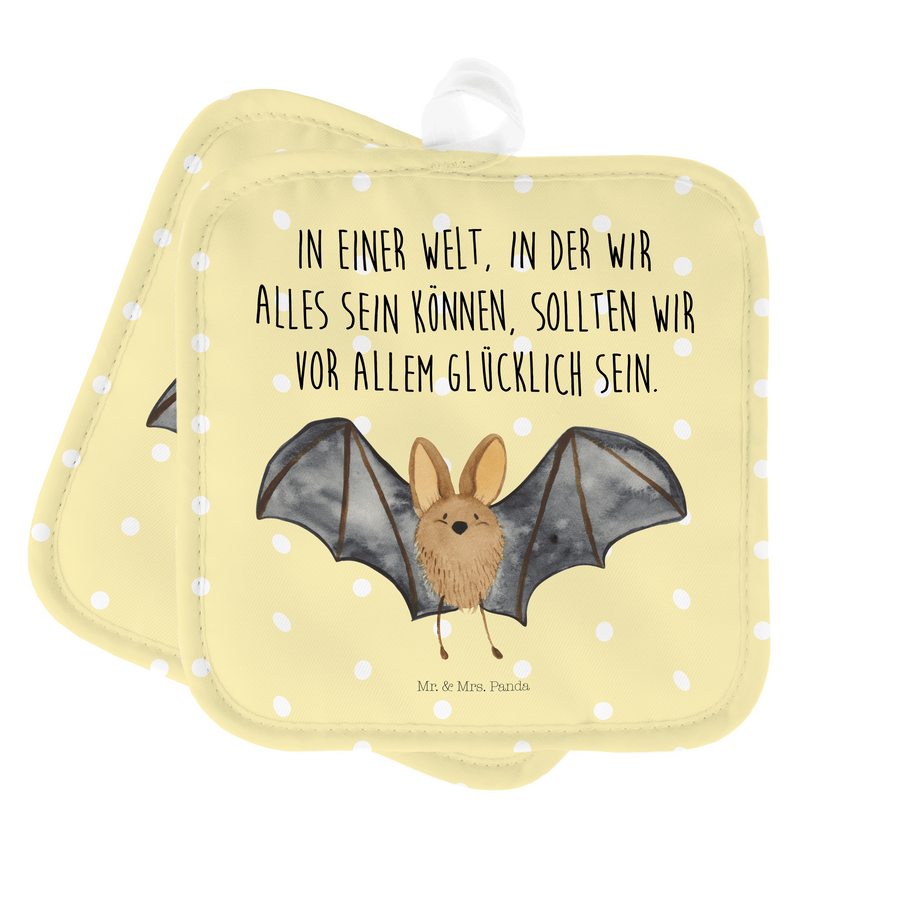 2er Set Topflappen Fledermaus Flügel - mit Spruch - Gelb Pastell