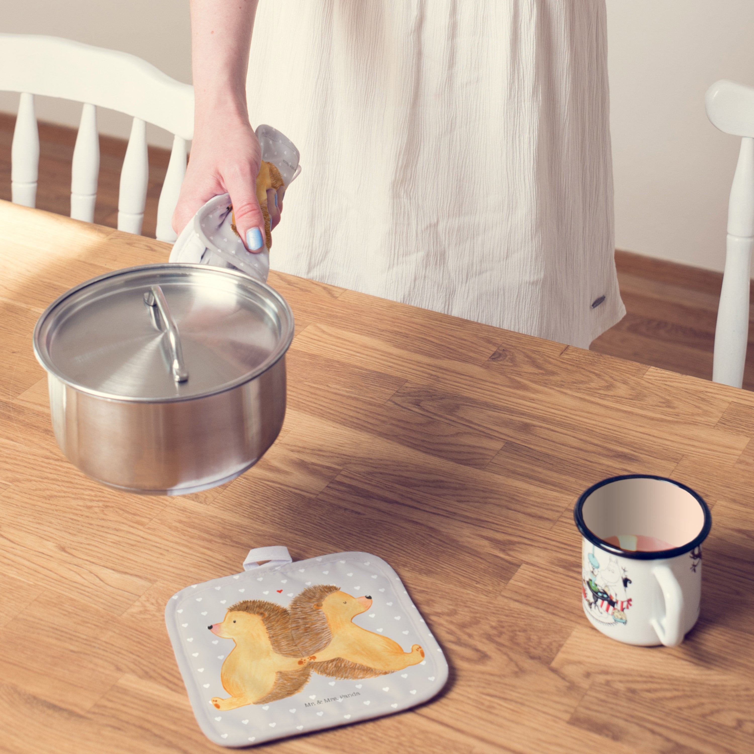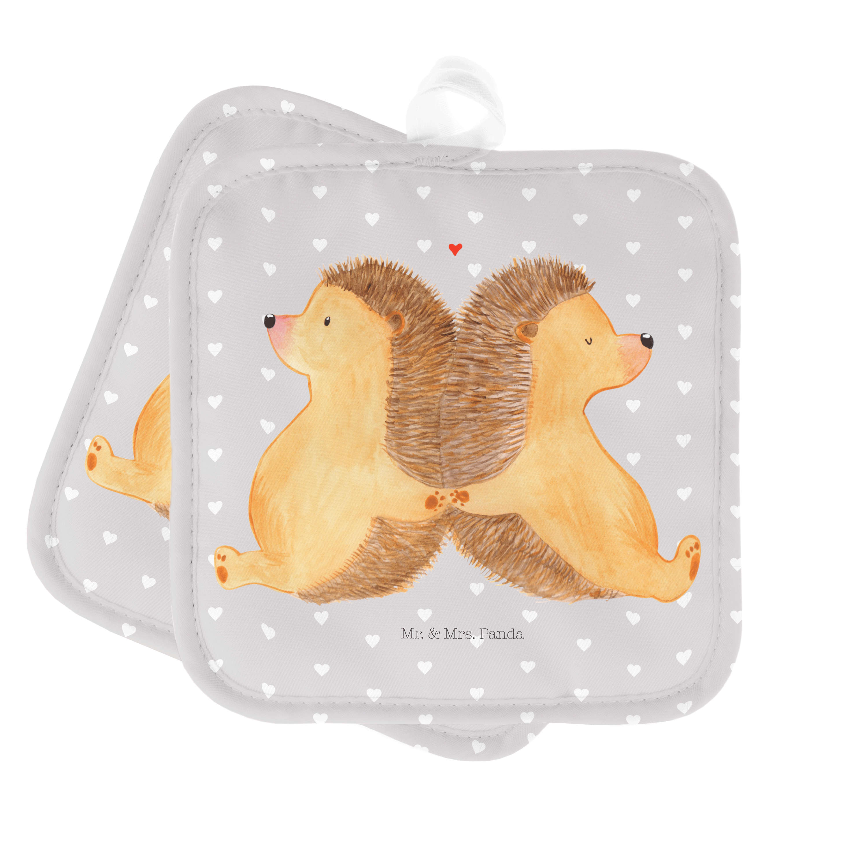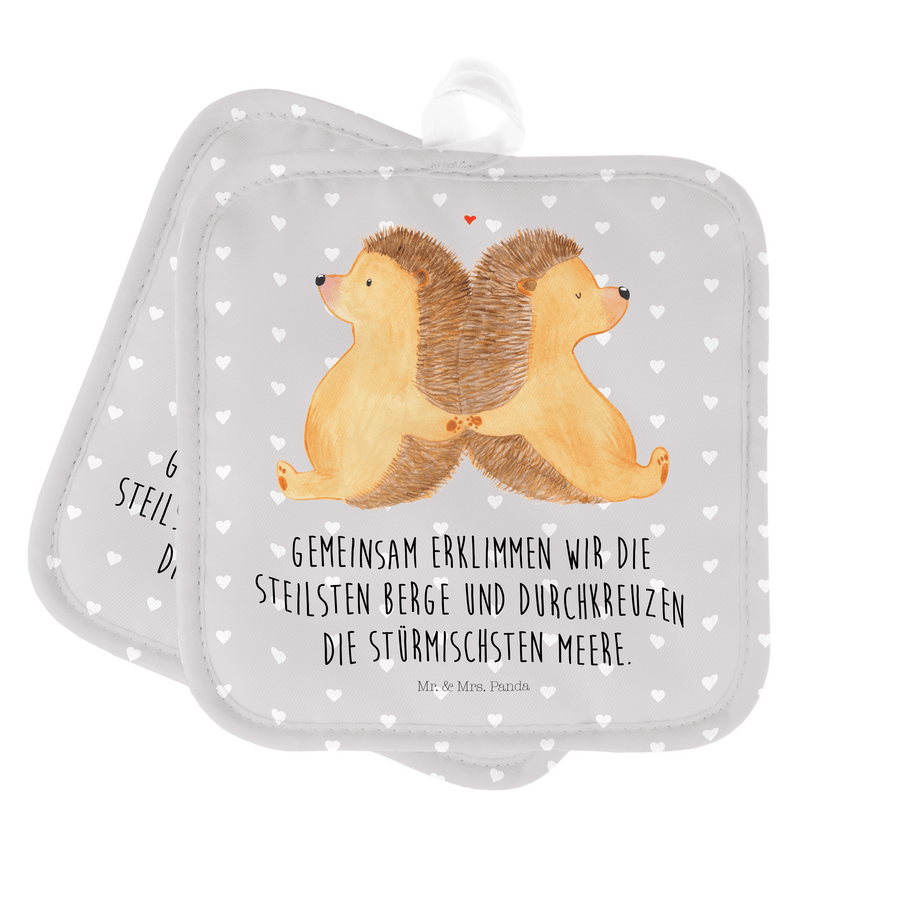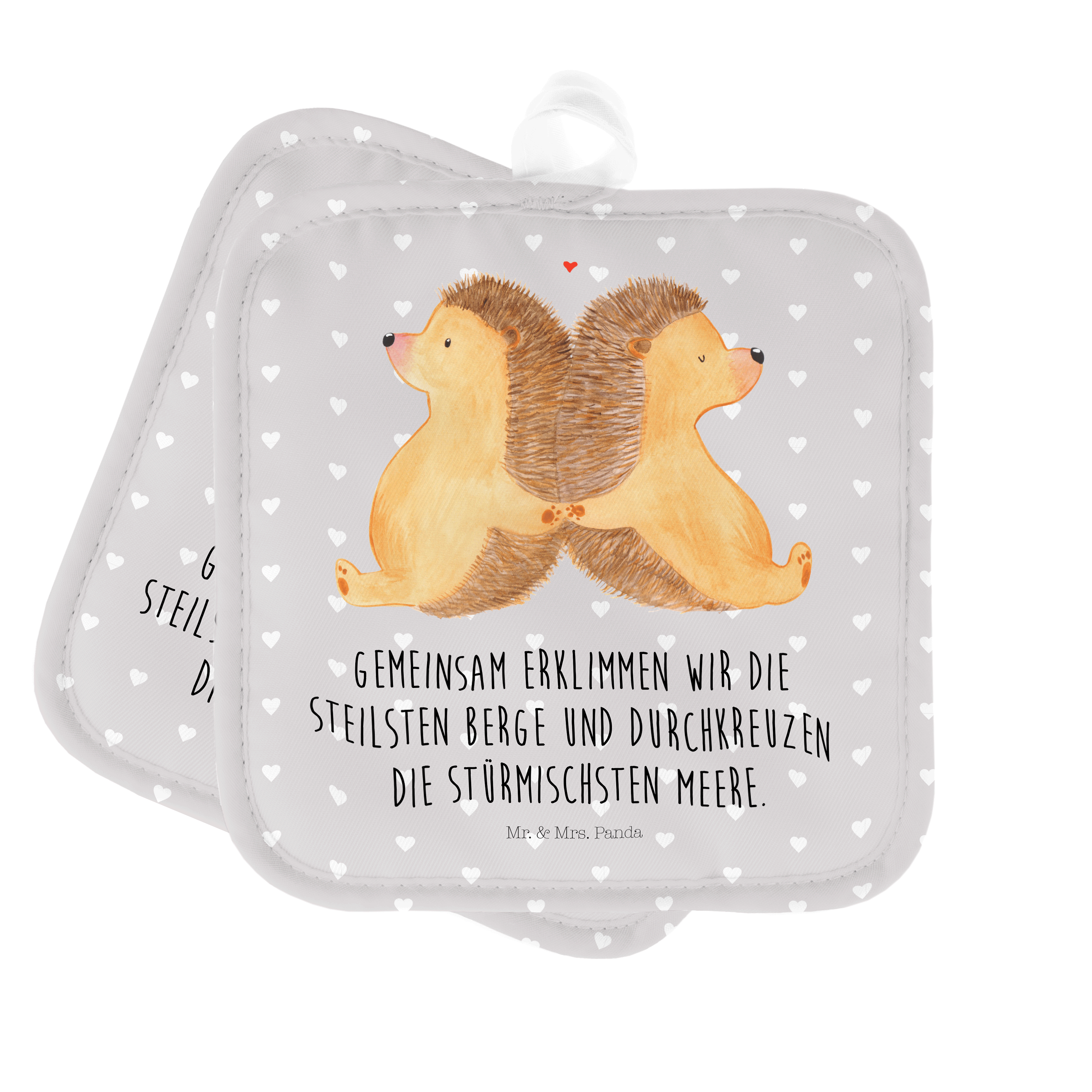 2er Set Topflappen Igel händchenhaltend - mit Spruch - Grau Pastell