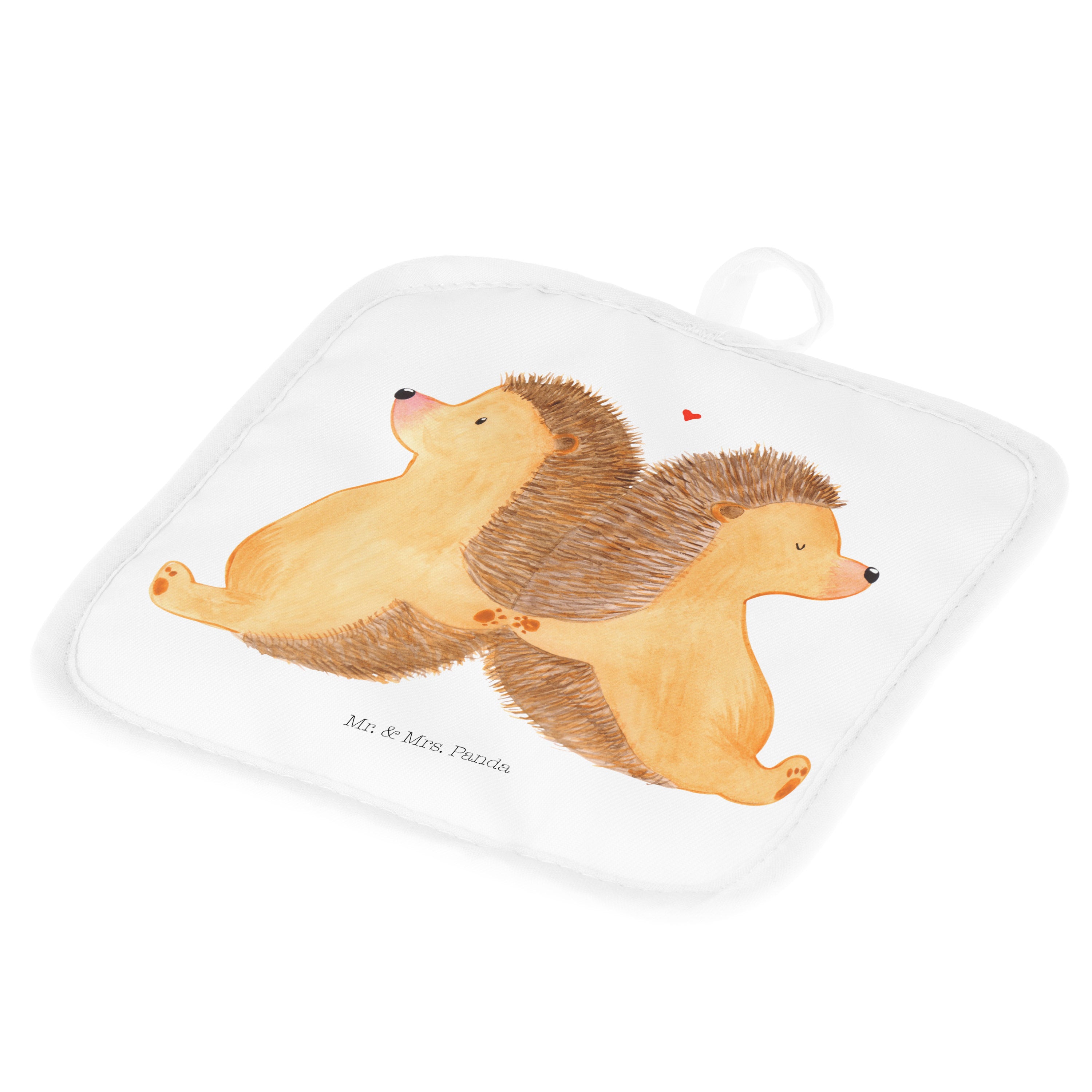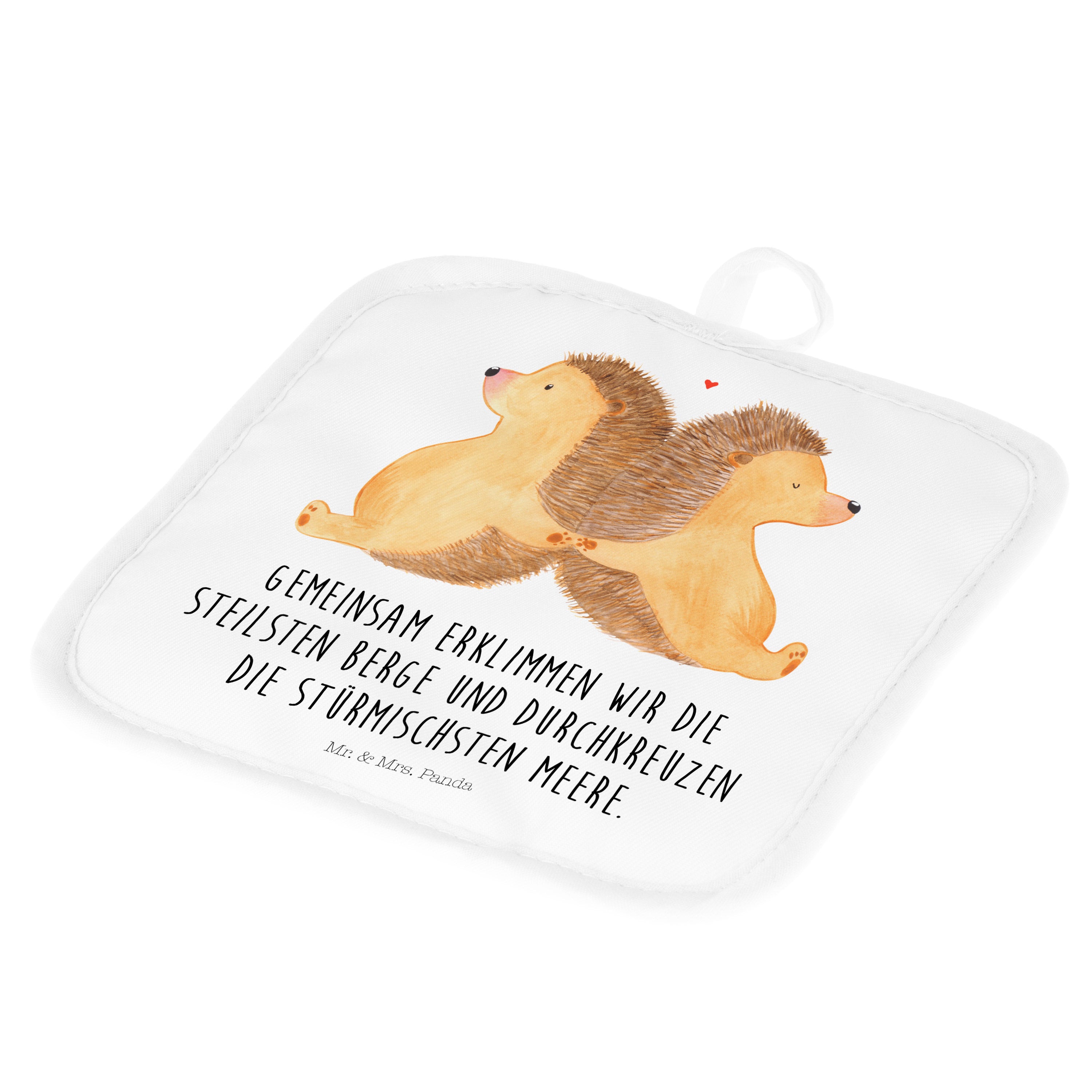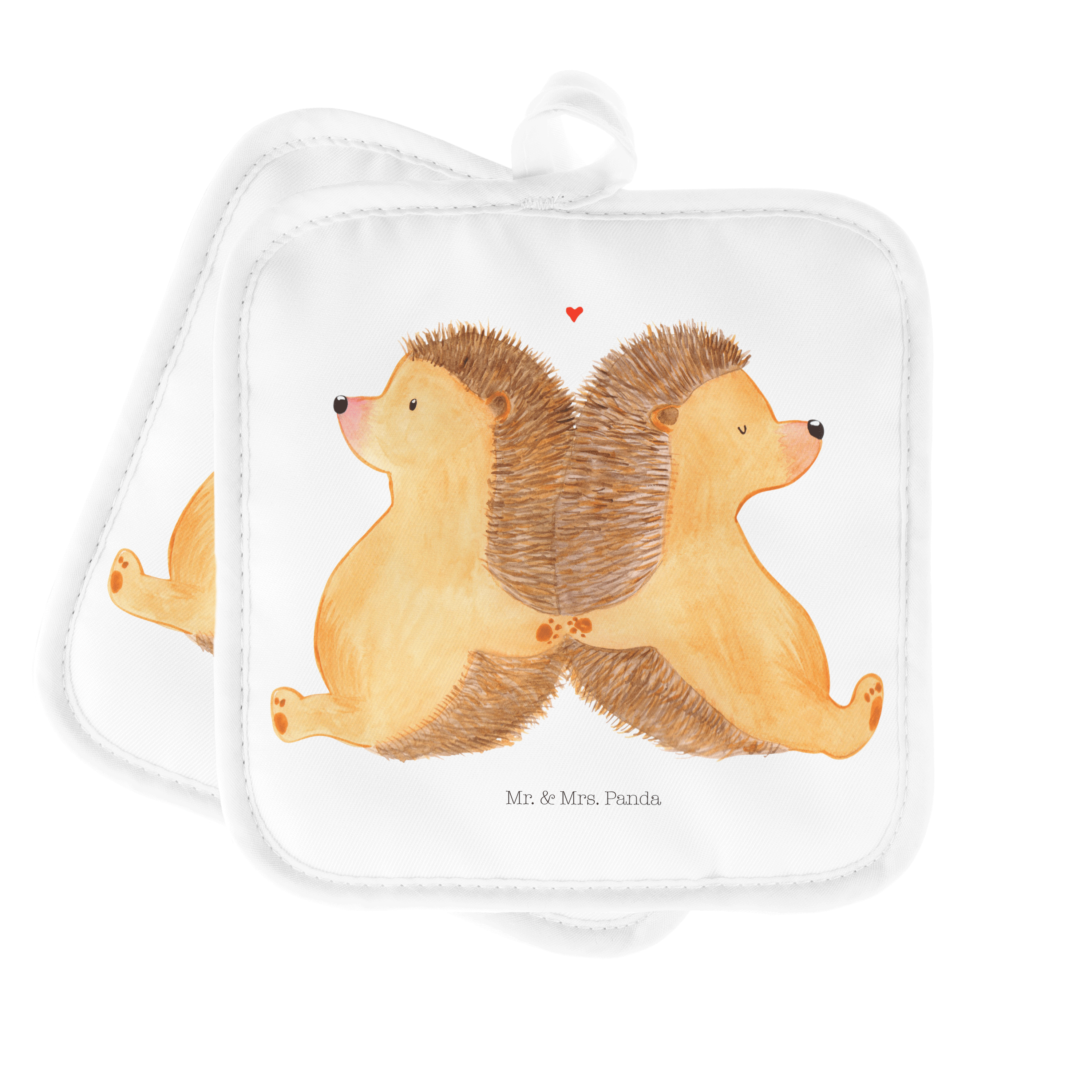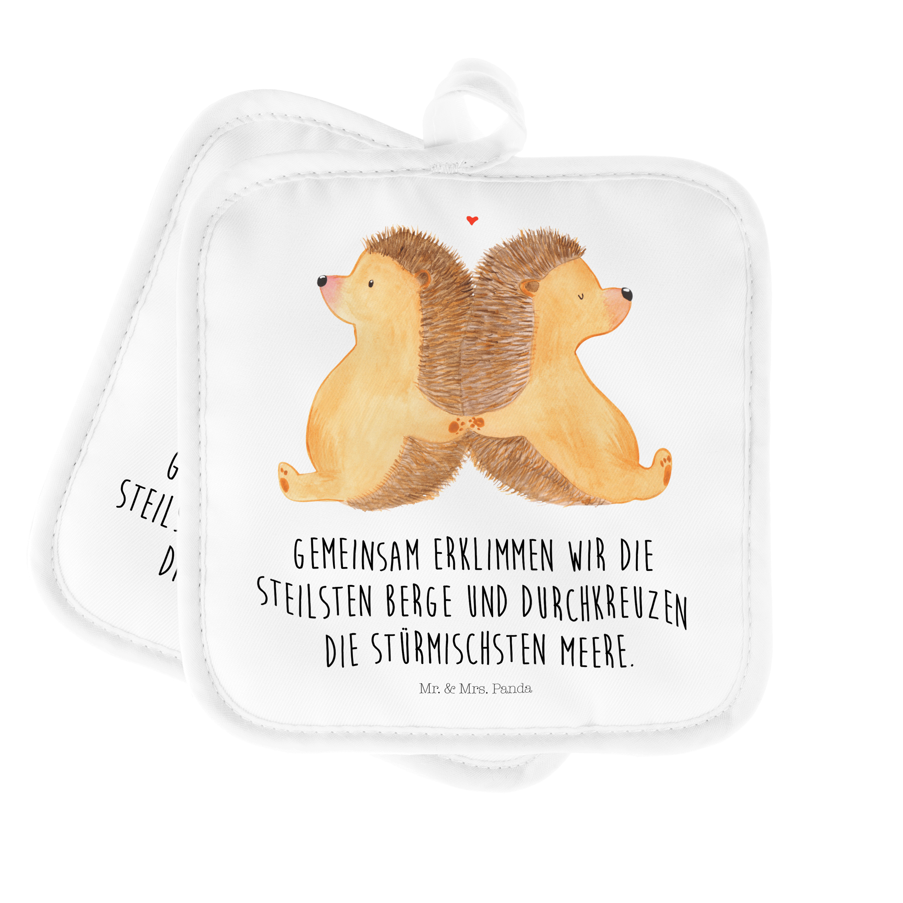 2er Set Topflappen Igel händchenhaltend - mit Spruch - Grau Pastell