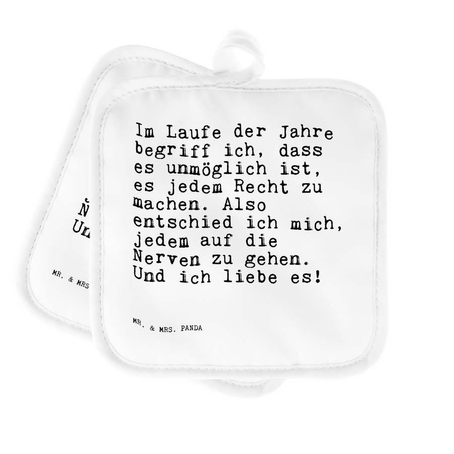 2er Set Topflappen Sprüche und Zitate Im Laufe der Jahre begriff ich, dass es unmöglich ist, es jedem Recht zu machen. Also entschied ich mich, jedem auf die Nerven zu gehen. Und ich liebe es!