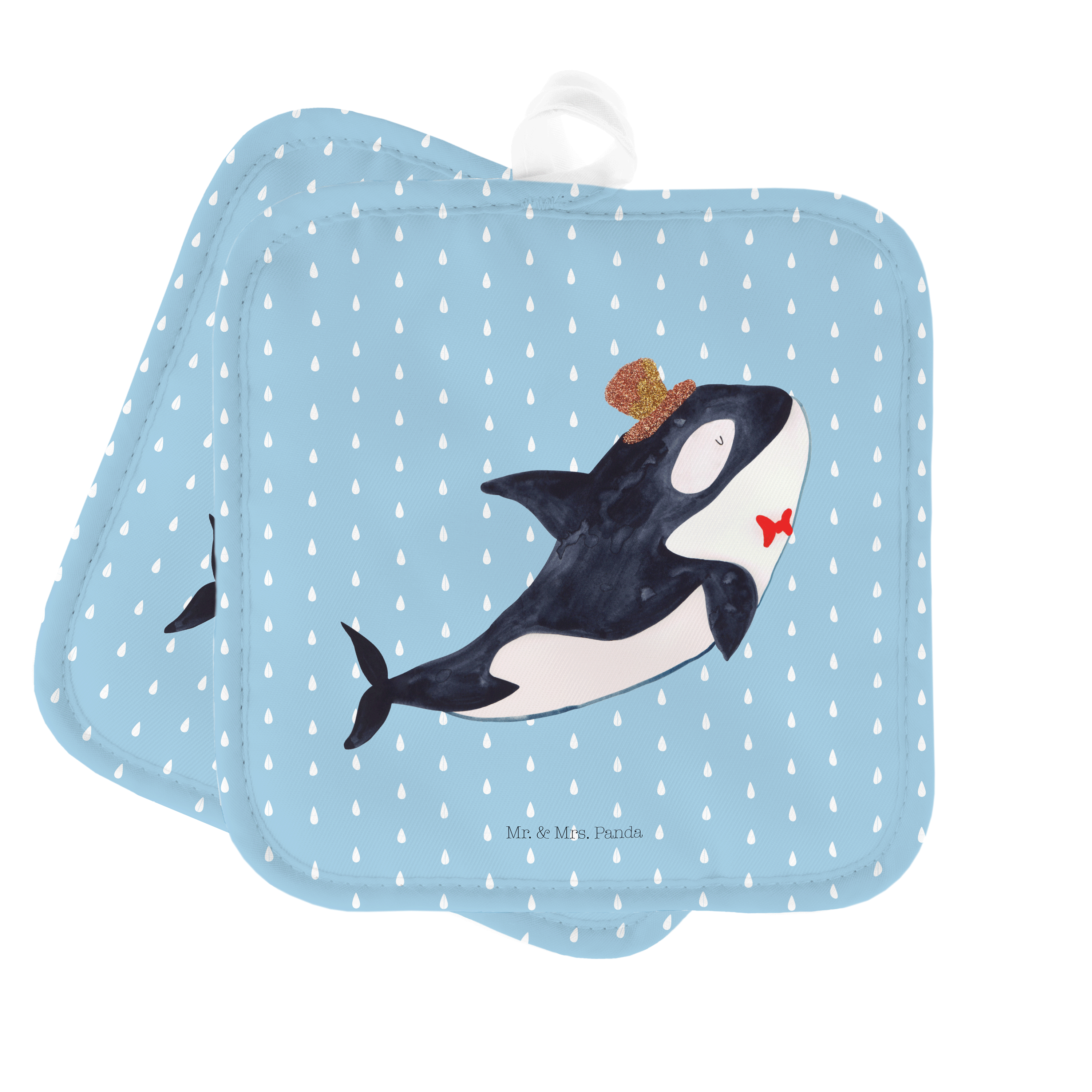 2er Set Topflappen Orca Zylinder - mit Spruch - Blau Pastell