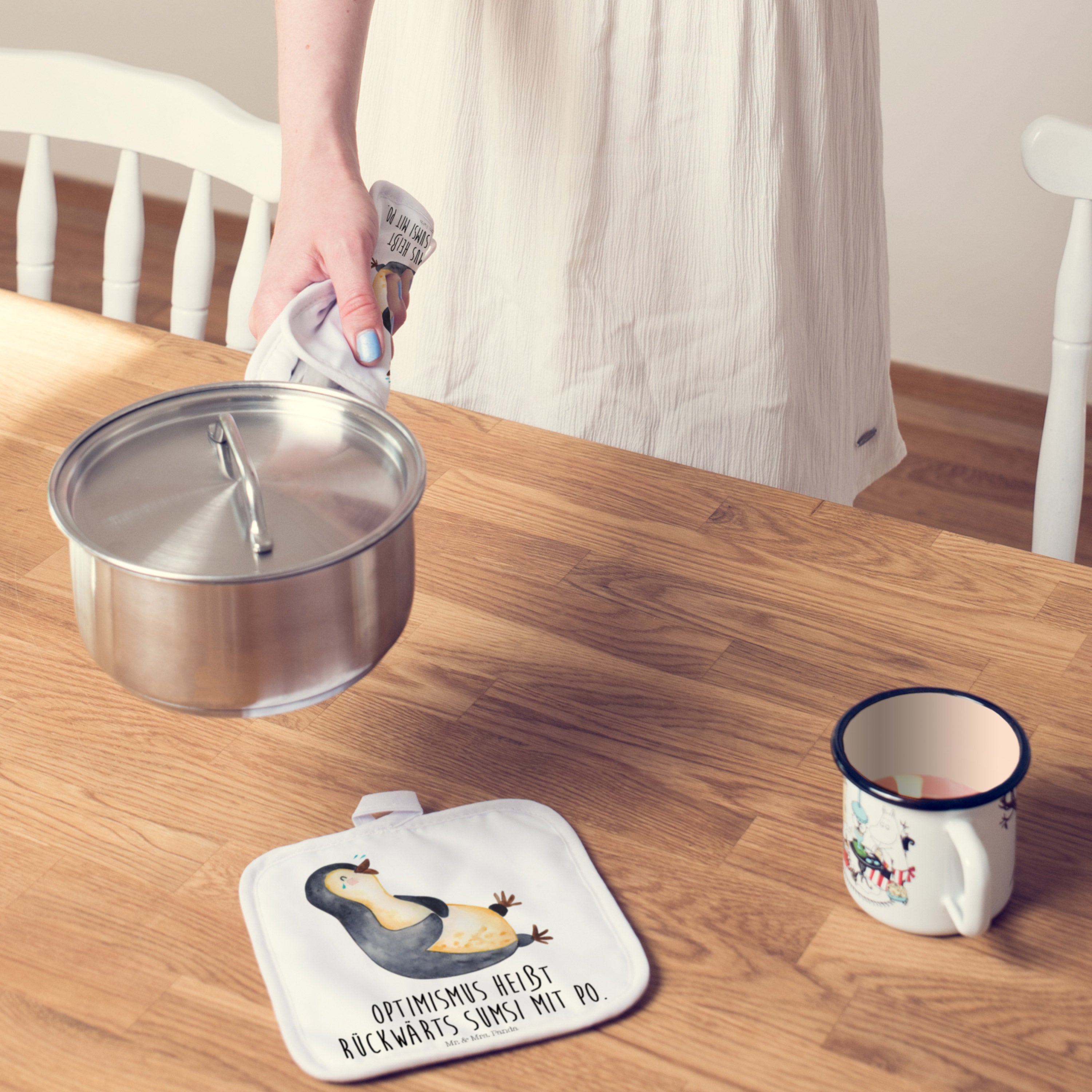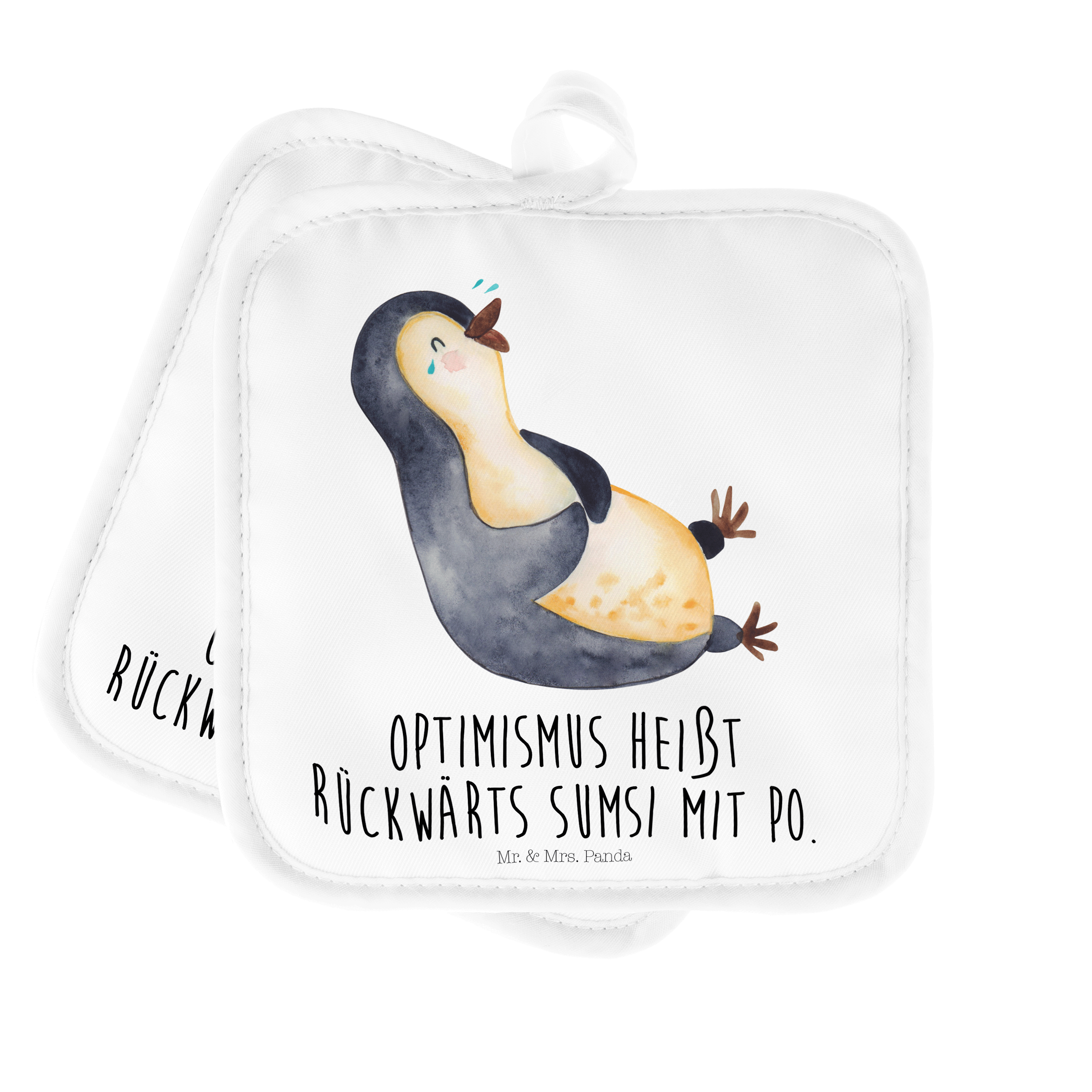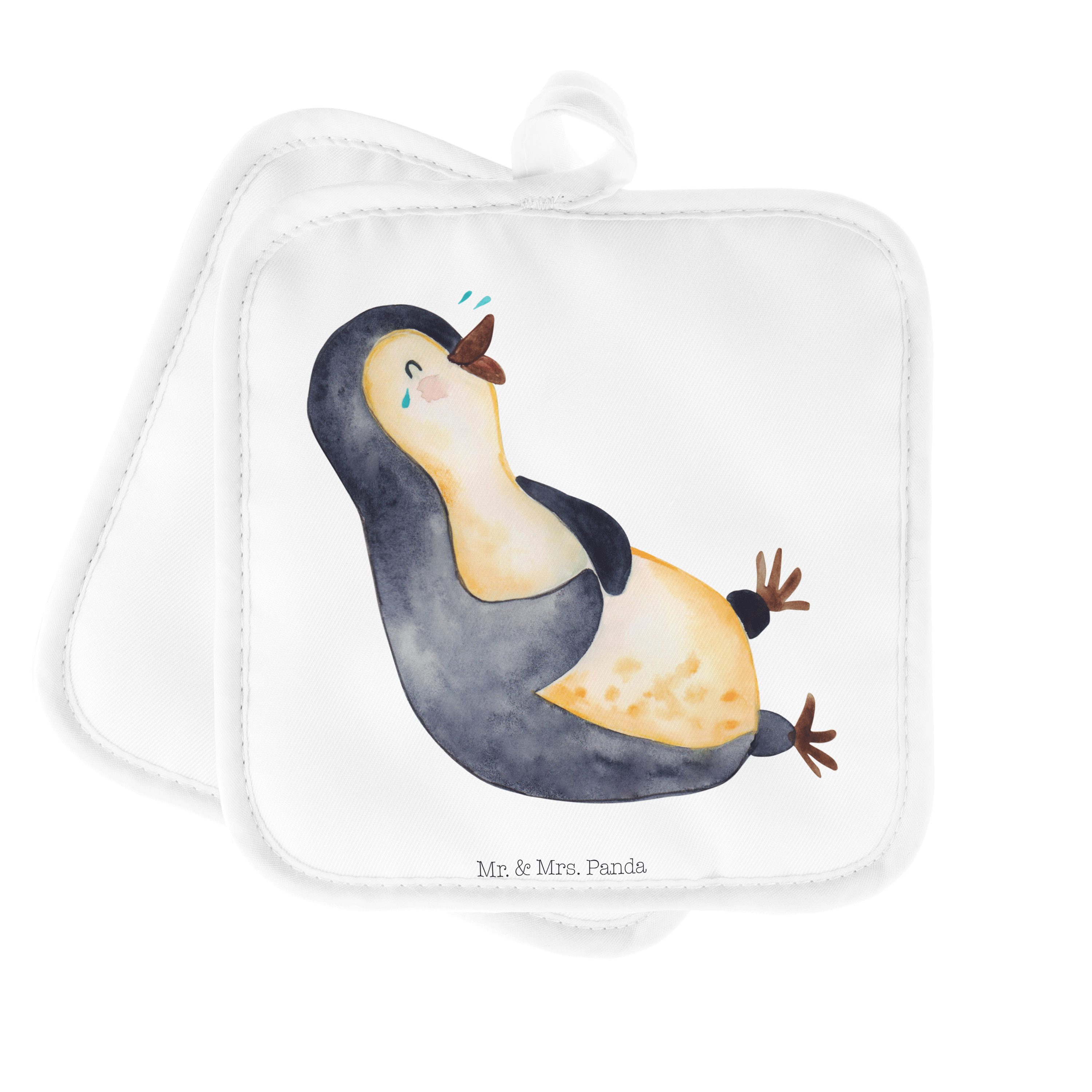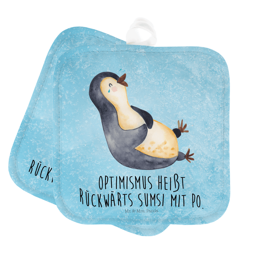 2er Set Topflappen Pinguin lachend - mit Spruch - Eisblau