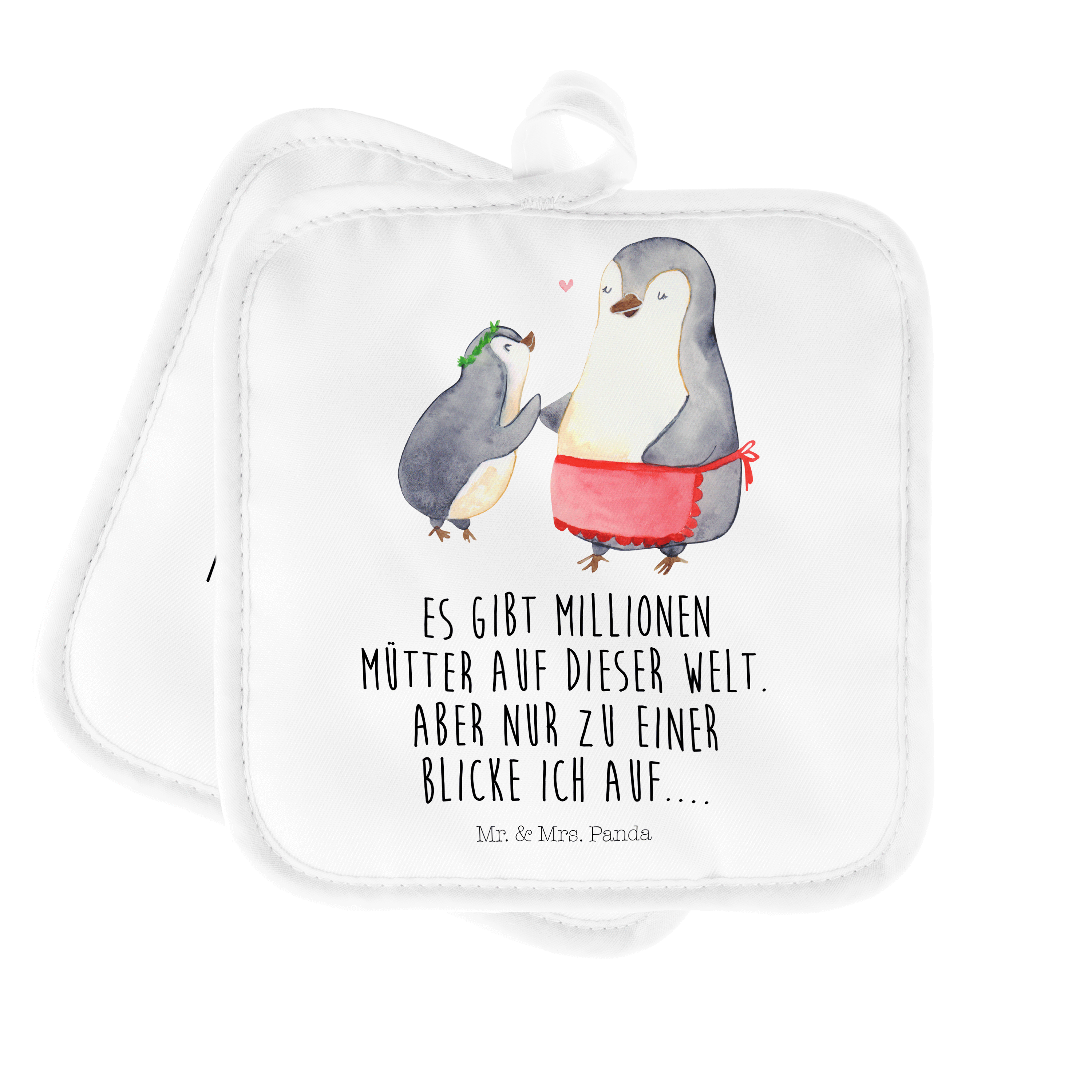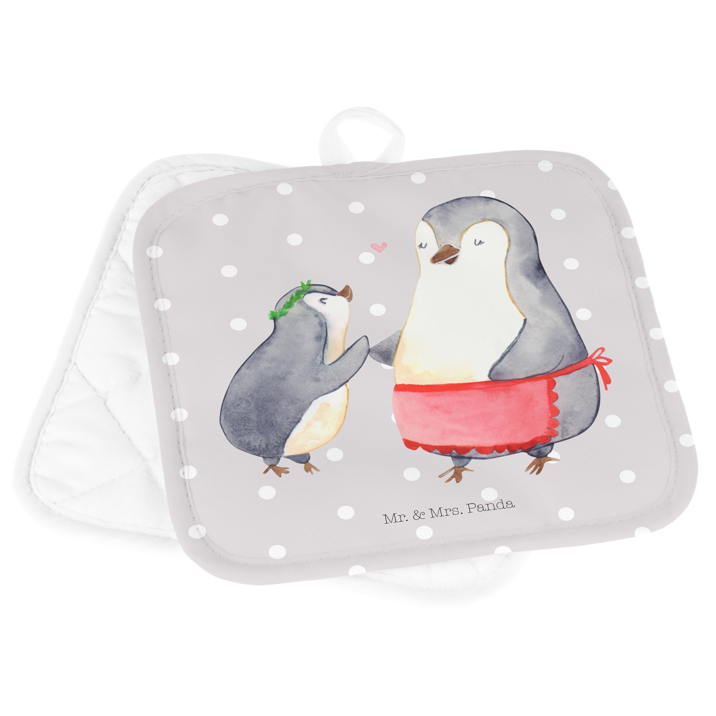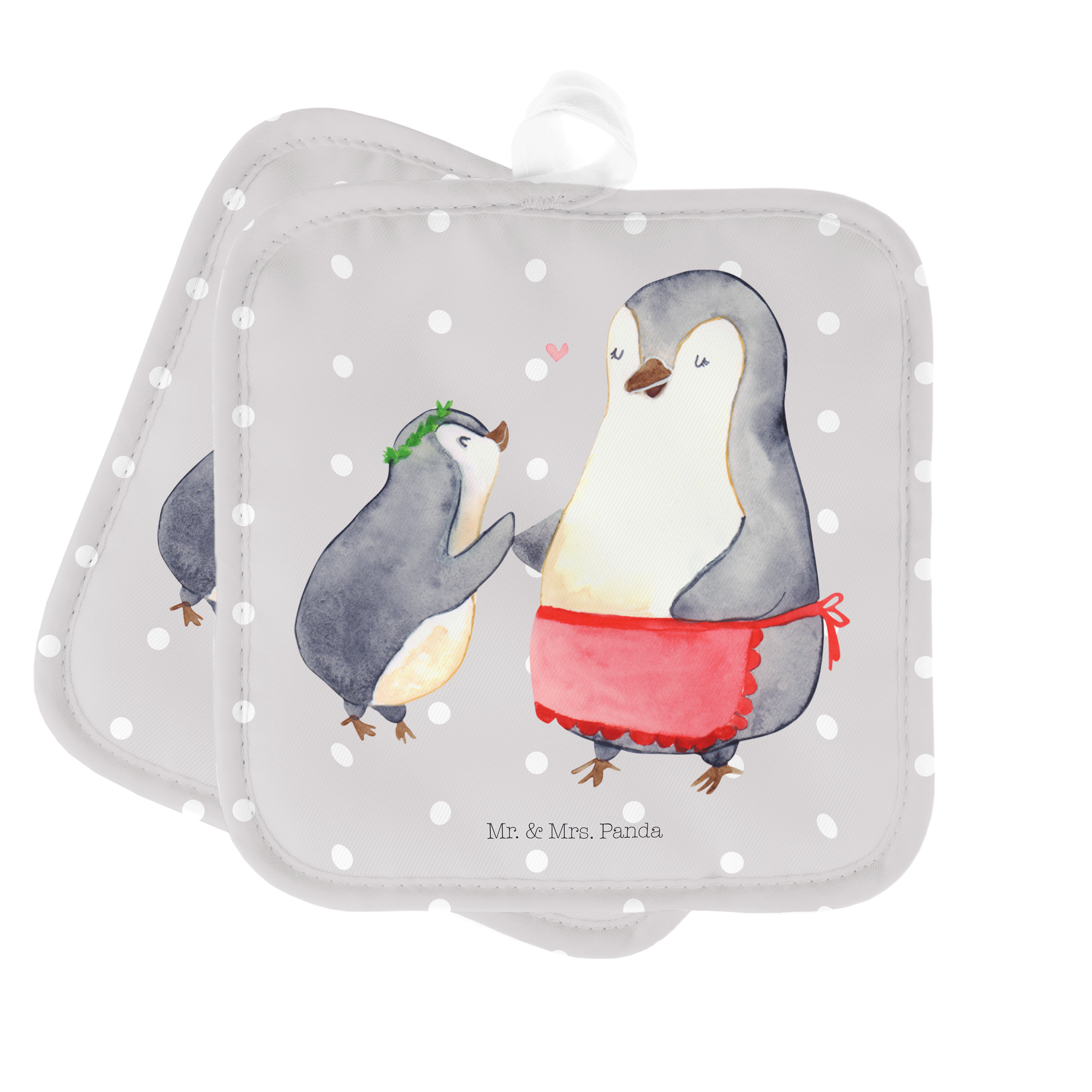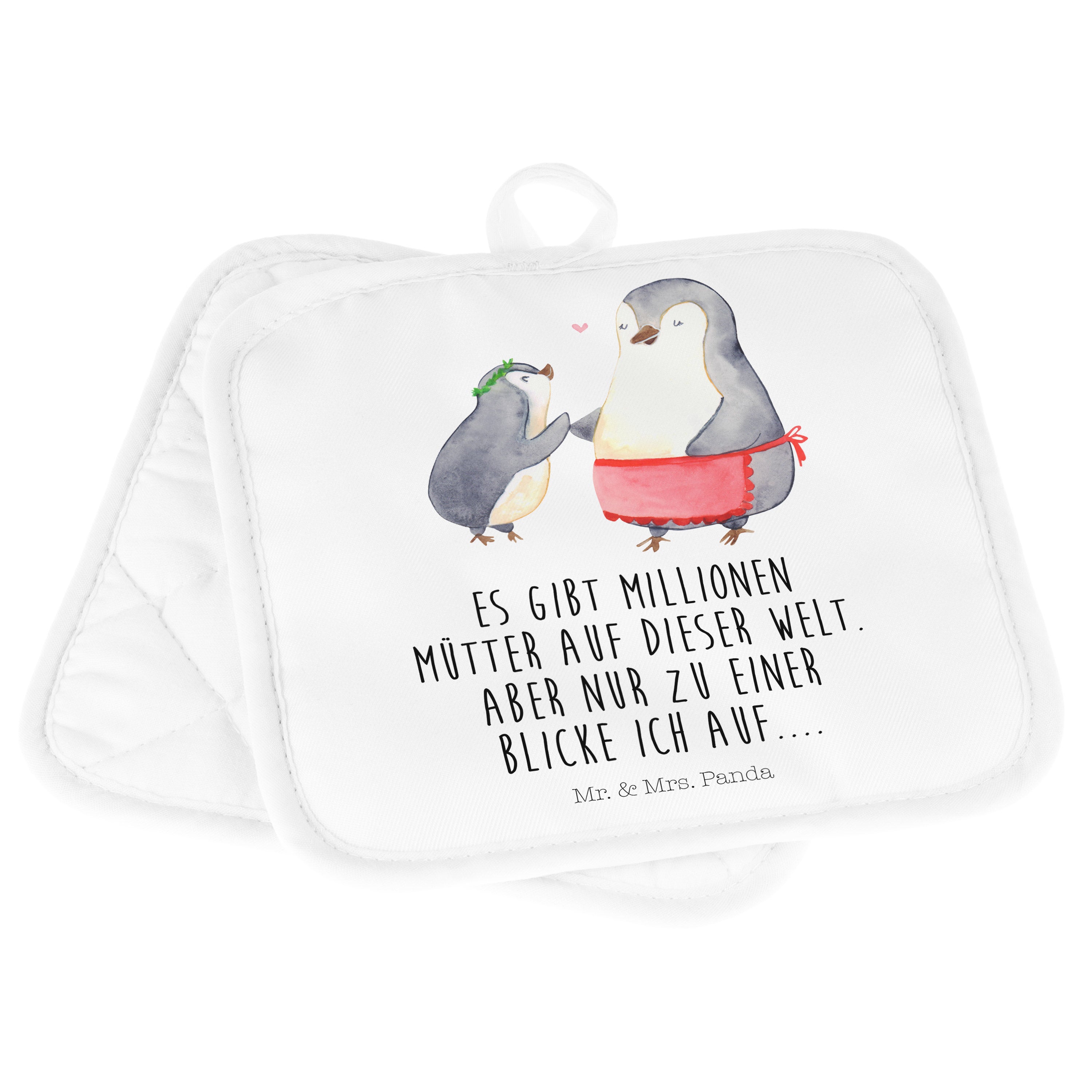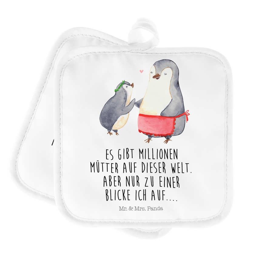 2er Set Topflappen Pinguin mit Kind - mit Spruch - Weiß