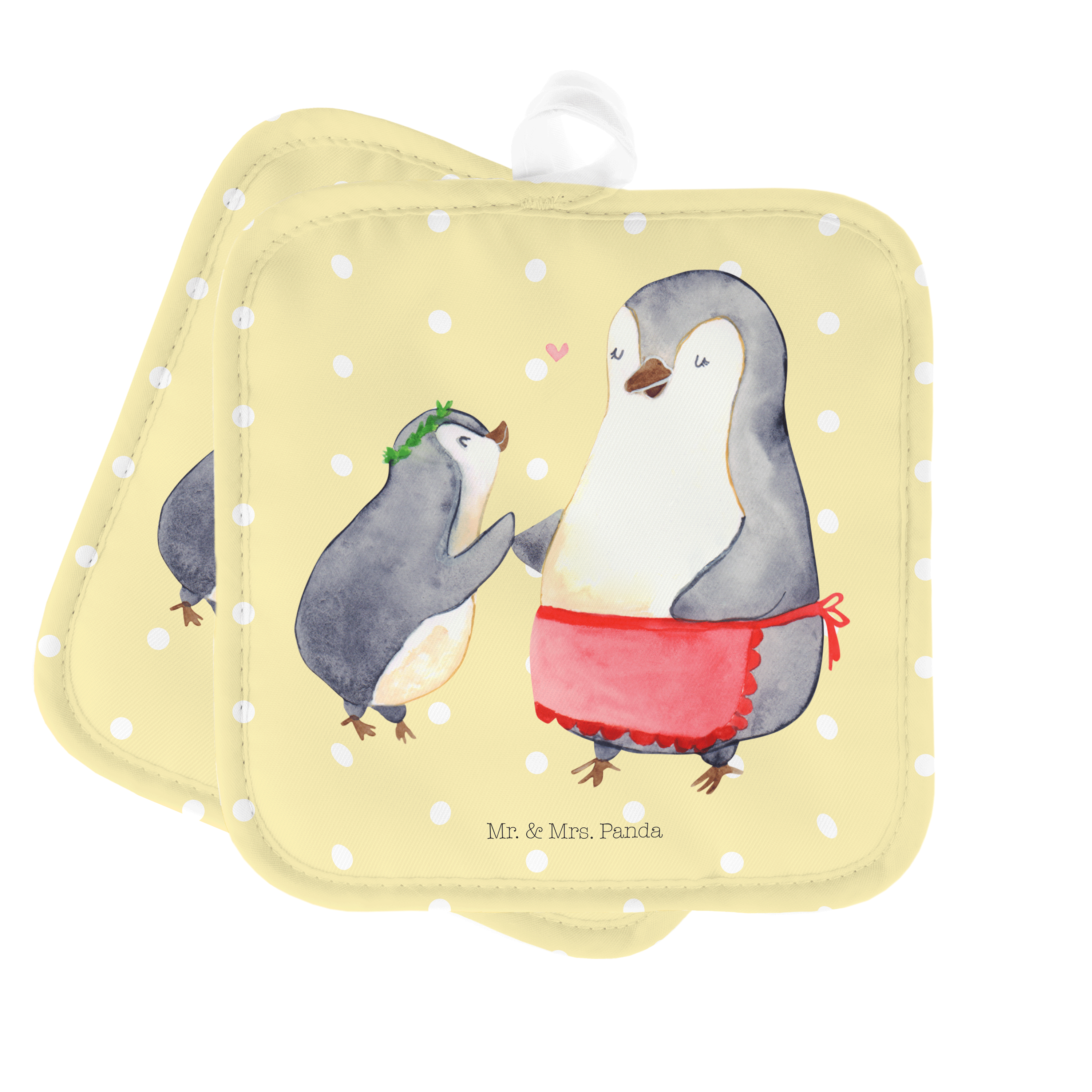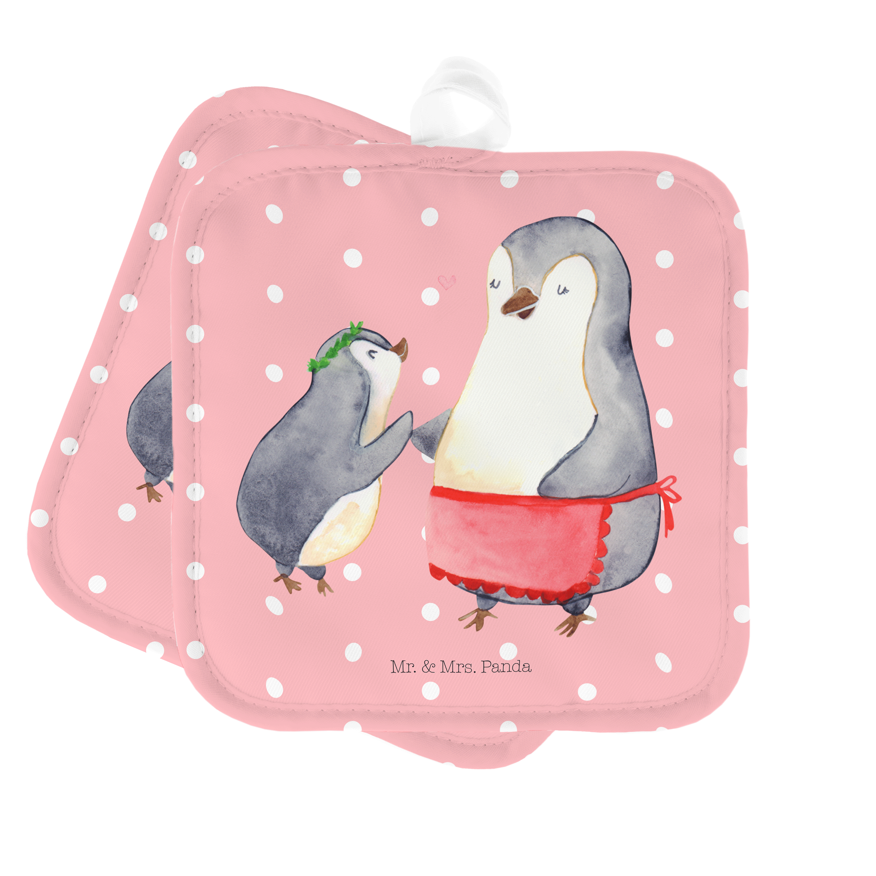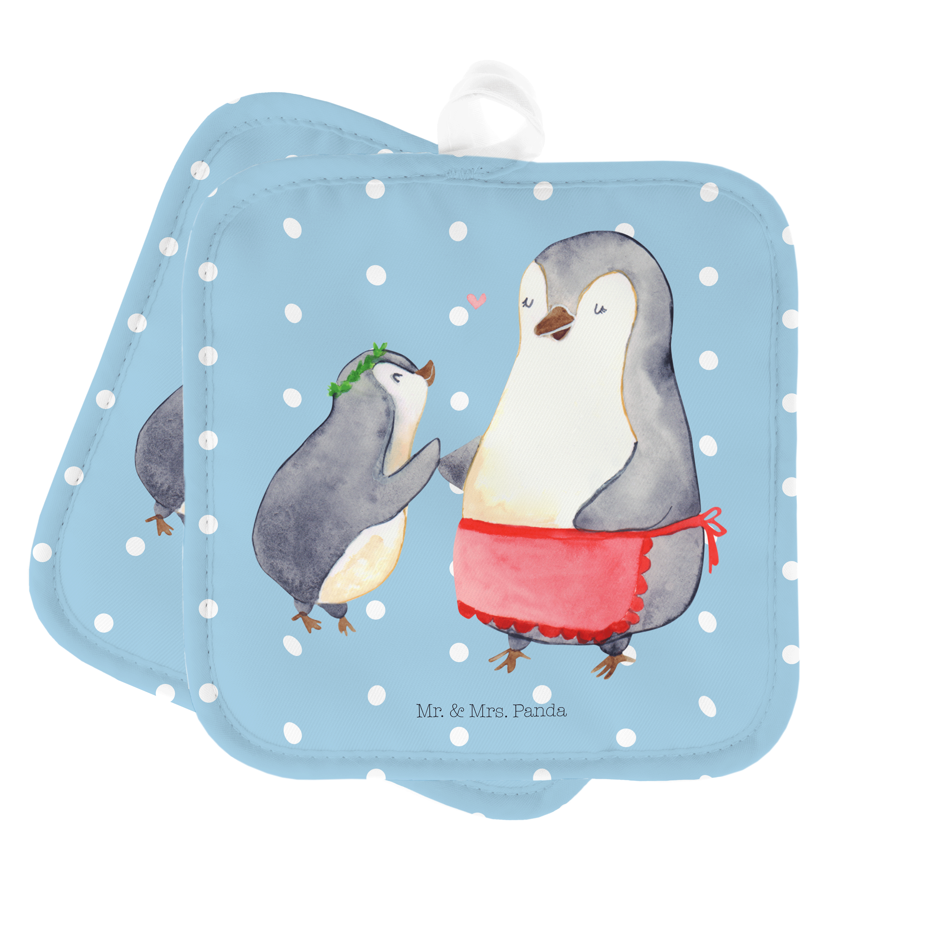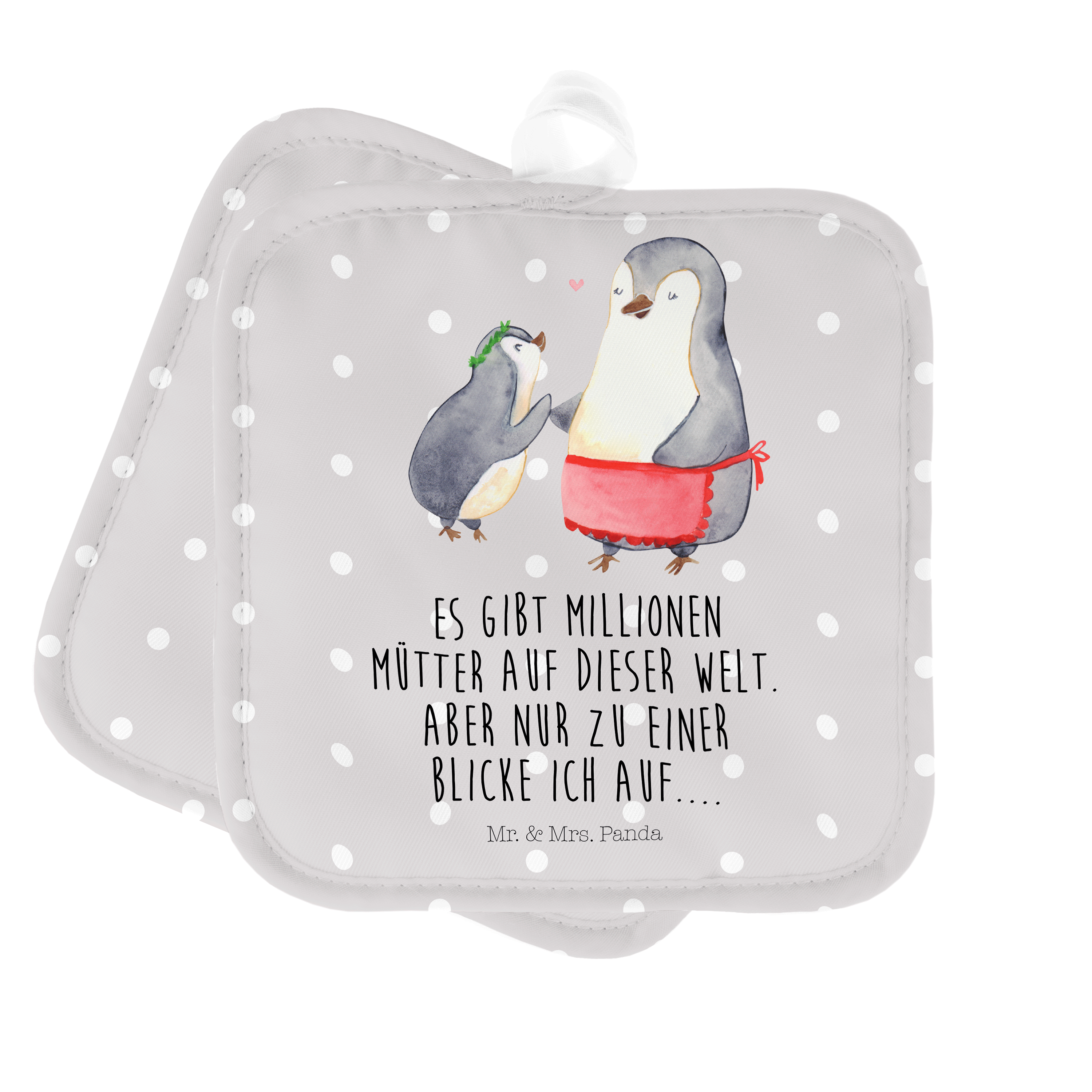 2er Set Topflappen Pinguin mit Kind - mit Spruch - Weiß
