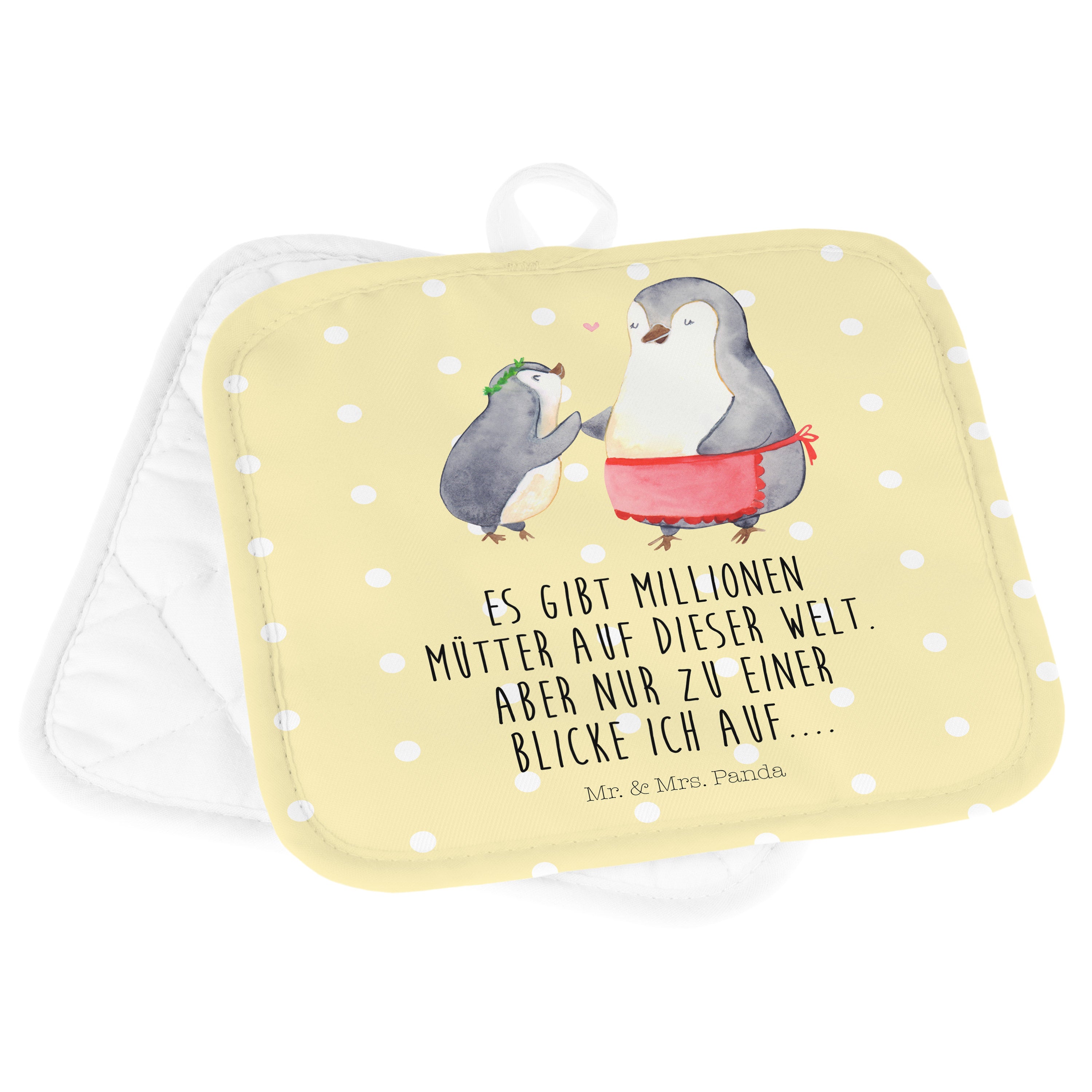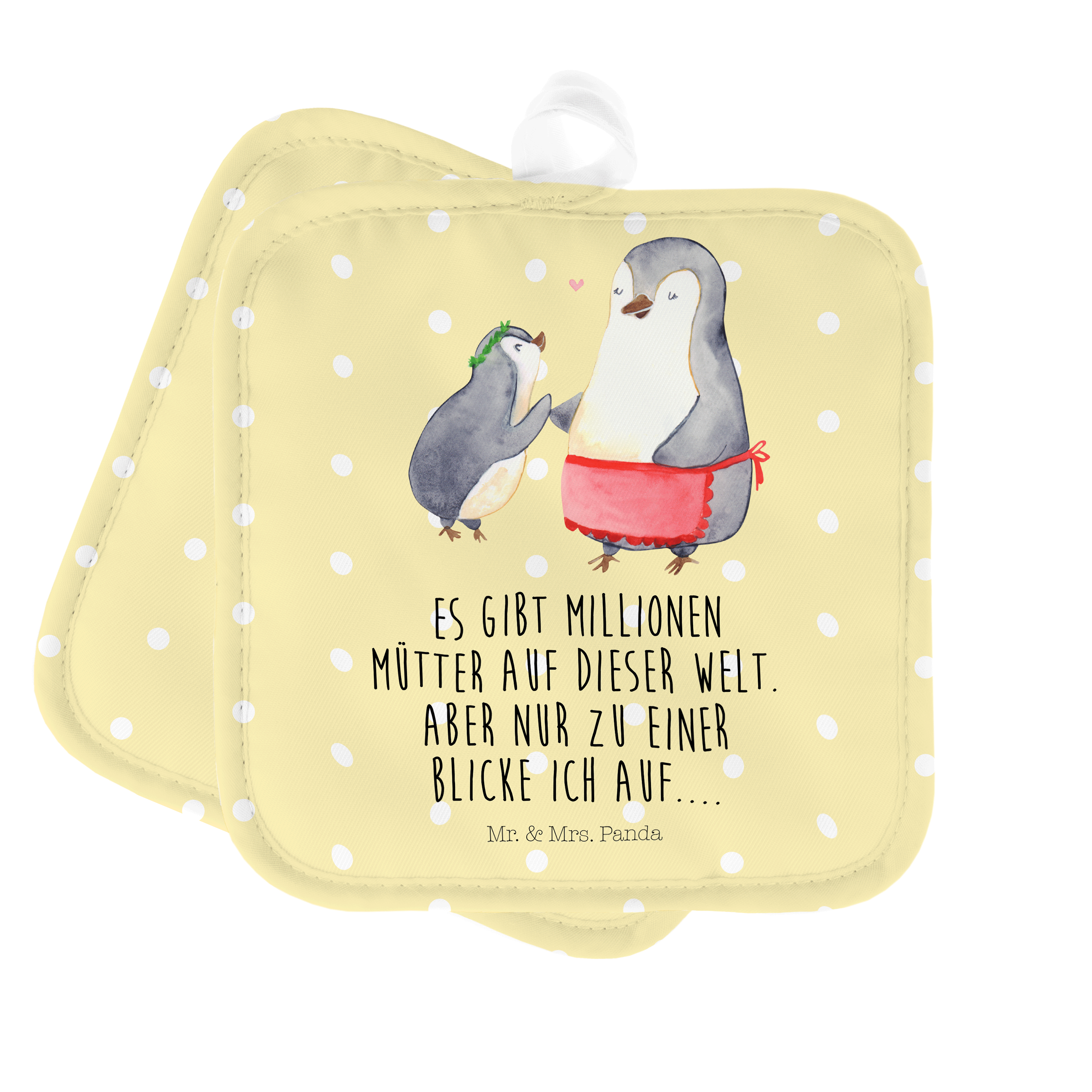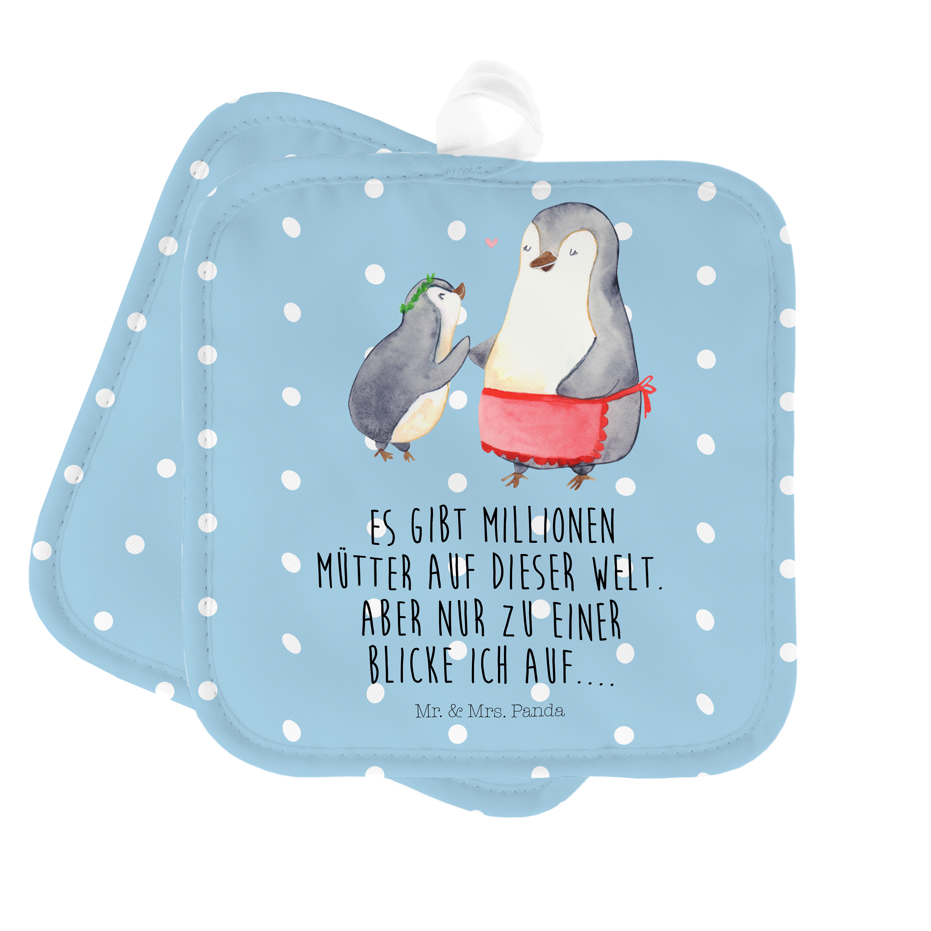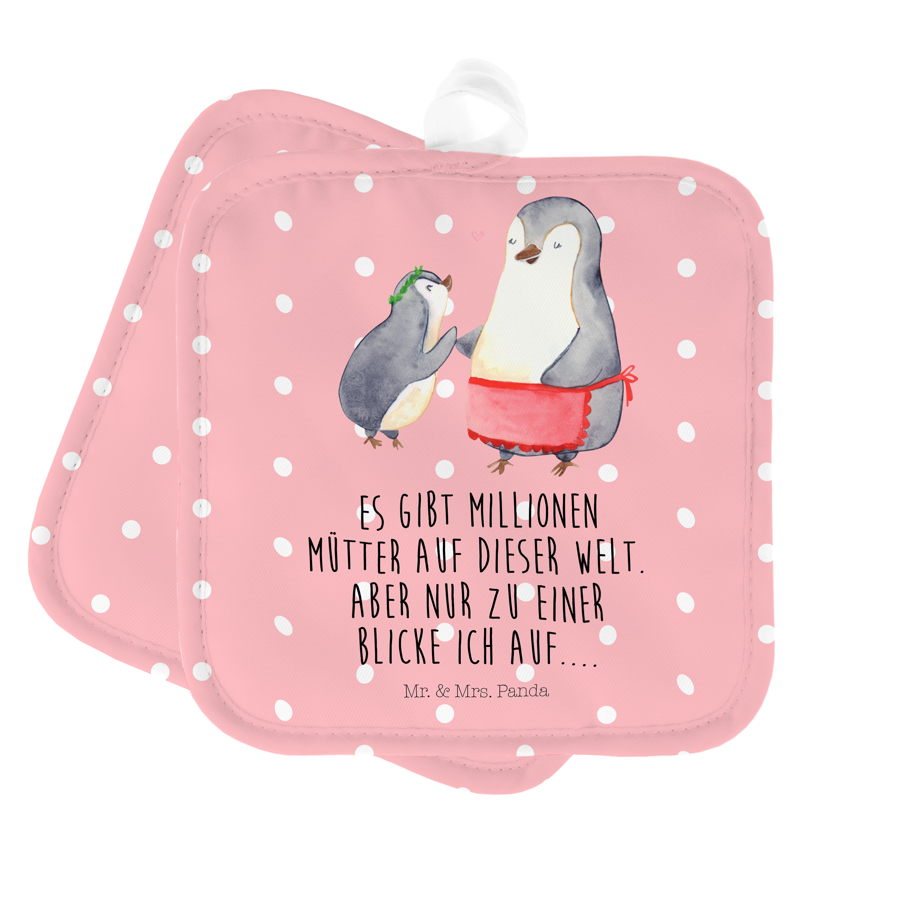 2er Set Topflappen Pinguin mit Kind - mit Spruch - Weiß