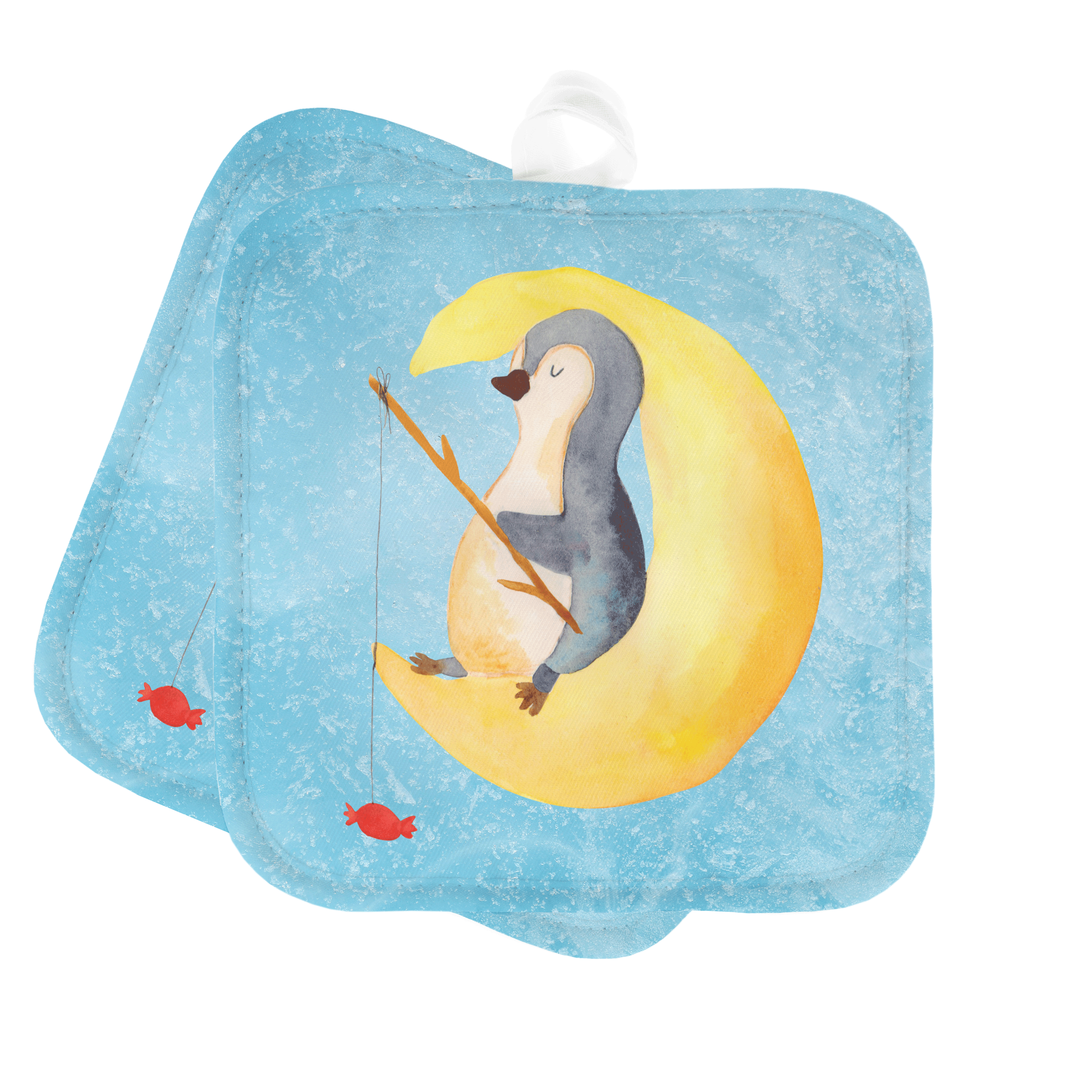 2er Set Topflappen Pinguin Mond - mit Spruch - Eisblau