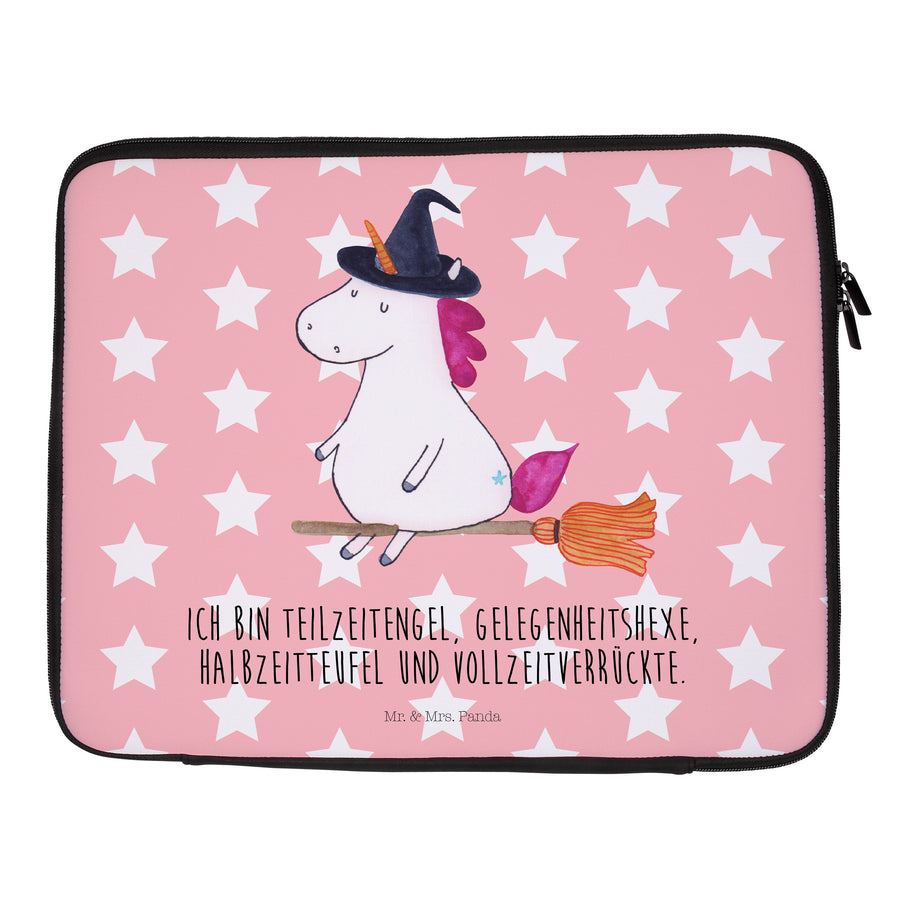 33 x 42 Notebook Tasche Einhorn Hexe - mit Spruch - Rot Pastell