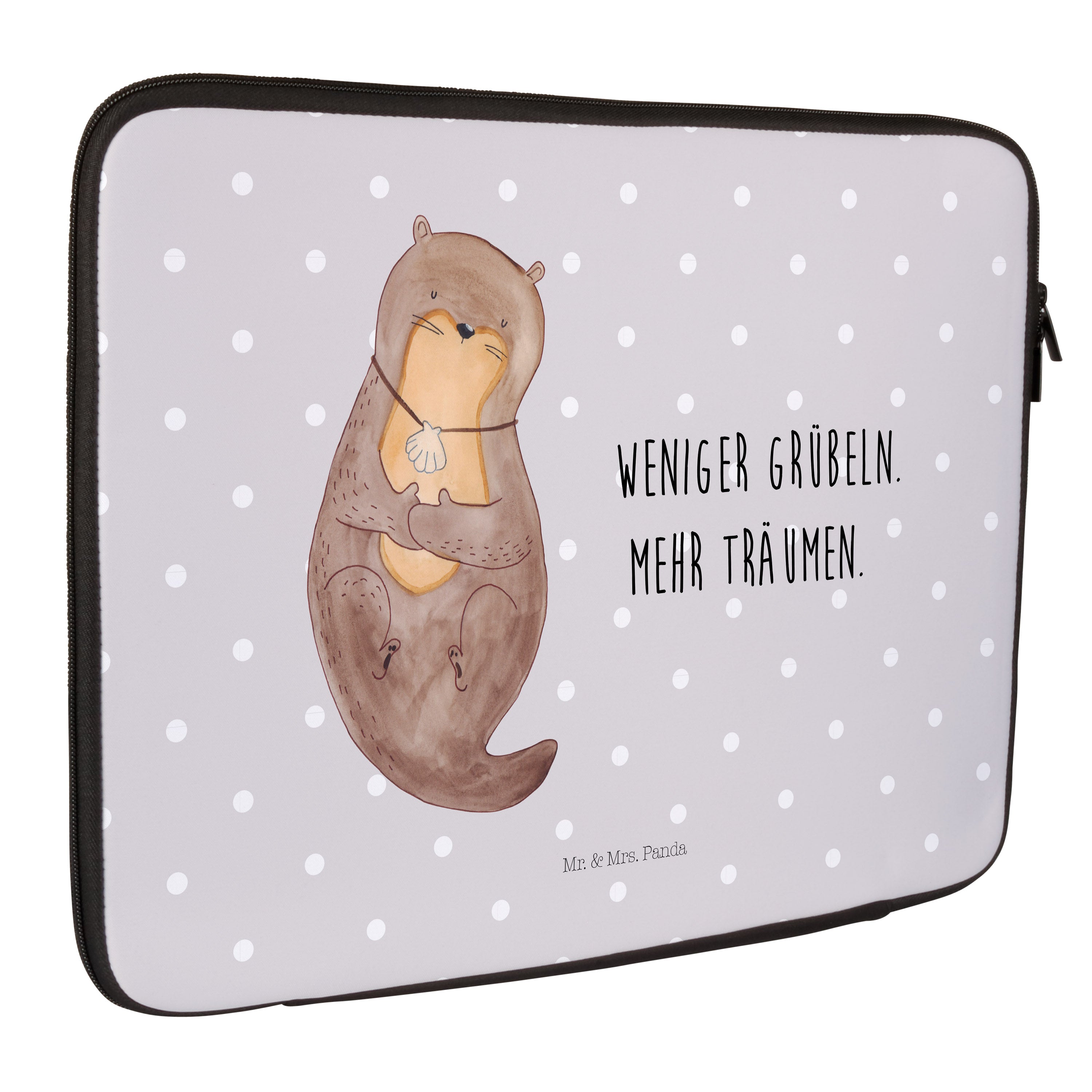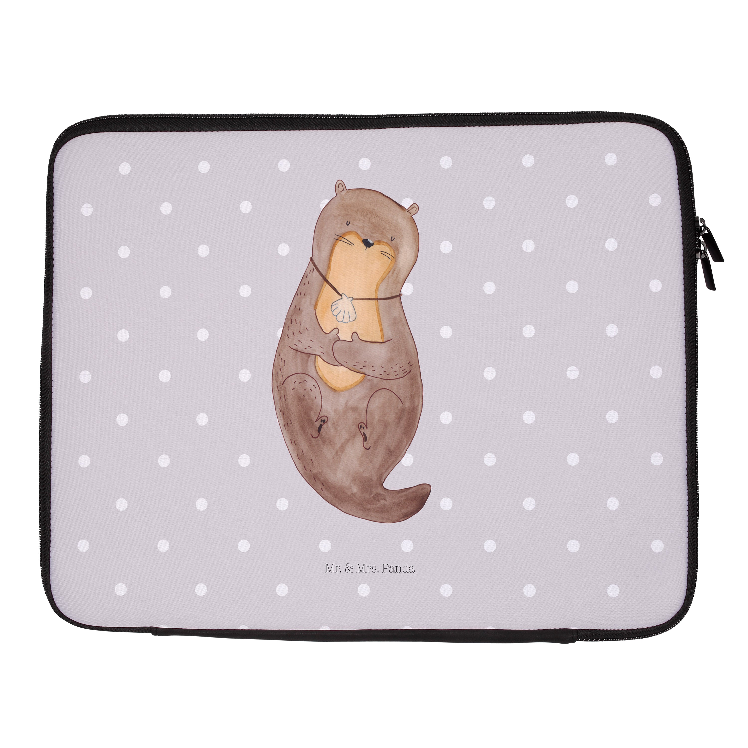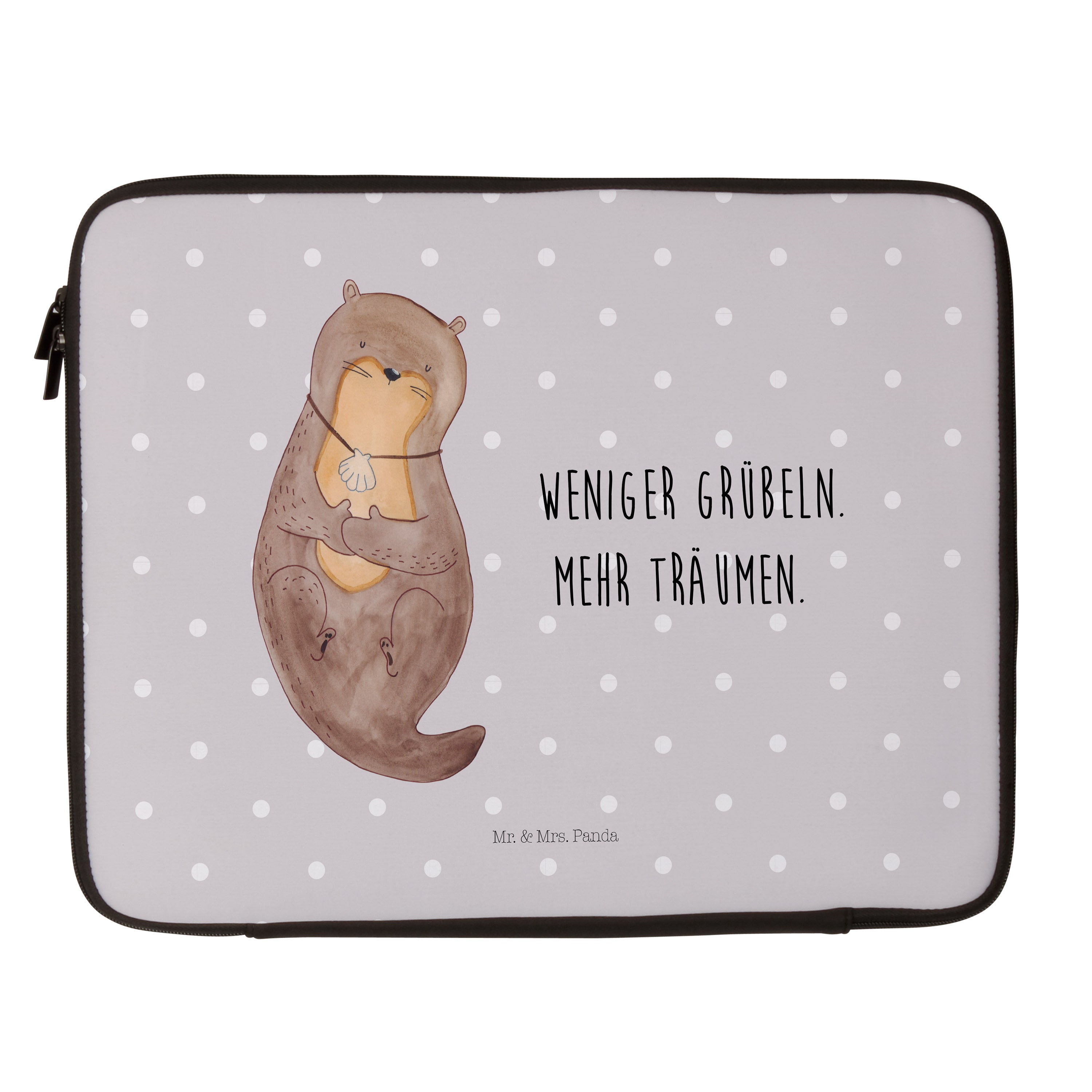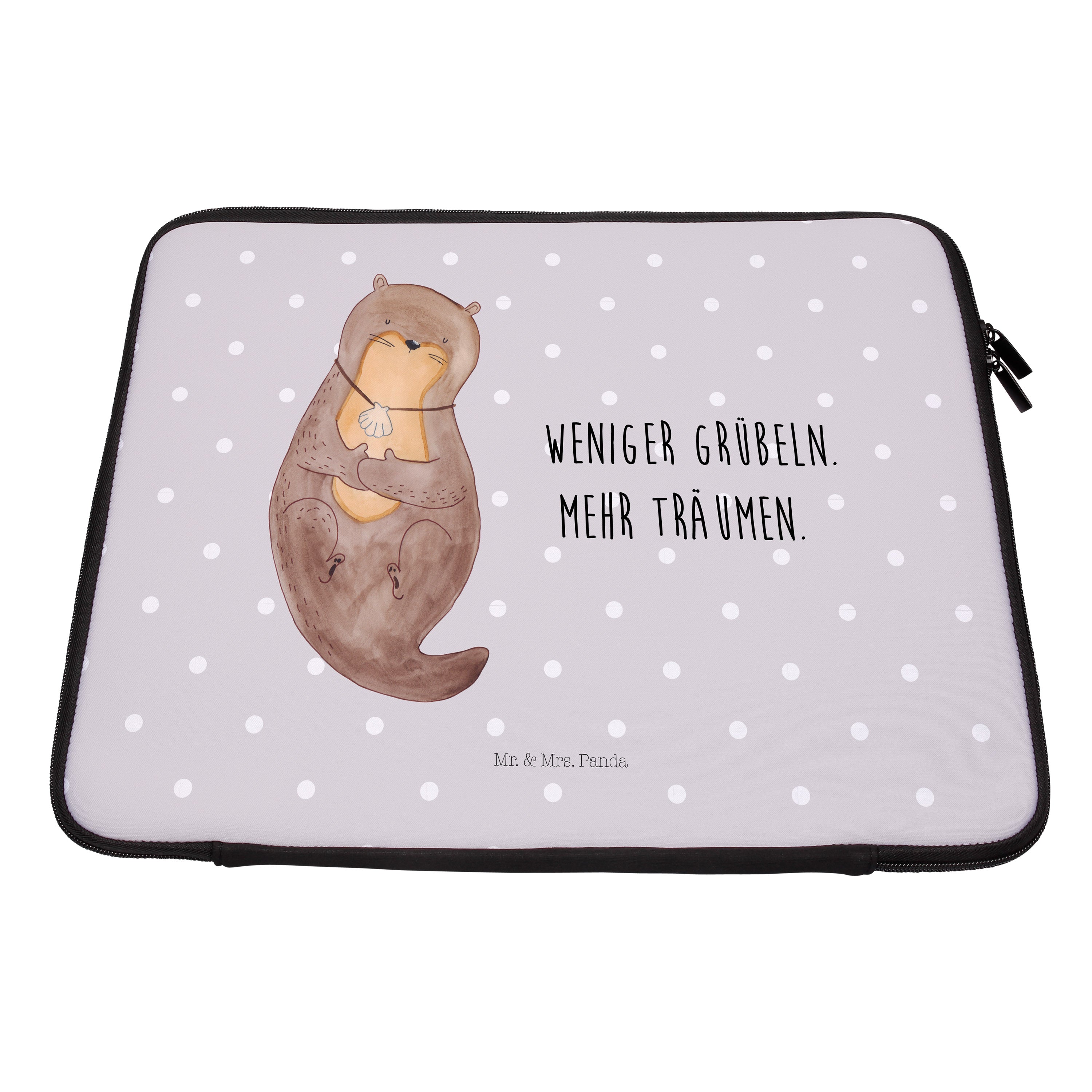 33 x 42 Notebook Tasche Otter mit Muschelmedaillon - mit Spruch - Grau Pastell