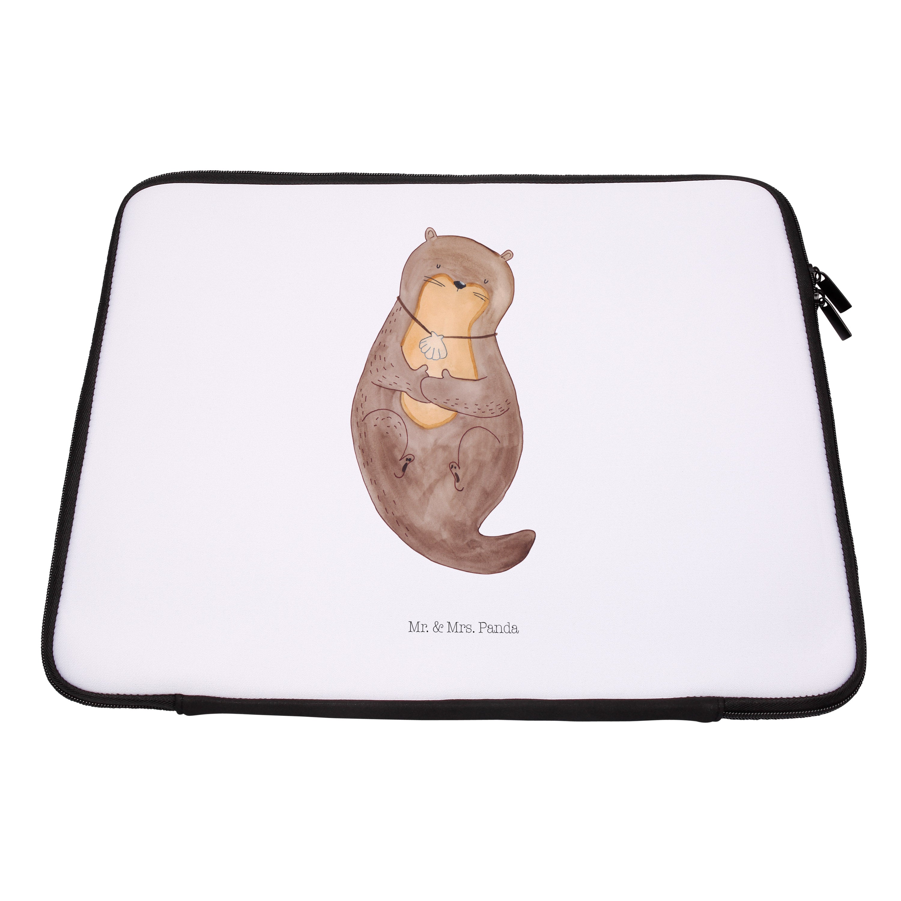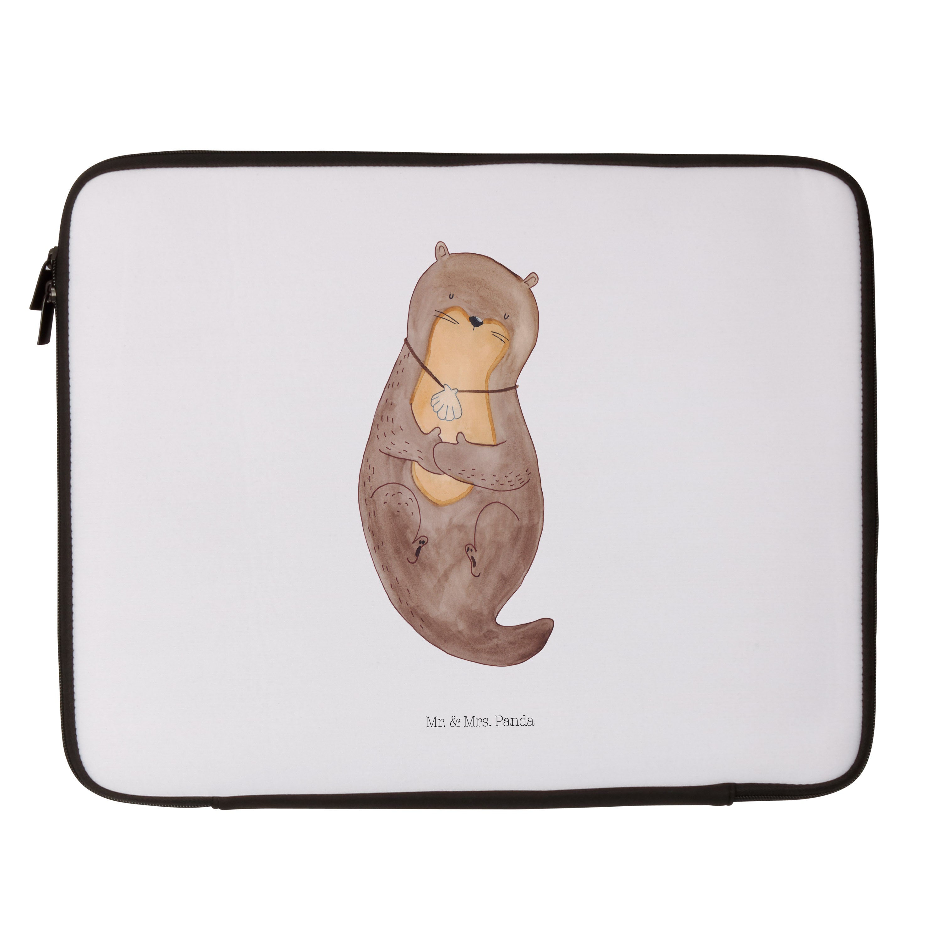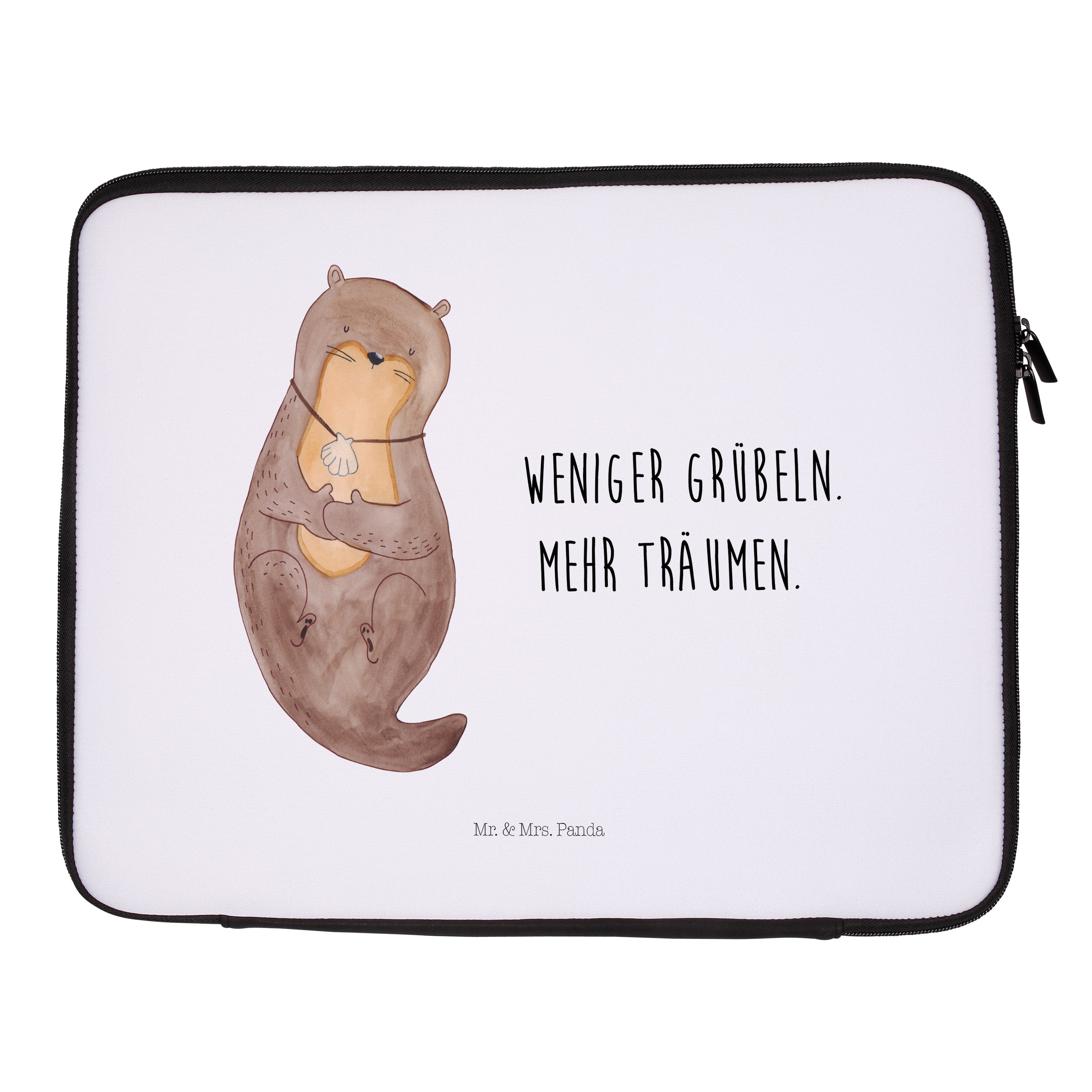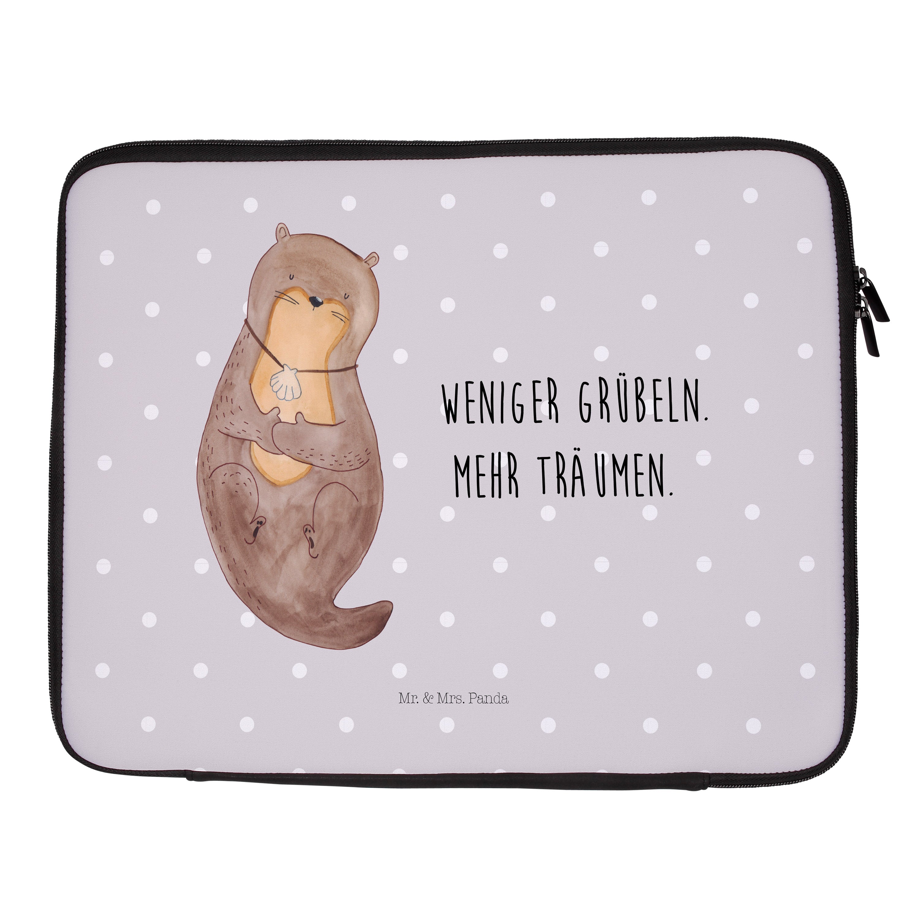 33 x 42 Notebook Tasche Otter mit Muschelmedaillon - mit Spruch - Grau Pastell