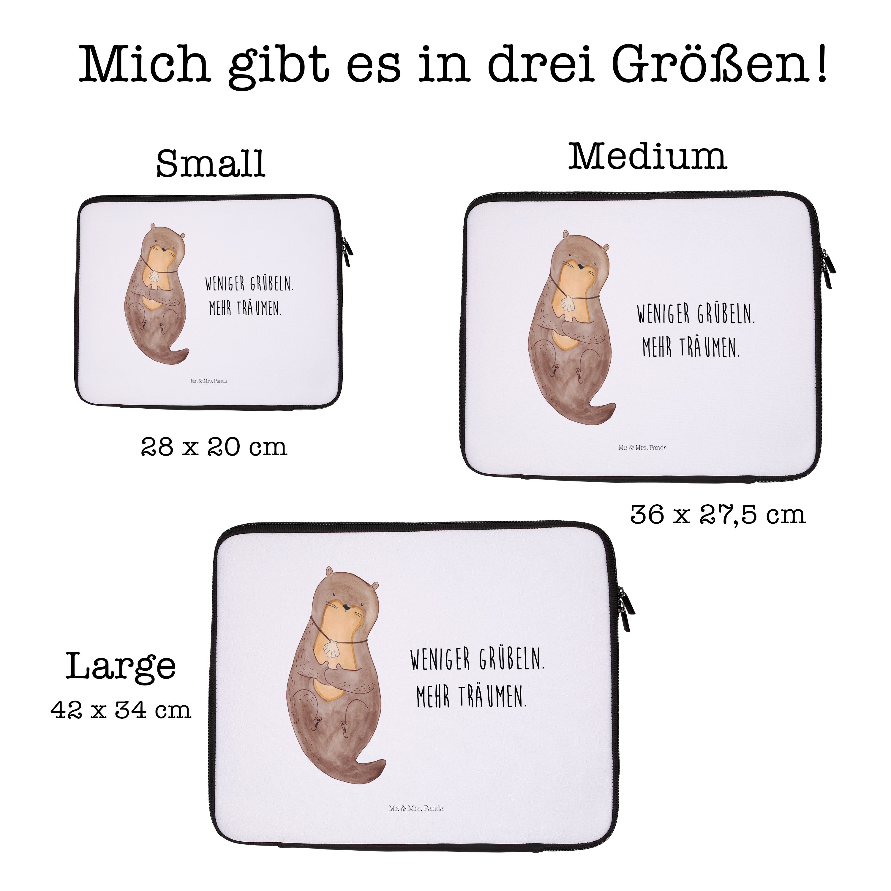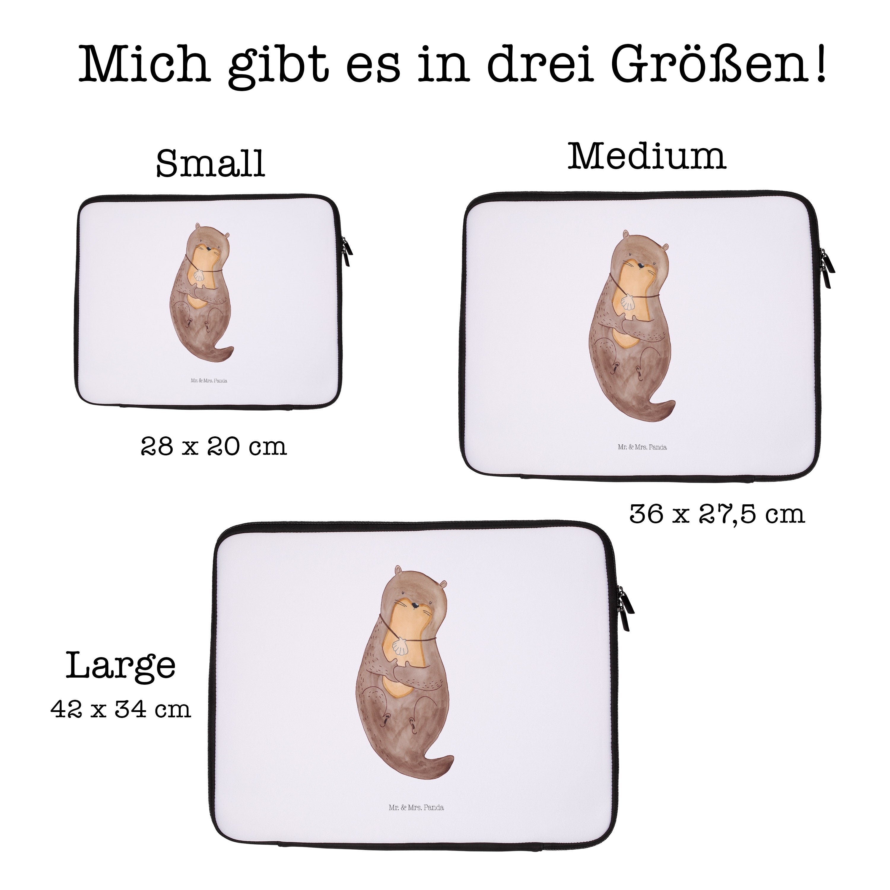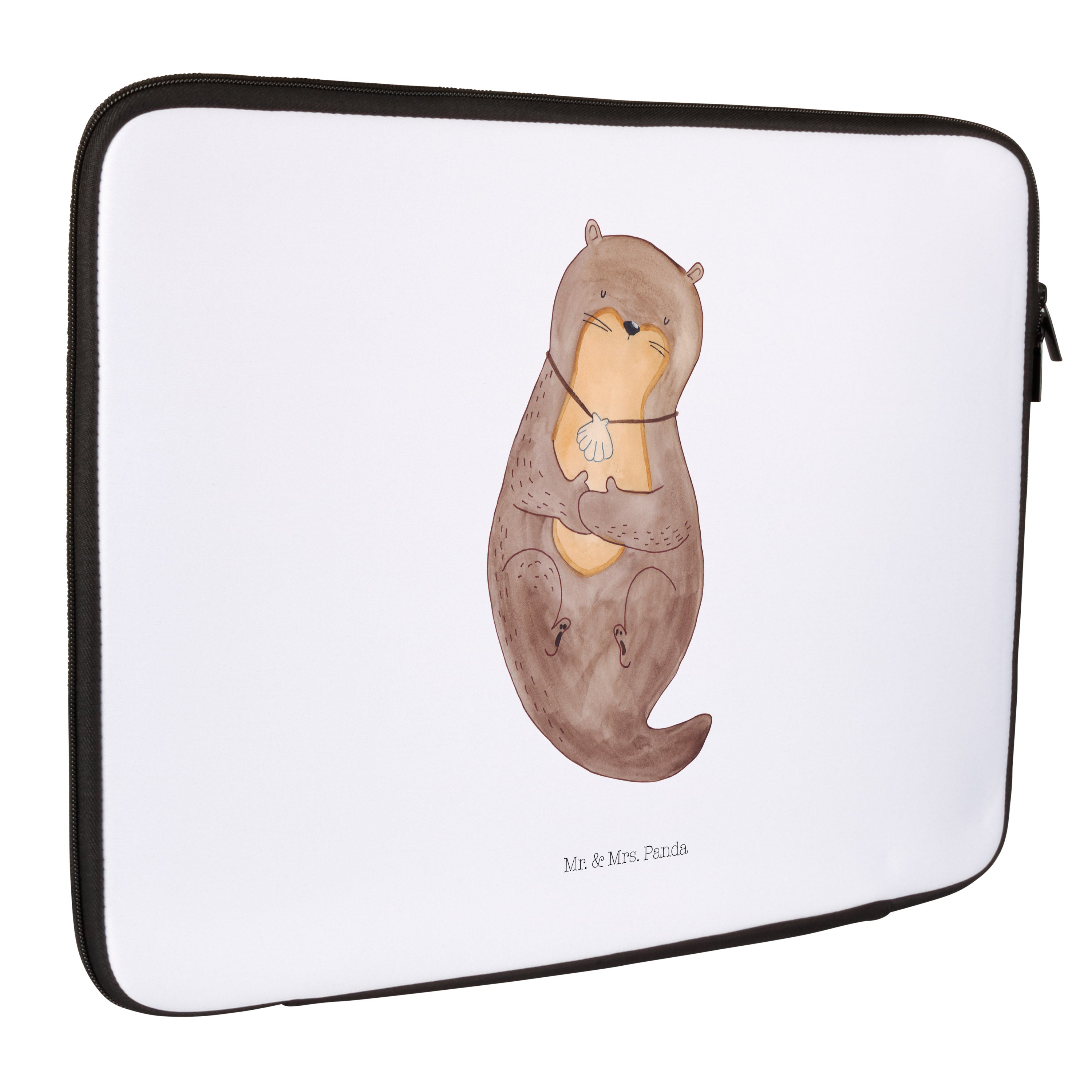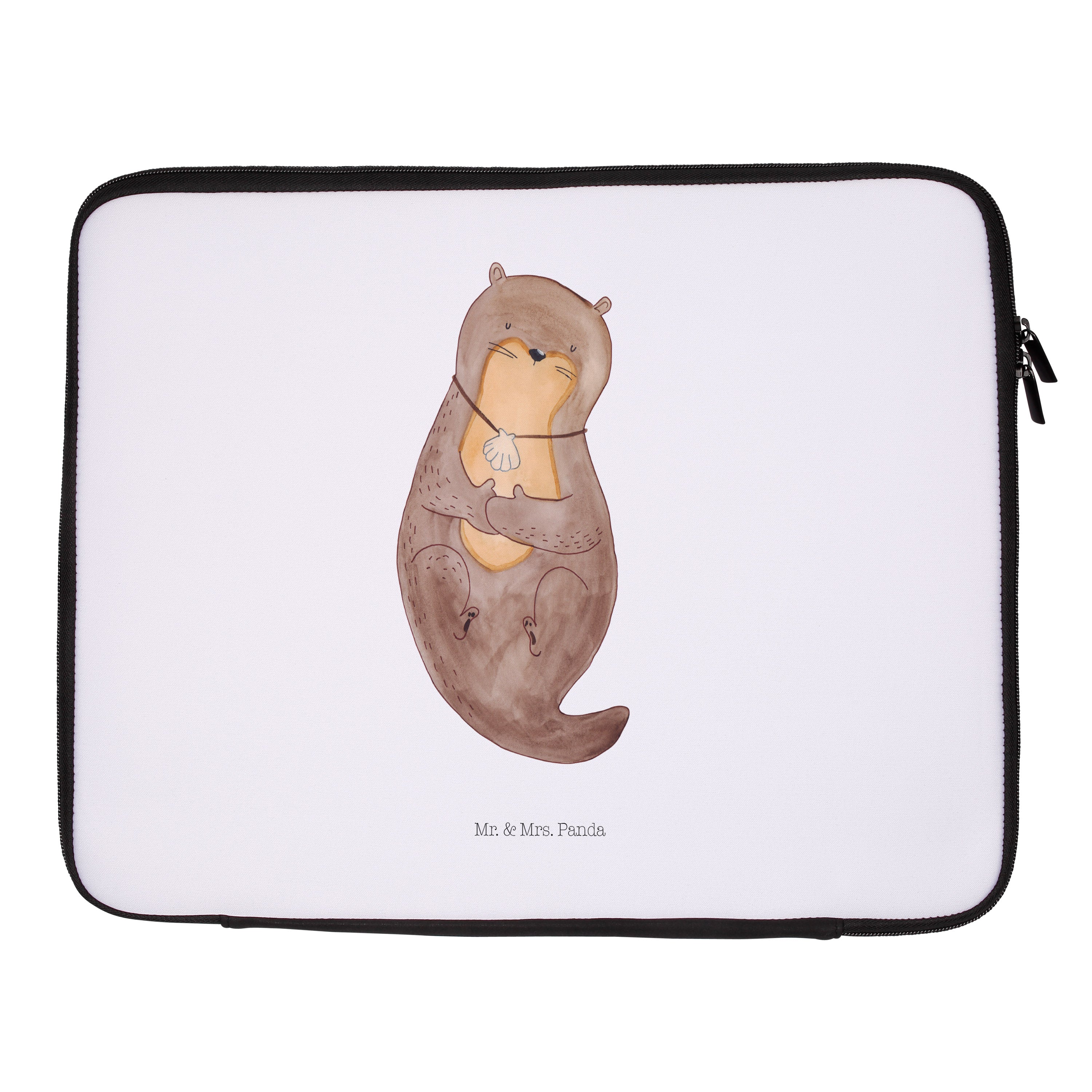 33 x 42 Notebook Tasche Otter mit Muschelmedaillon - mit Spruch - Grau Pastell
