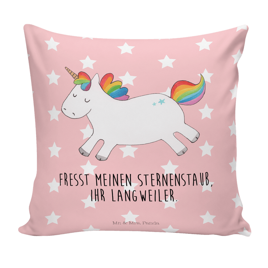 40x40 Kissen Einhorn Happy - mit Spruch - Rot Pastell