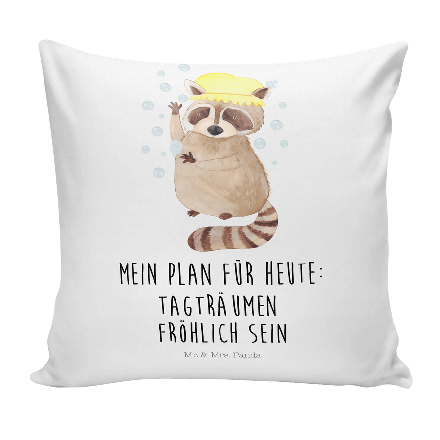 40x40 Kissen Waschbär Kissenhülle, Kopfkissen, Sofakissen, Dekokissen, Motivkissen, Tiermotive, Gute Laune, lustige Sprüche, Tiere, Waschbär, Tagträumen, Plan, Fröhlich, waschen, Seifenblasen