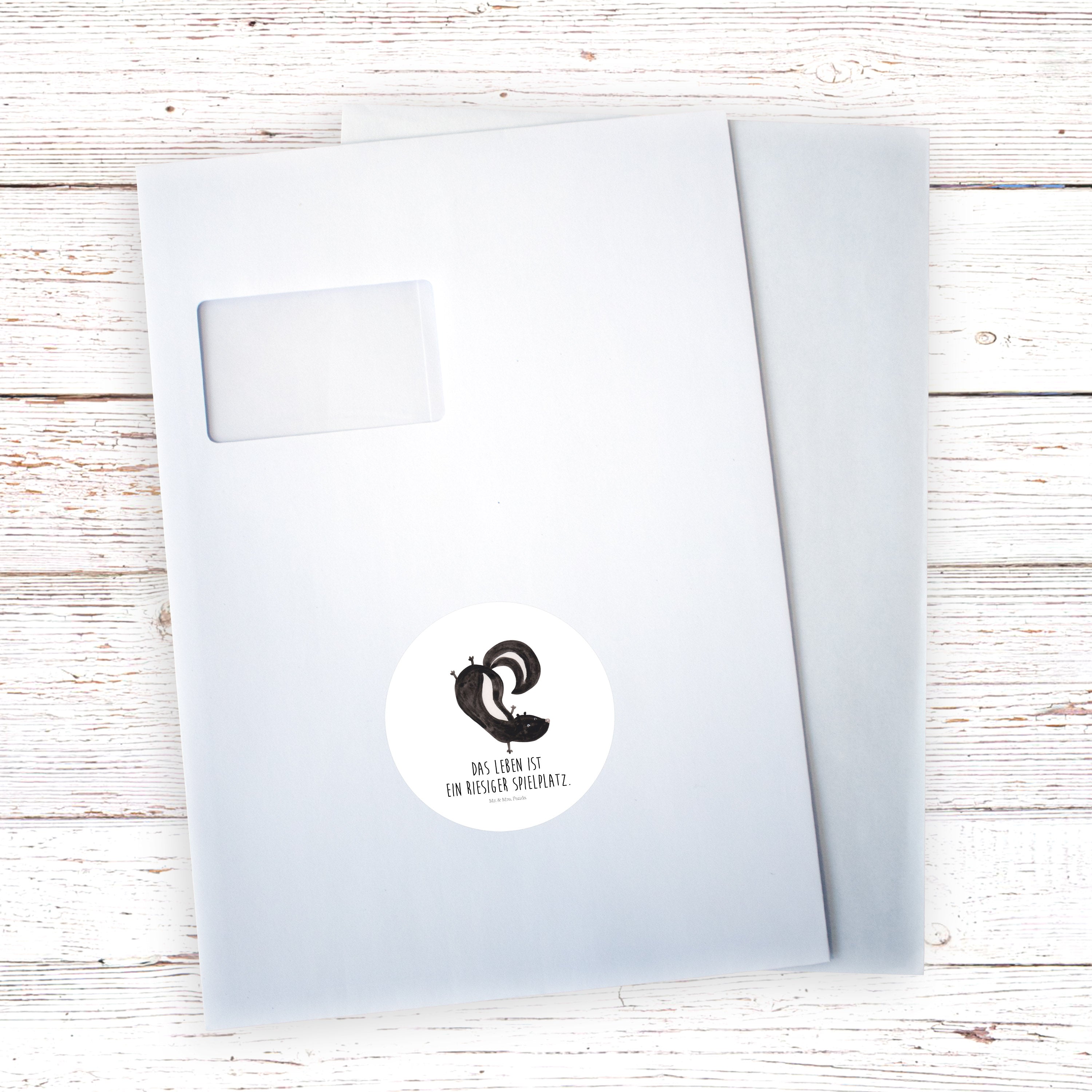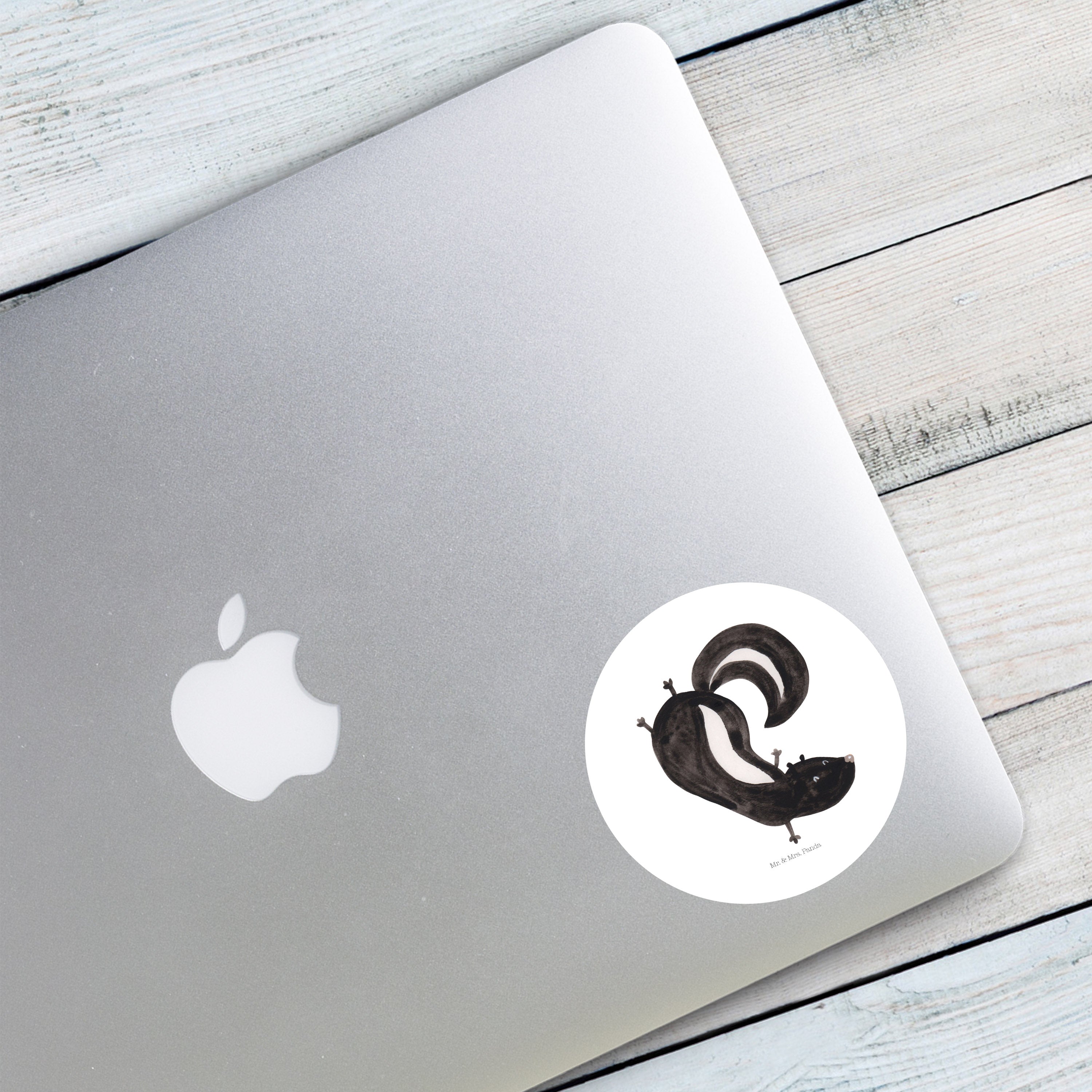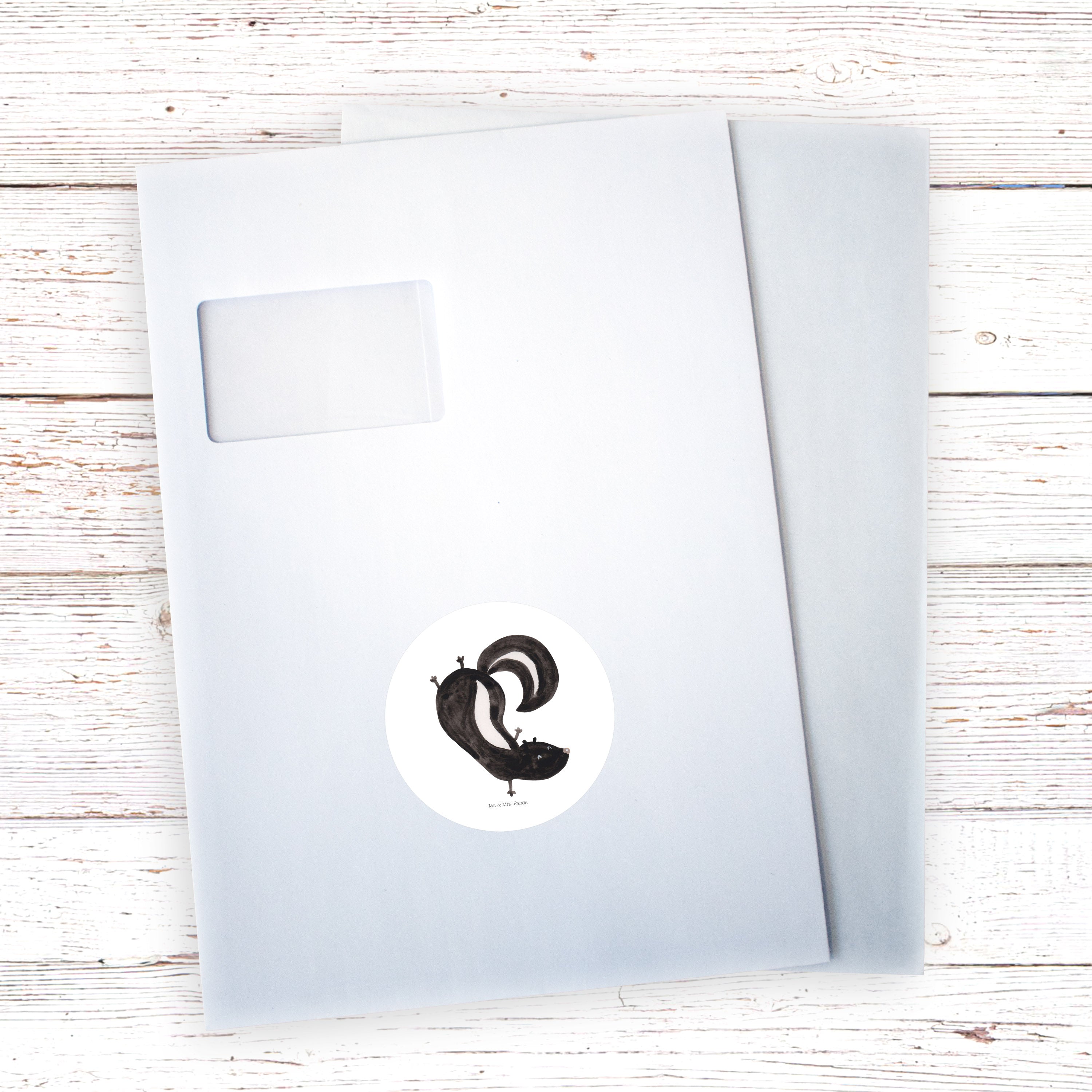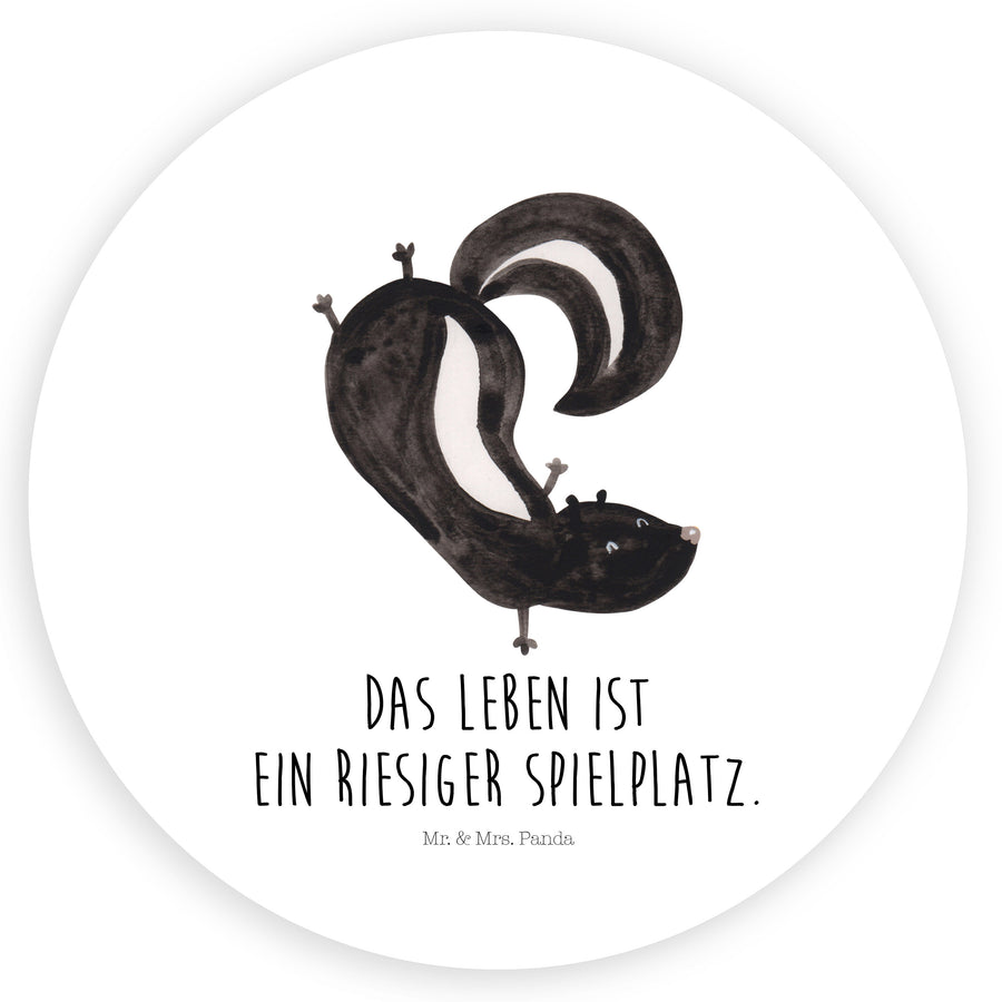 80mm Rund Aufkleber Stinktier Handstand - mit Spruch - Weiß
