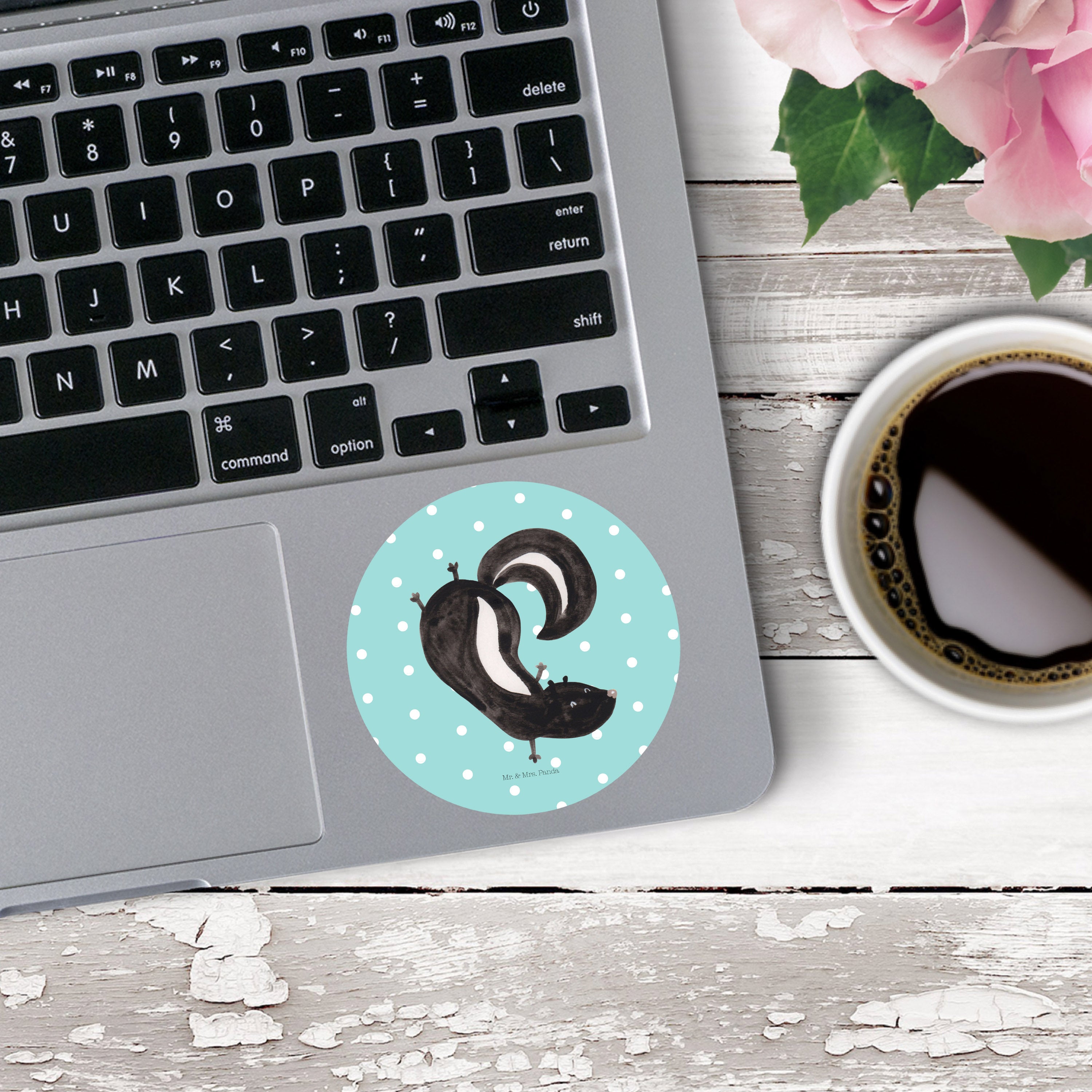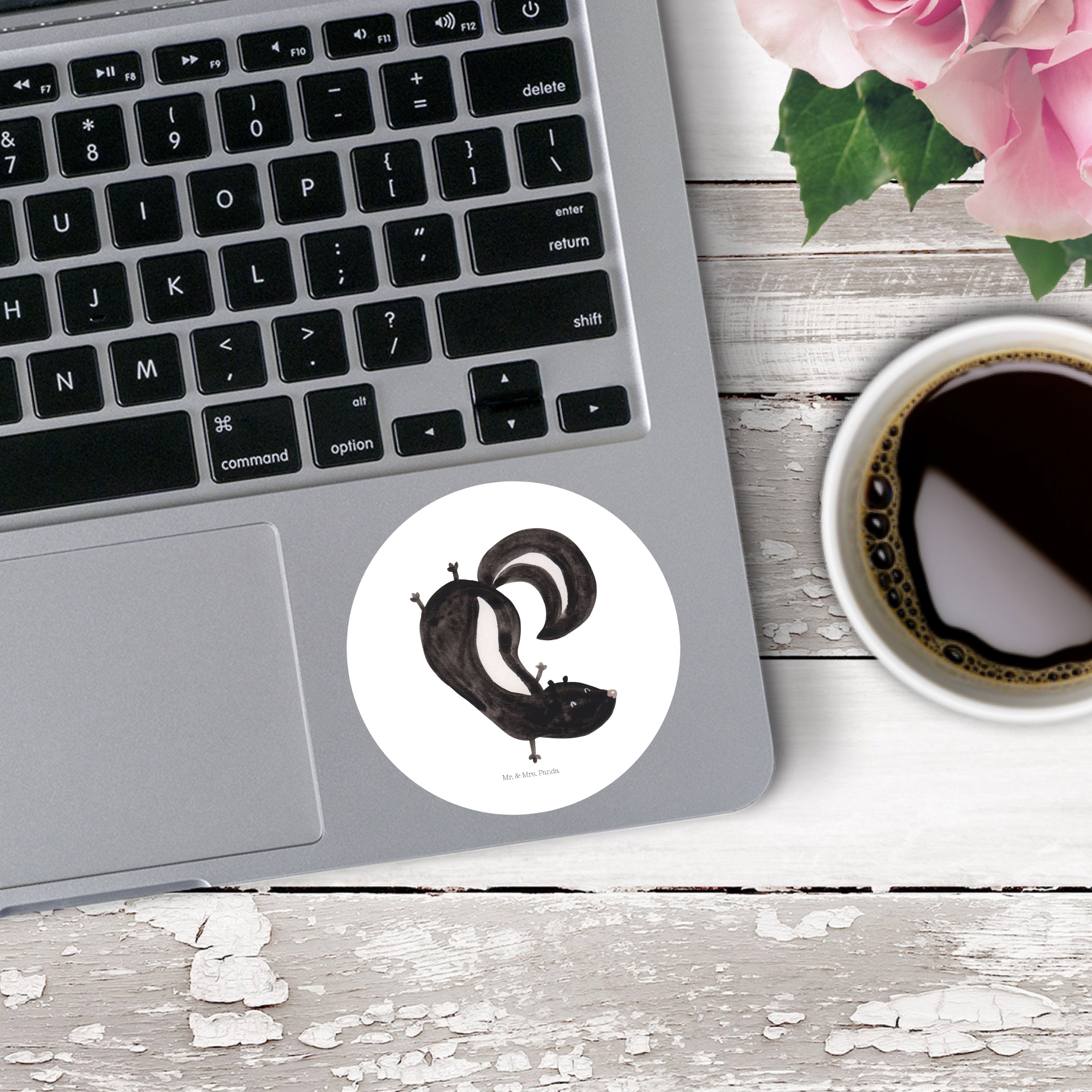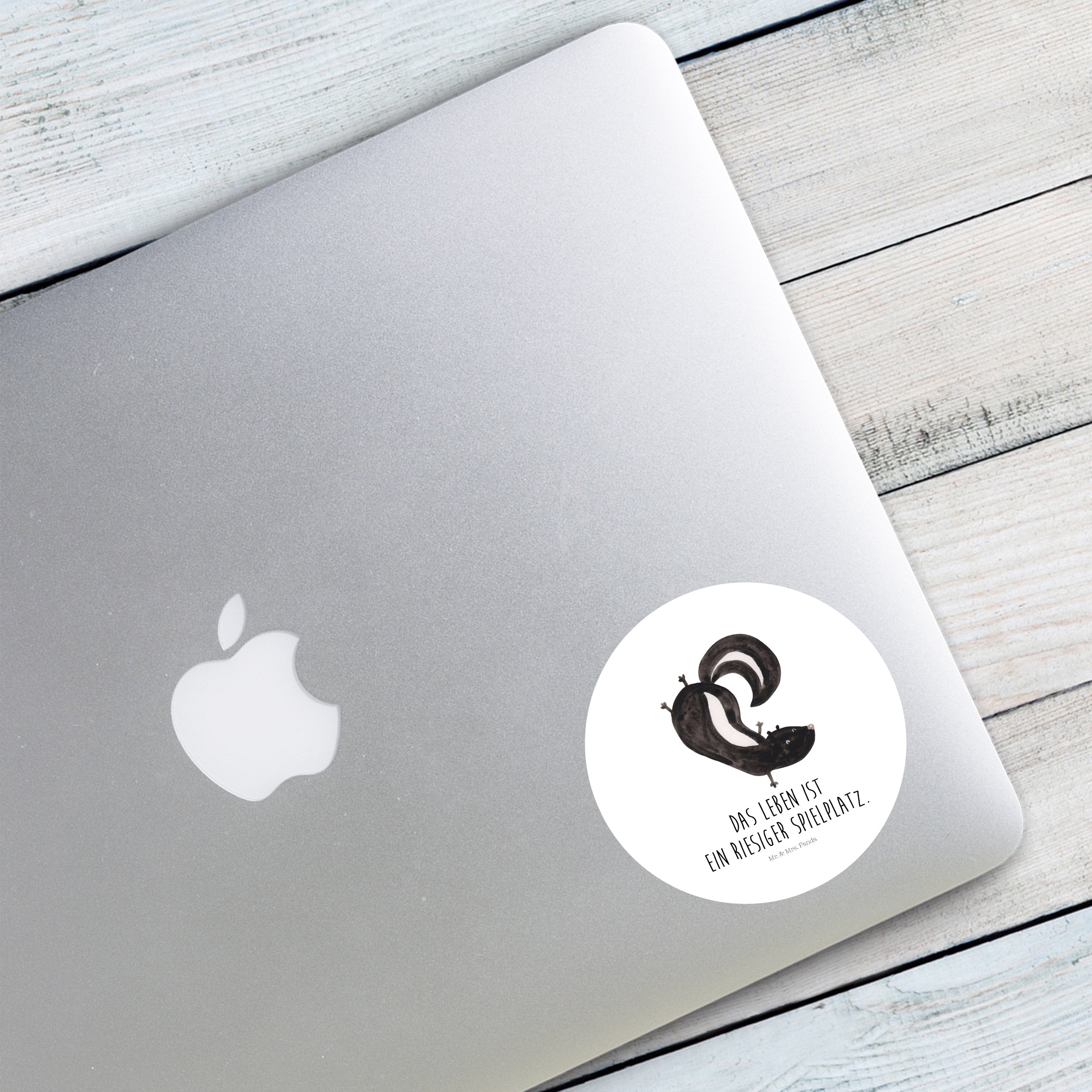 80mm Rund Aufkleber Stinktier Handstand - mit Spruch - Weiß