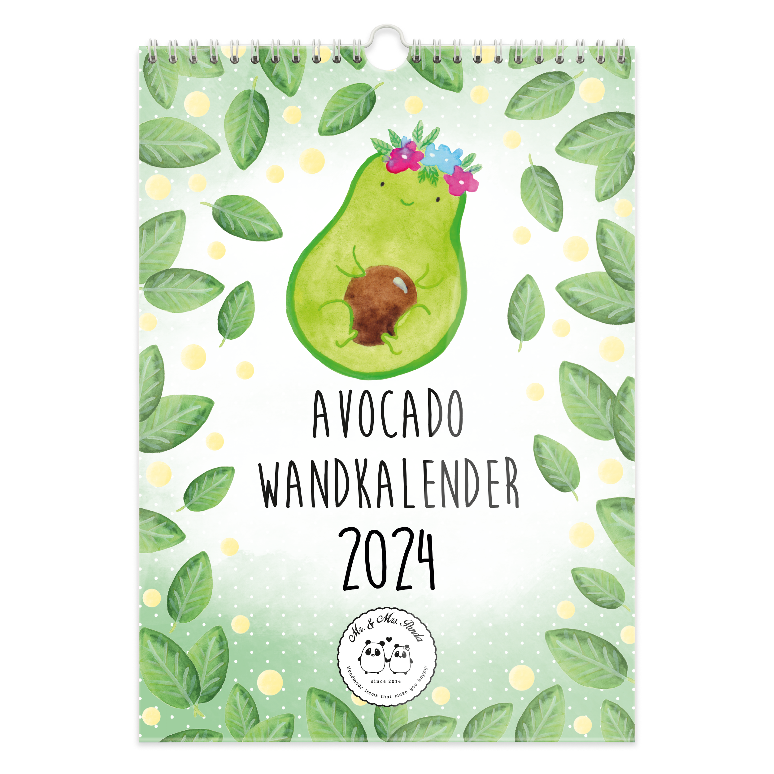 A4 Wandkalender 2024 Avocado Collection Kalender, Jahreskalender, Terminplaner, Kalender mit Feiertagen, Küchenkalender, Avocado, Veggie, Vegan, Gesund